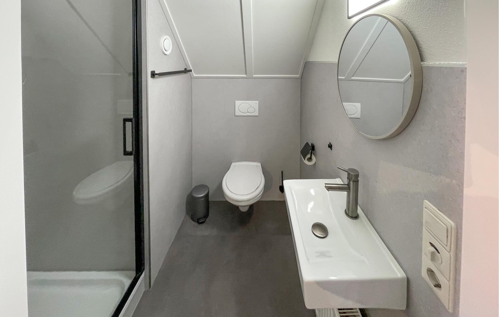 - WC mit warmem und kaltem Wasser, Dusche