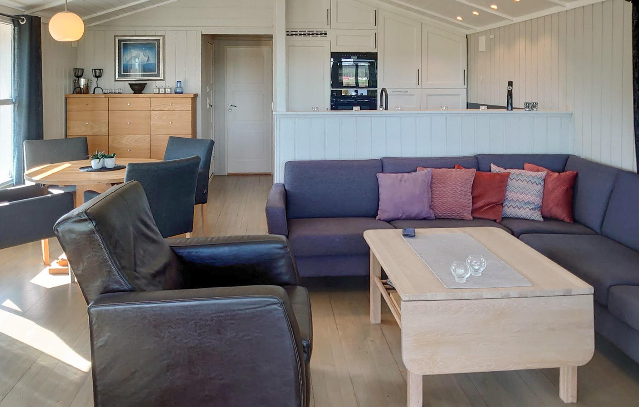 Helle und stilvoll eingerichtete Räumlichkeiten begrüßen Sie in diesem komfortablen Urlaubsdomizil am idyllischen Badesee. Hier erwarten Sie entspannte Tage im Einklang mit der Natur, an denen Sie neue Energie tanken können. Genießen Sie gesellige Kochabende, gemeinsame Mahlzeiten und gemütliche Spieleabende im behaglichen Wohnzimmer.