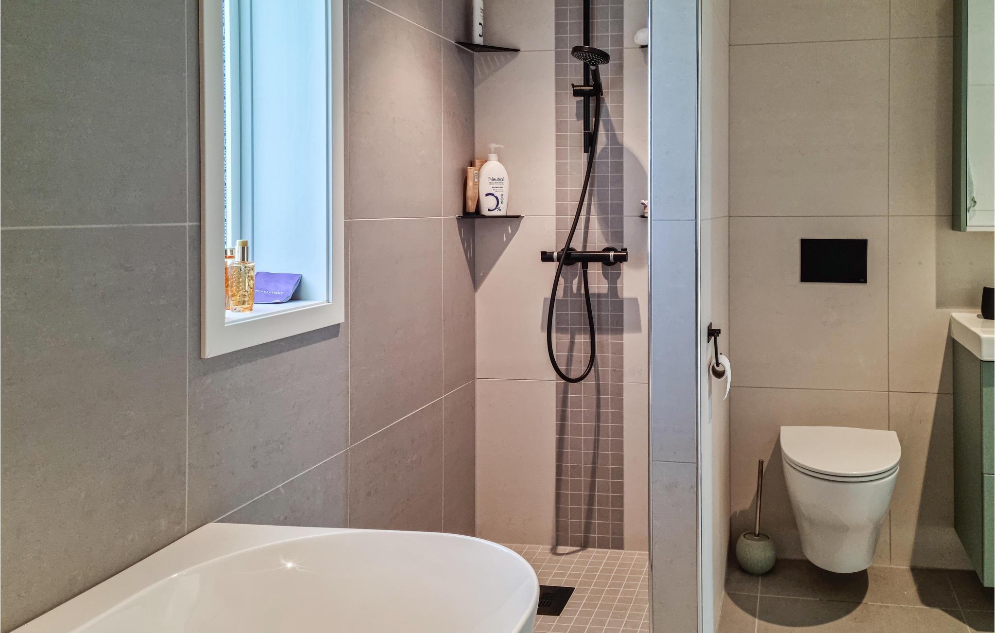 Badezimmer (nr. 1) - WC. Warmes und kaltes Wasser. Dusche und Badewanne