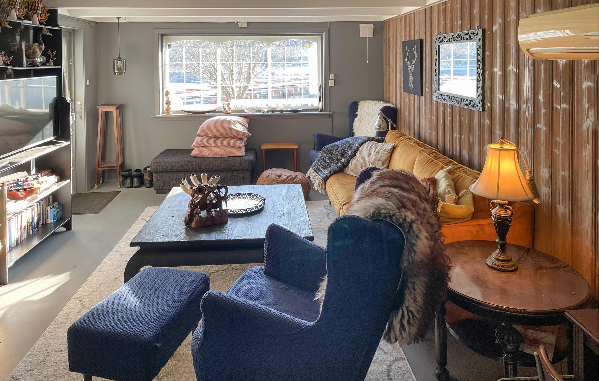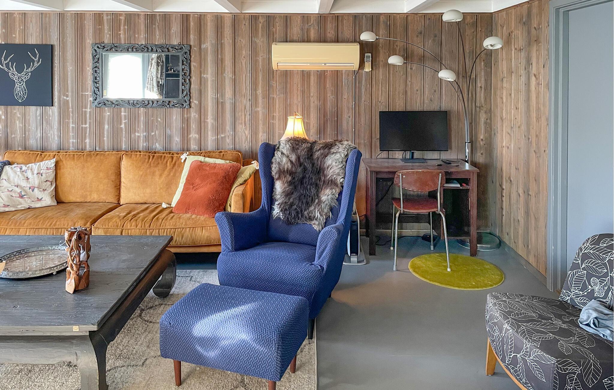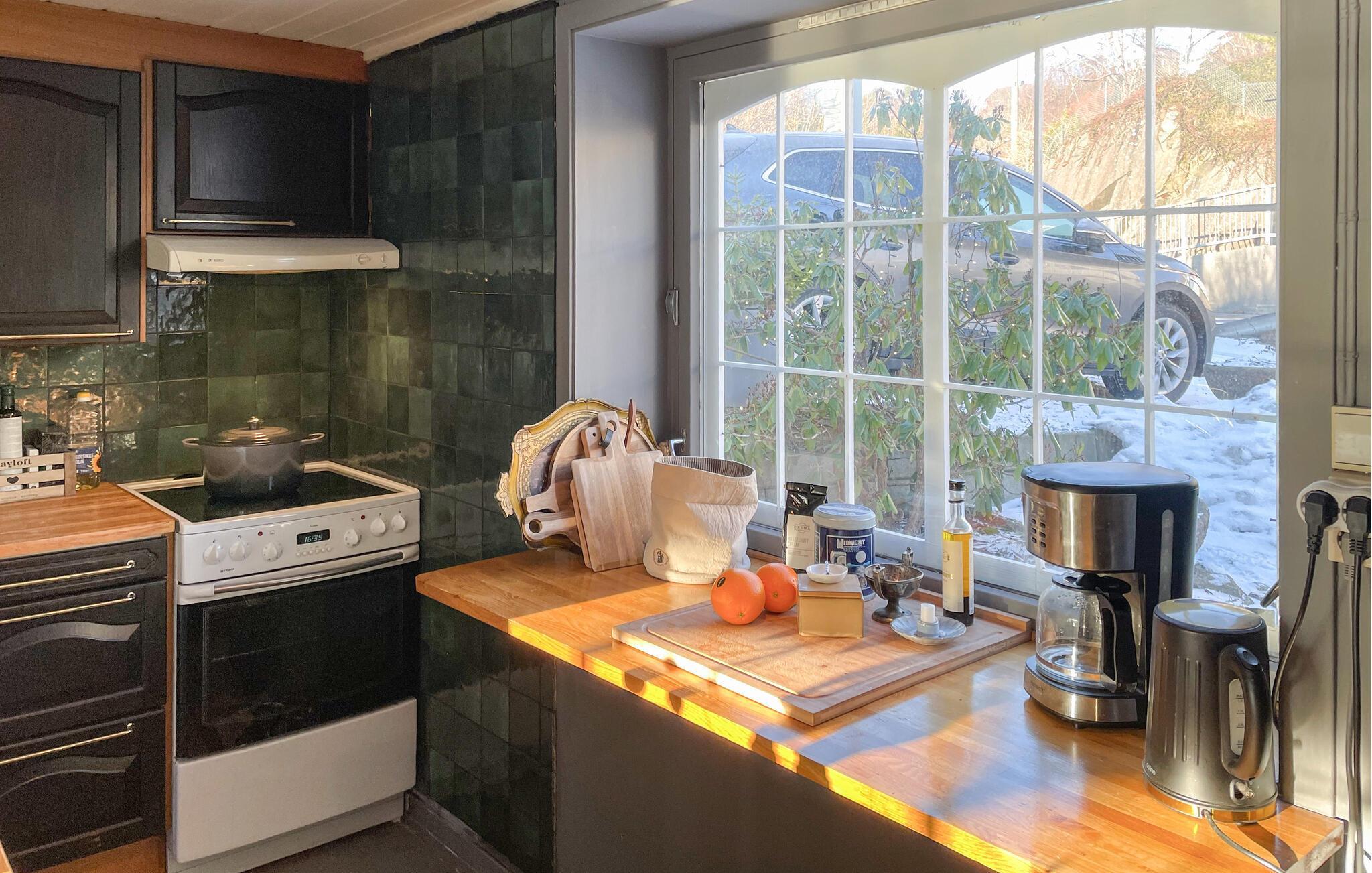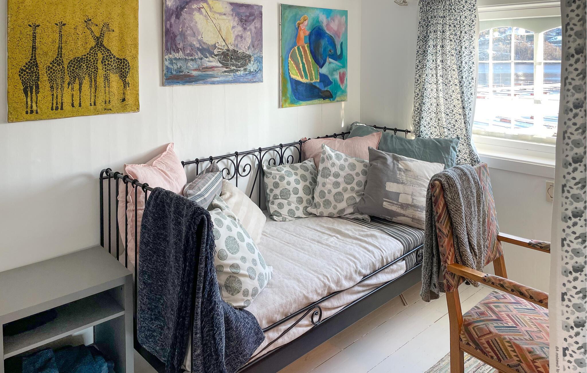Erleben Sie einen entspannten Aufenthalt in Ihrem idyllischen Ferienhaus in Arendal. Mit direkter Lage am Wasser und einem liebevoll gestalteten Garten bietet dieses Haus die ideale Kulisse für einen erholsamen Norwegen-Urlaub. Machen Sie es sich im gemütlichen und liebevoll gestalteten Innenbereich bequem. Die geschmackvolle Einrichtung mit warmen Farben, Holzelementen und bequemen Sitzmöbeln schafft eine einladende Atmosphäre. Entspannen Sie im stilvollen Wohnbereich mit Blick auf das Wasser und genießen Sie die wohlige Wärme des Kaminofens. Lassen Sie den Tag auf dem bequemen Sofa ausklingen und nutzen Sie den separaten Bereich mit Fernseher für einen gemütlichen Filmabend.
