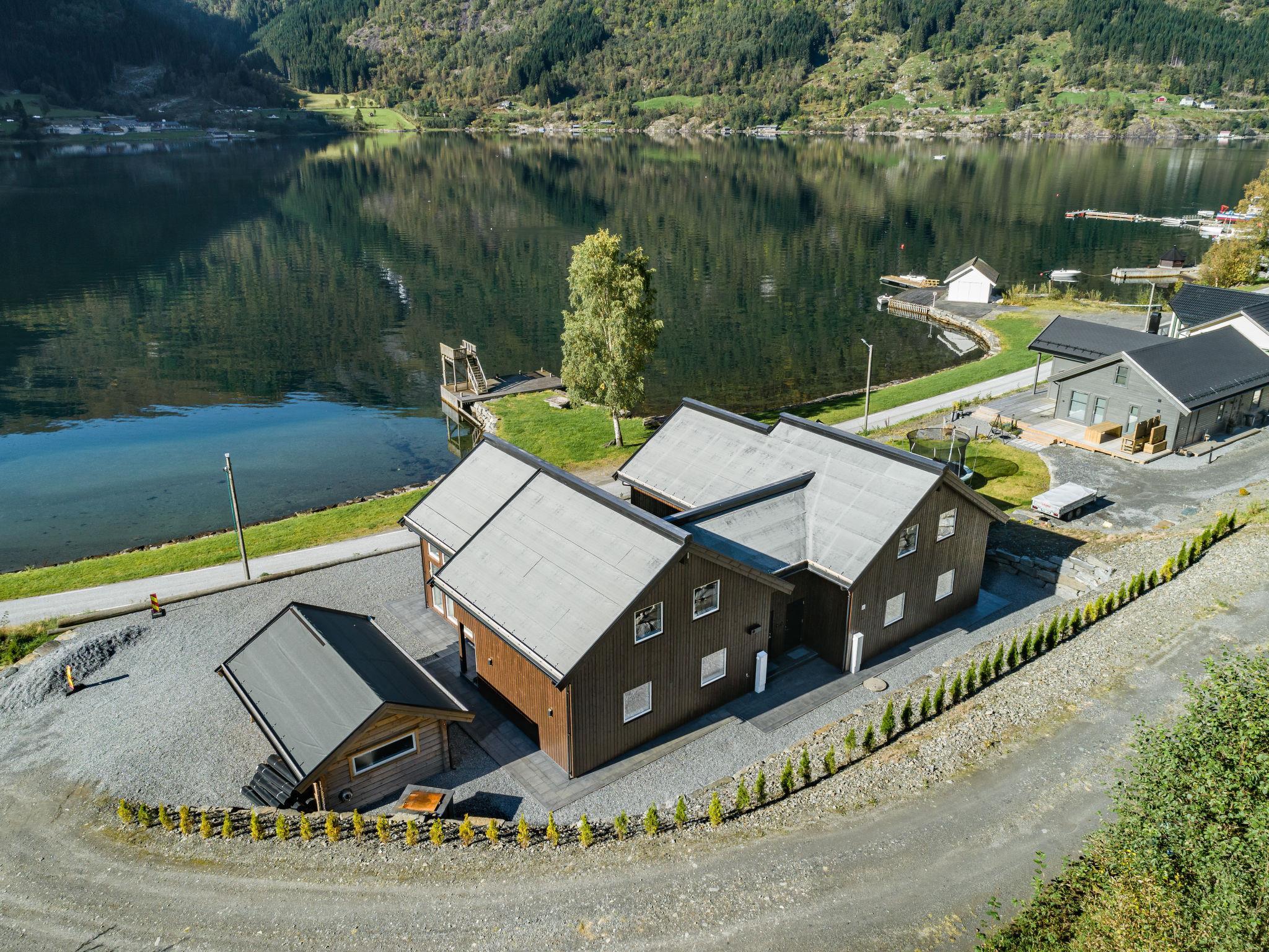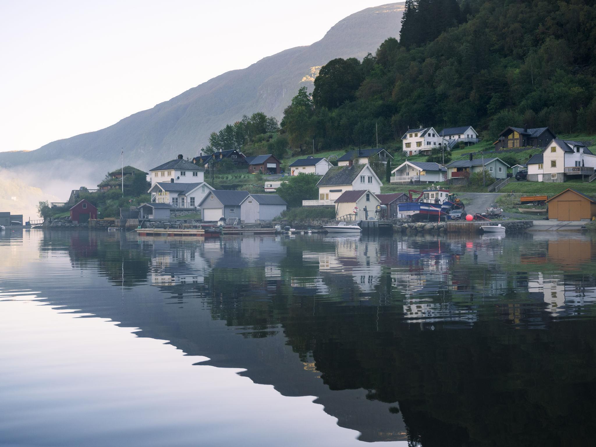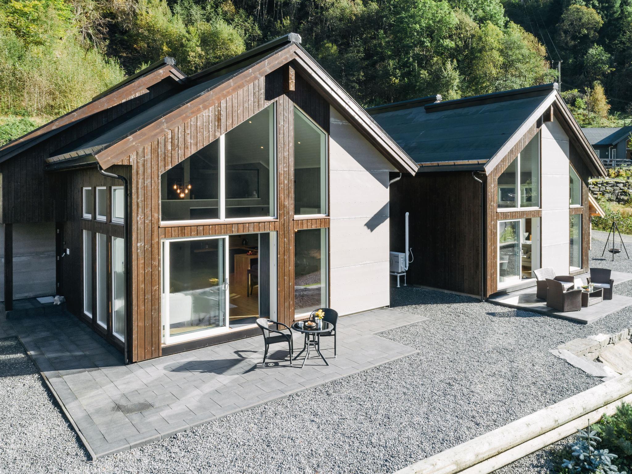 Very modern certified fishing house "Mathias", 4 m a.s.l., 2 storeys, semi-detached, built in 2022. 20 km from the centre of Vik, 190 km from the centre of Bergen, 30 m from the sea, 30 m from the fijord, road to cross. For shared use: property. Barbecue house, bathing jetty fish-processing table. Private: terrace (8 m2), garden furniture. Motor access to the house. Parking (for 3 cars). Shop 3 km, supermarket 22 km, bus stop "Vikøyri" 21 km, sandy beach 30 m. Fishing possibilities 30 m. Nearby attractions: Gudvangen 92 km, Flåm 112 km. Please note: Property ref. NO1881.614.1 is situated on the same property.