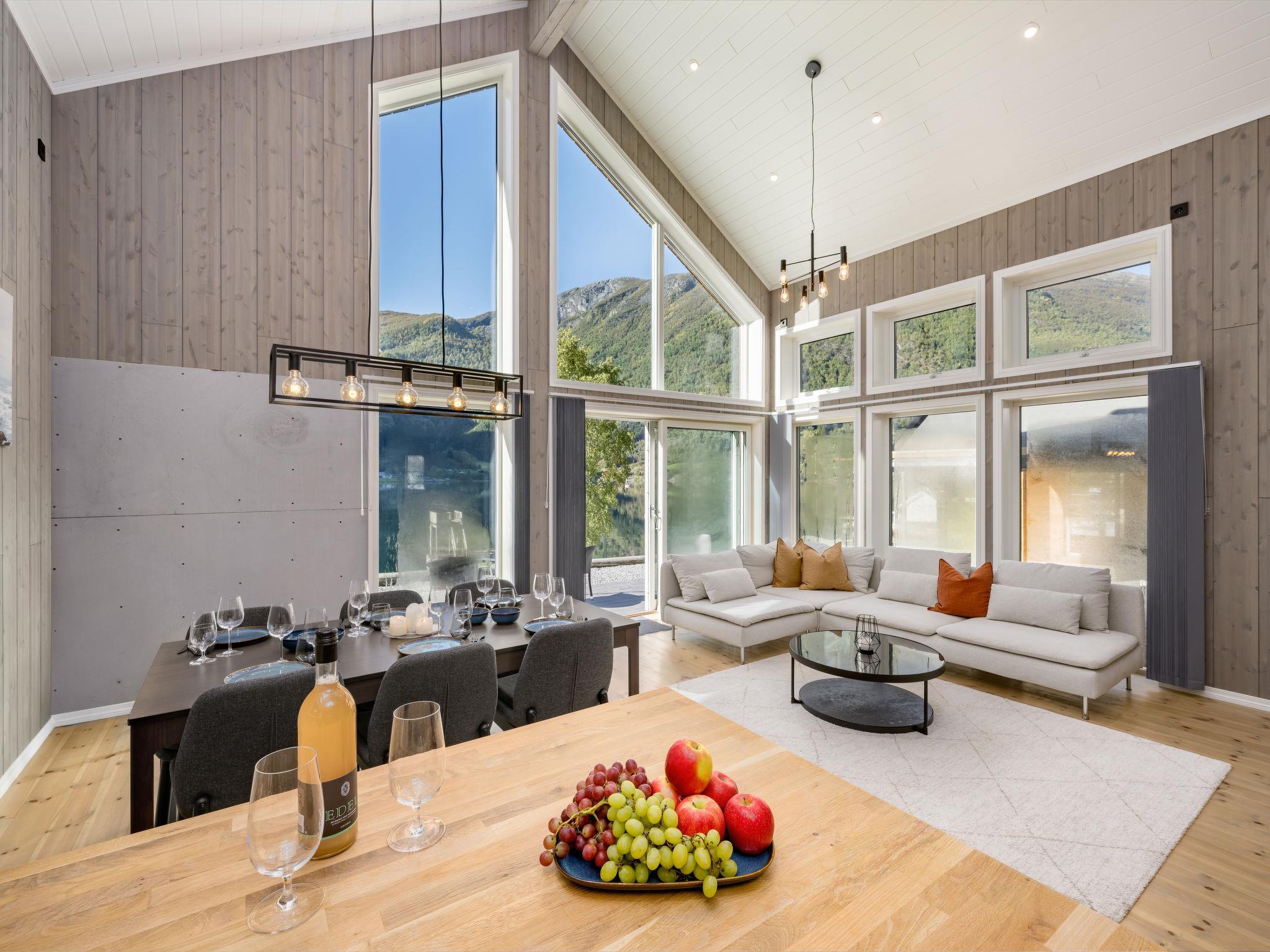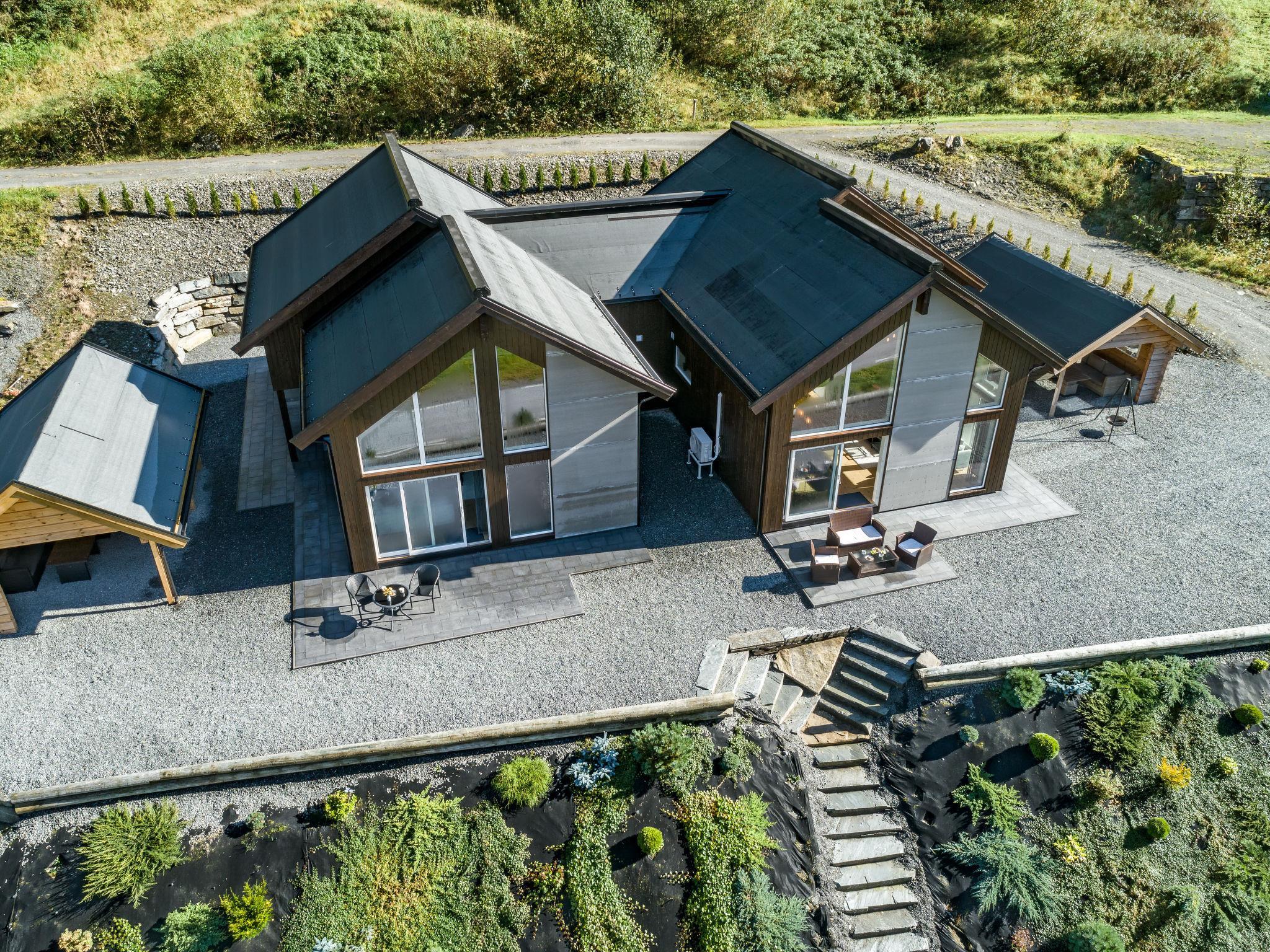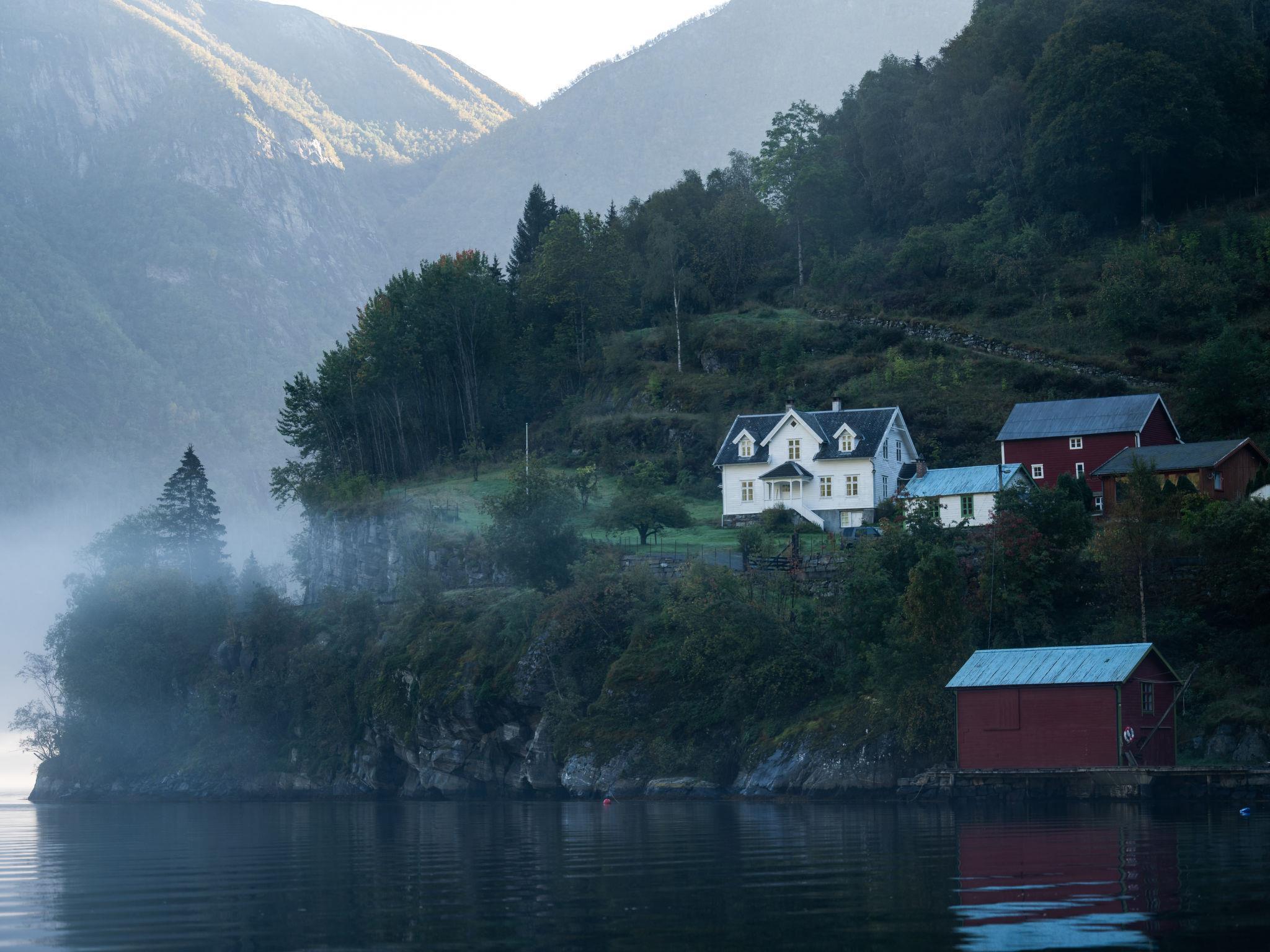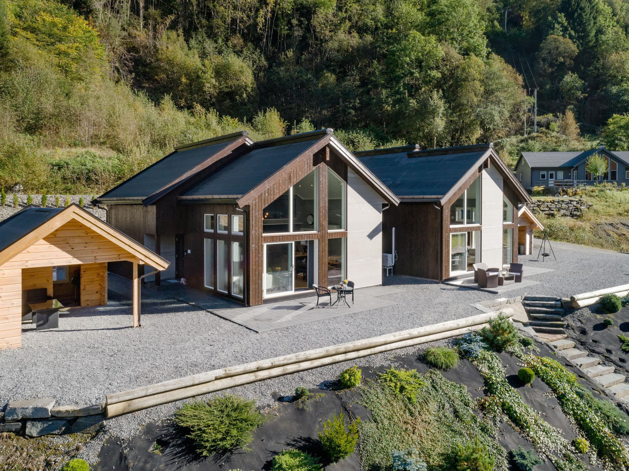 Very modern certified fishing house "Mathias", 4 m a.s.l., 2 storeys, semi-detached, built in 2022. 20 km from the centre of Vik, 190 km from the centre of Bergen, 30 m from the sea, 30 m from the fijord, road to cross. For shared use: property. Barbecue house, bathing jetty fish-processing table. Private: terrace (8 m2), garden furniture. Motor access to the house. Parking (for 3 cars). Shop 3 km, supermarket 22 km, bus stop "Vikøyri" 21 km, sandy beach 30 m. Fishing possibilities 30 m. Nearby attractions: Gudvangen 92 km, Flåm 112 km. Please note: Property ref. NO1881.614.1 is situated on the same property.