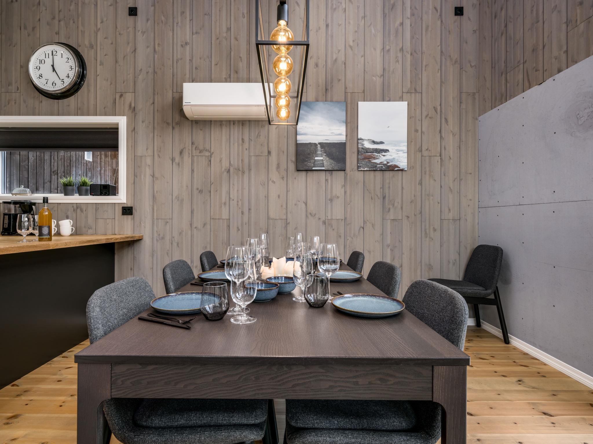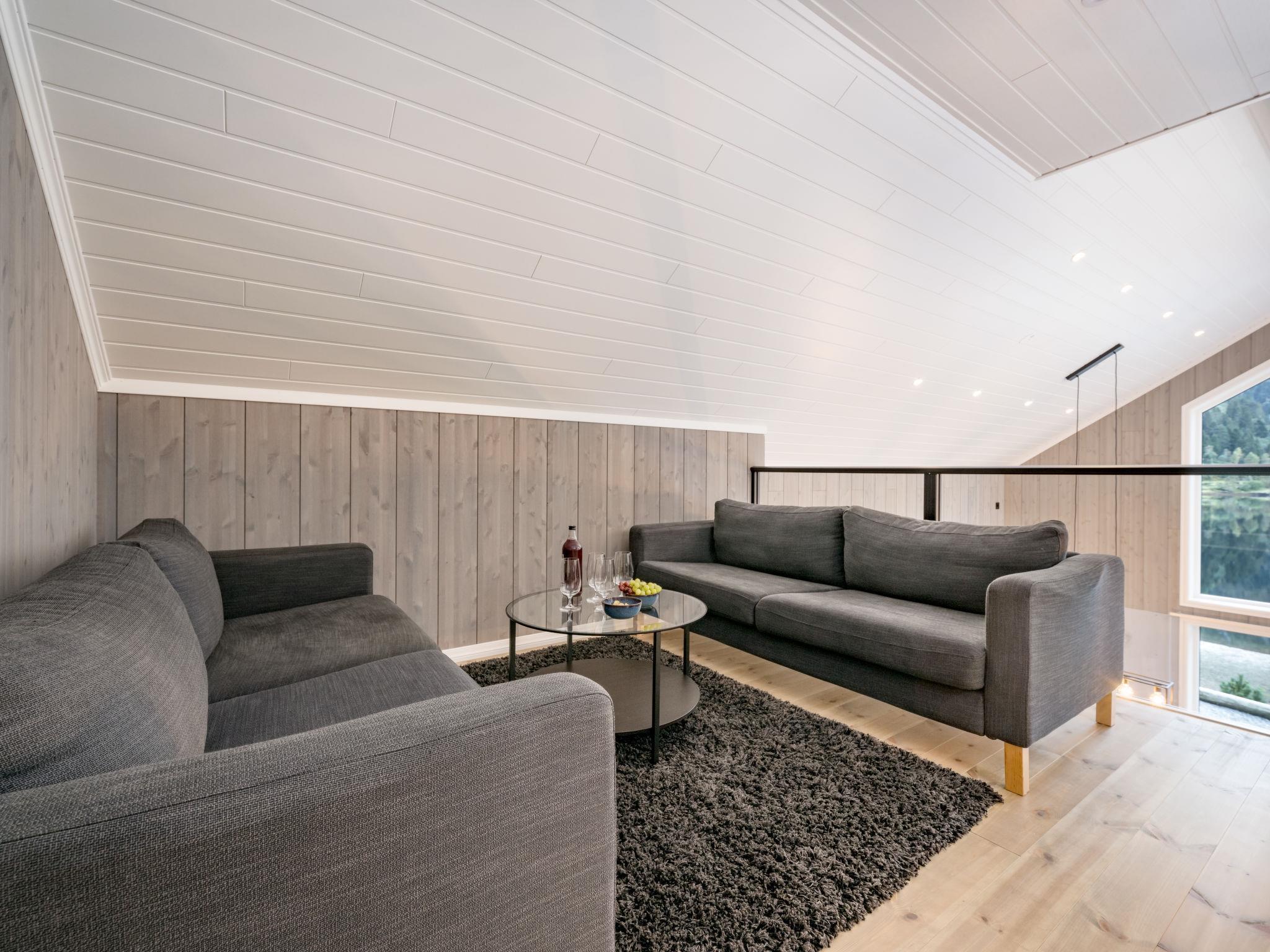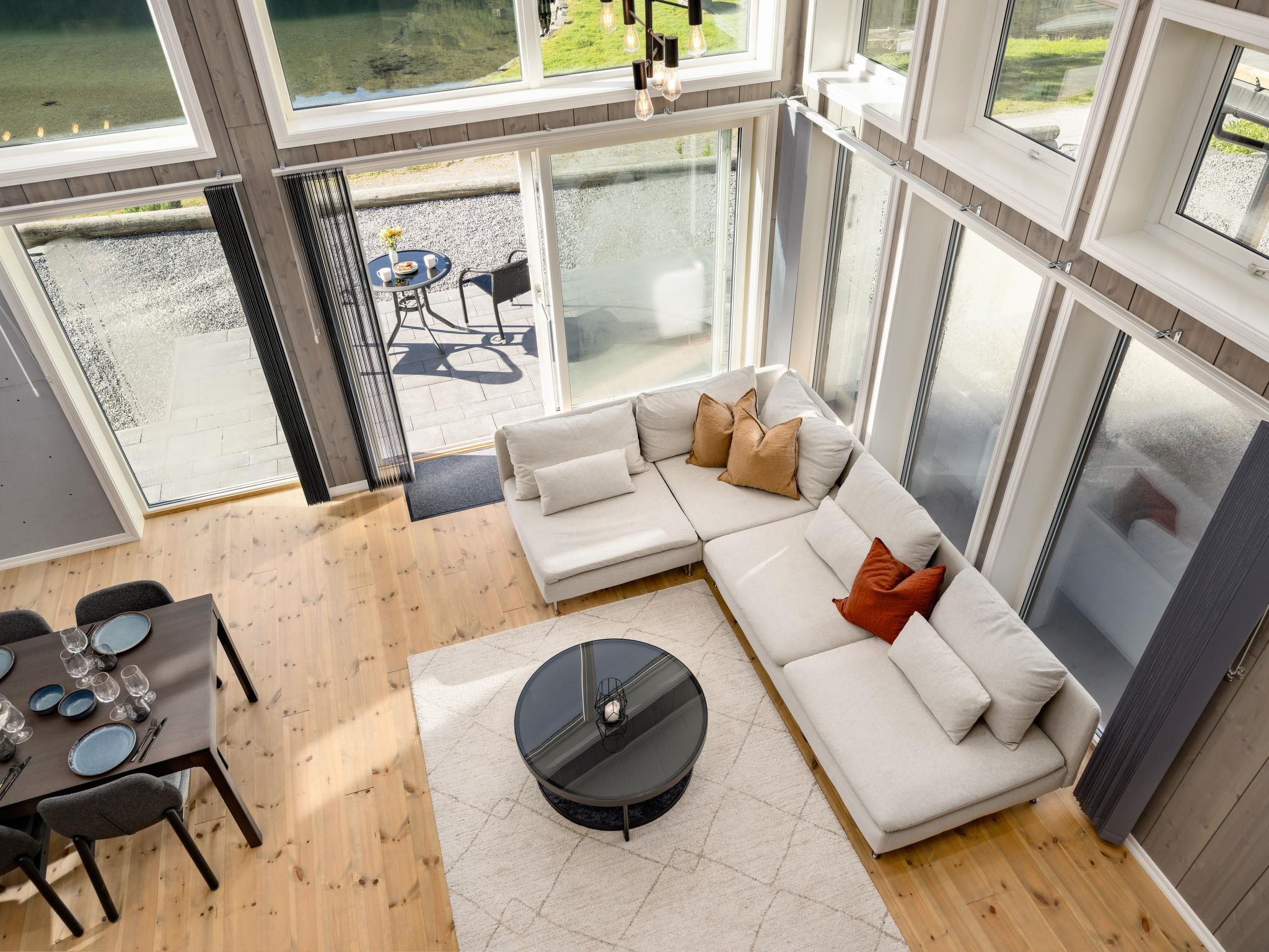 "Mathias", 6-room chalet 115 m2 on 2 levels. Bright, tasteful furnishings: open living/dining room with TV and heating stove. 1 room with 1 double bed (160 cm, length 200 cm). 1 room with 1 bed (90 cm, length 200 cm). Open kitchen (oven, dishwasher, 4 induction hot plates, toaster, kettle, microwave, freezer, electric coffee machine) with dining table. Shower/WC. Upper floor: open living room. 1 room with 1 double bed (160 cm, length 200 cm). 1 room with 2 beds (80 cm, length 200 cm). Beautiful panoramic view of the sea, the mountains and fjord. Facilities: washing machine, sauna. Internet (WiFi, free). Please note: non-smokers only. 924531169