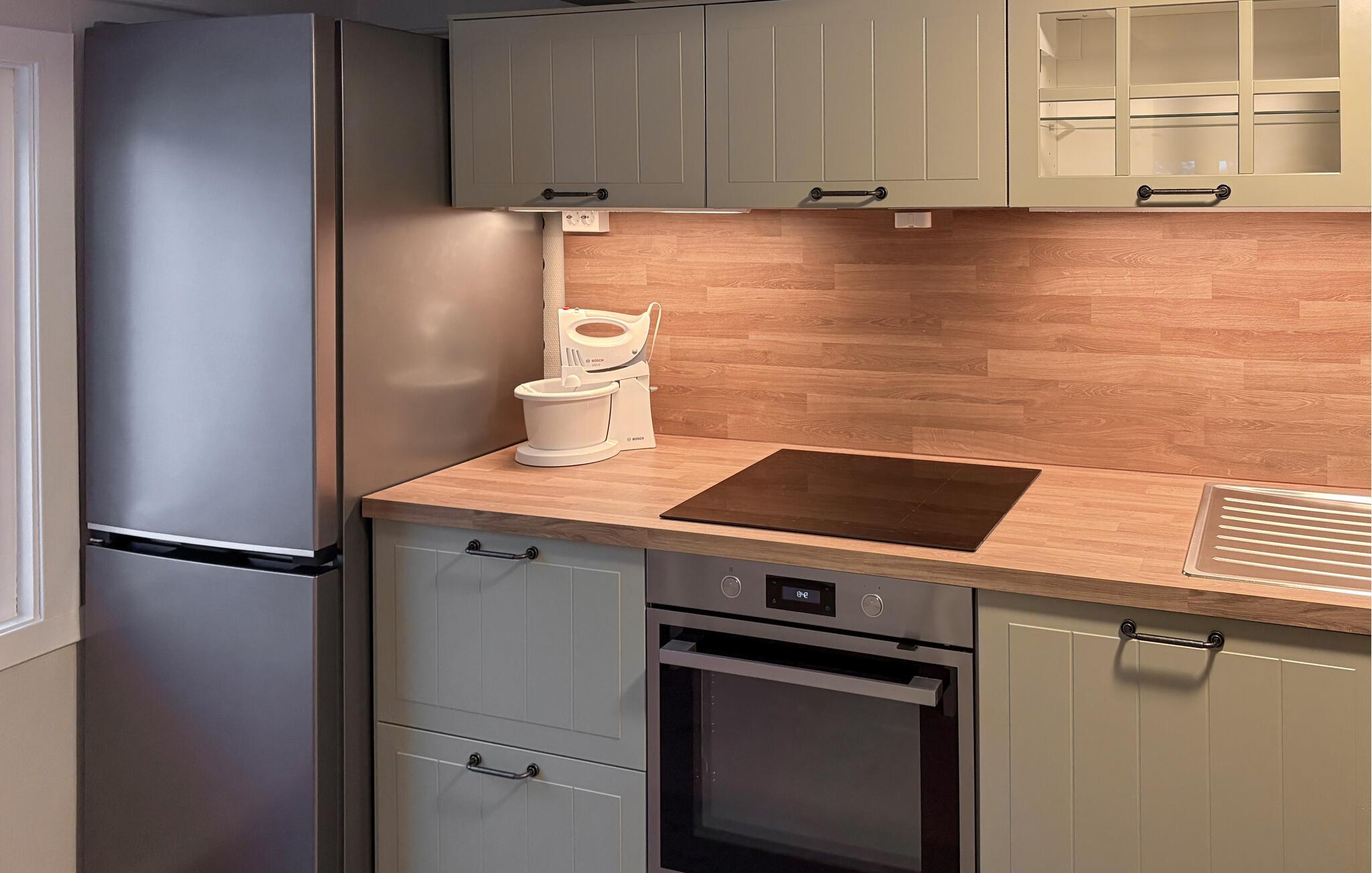 Freuen Sie sich auf eine Auszeit in dieser wunderschönen Unterkunft, die nur wenige Meter vom Wasser entfernt liegt. Der eigene Steg und das Ruderboot laden zu erholsamen Stunden auf dem Meer ein. Genießen Sie die frische Meeresluft und lassen Sie den Blick über die sanften Wellen schweifen, während Sie auf der großen Holzterrasse direkt am Wasser entspannen. Das Ferienhaus besticht durch seine gemütliche und rustikale Atmosphäre. Im Wohnzimmer mit komfortablen Sofas können Sie es sich nach einem ereignisreichen Tag gemütlich machen. Die großzügige Sitzecke bietet Platz für die ganze Familie, um gemeinsame Abende zu verbringen. Im Essbereich finden Sie einen charmanten Holztisch, ideal für gesellige Mahlzeiten, die Sie in der schönen Küche zubereiten können.