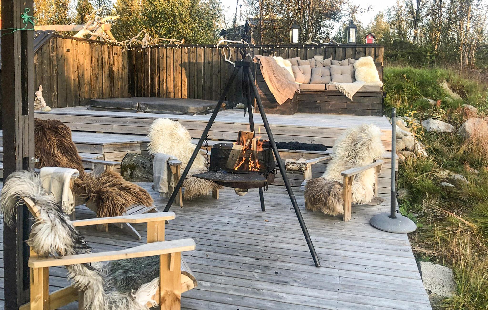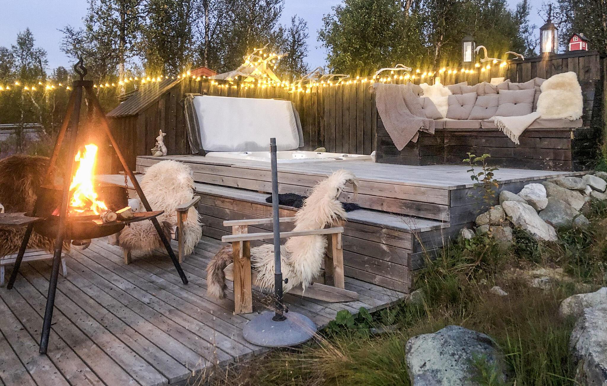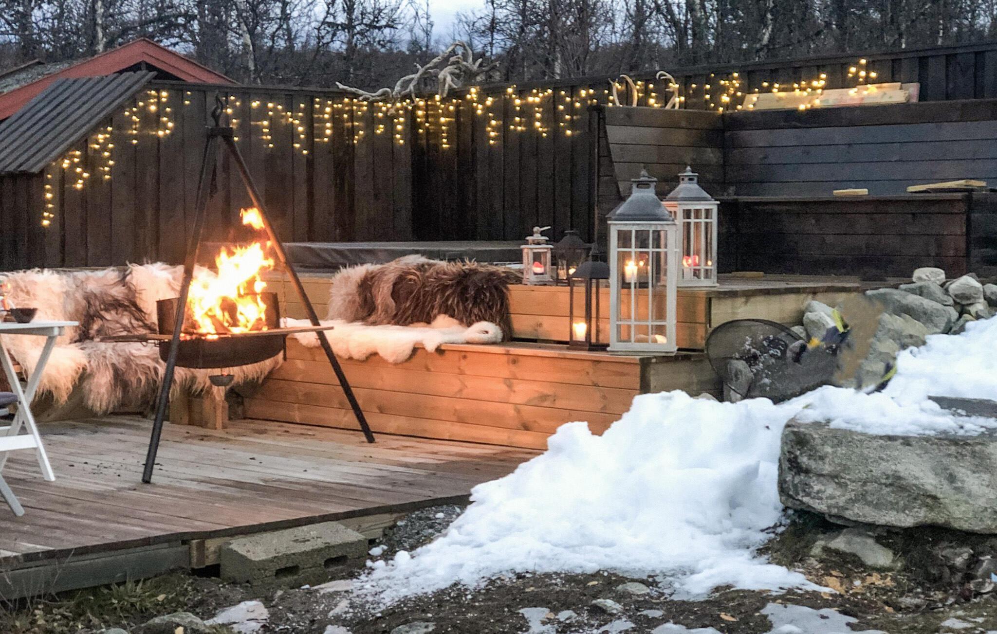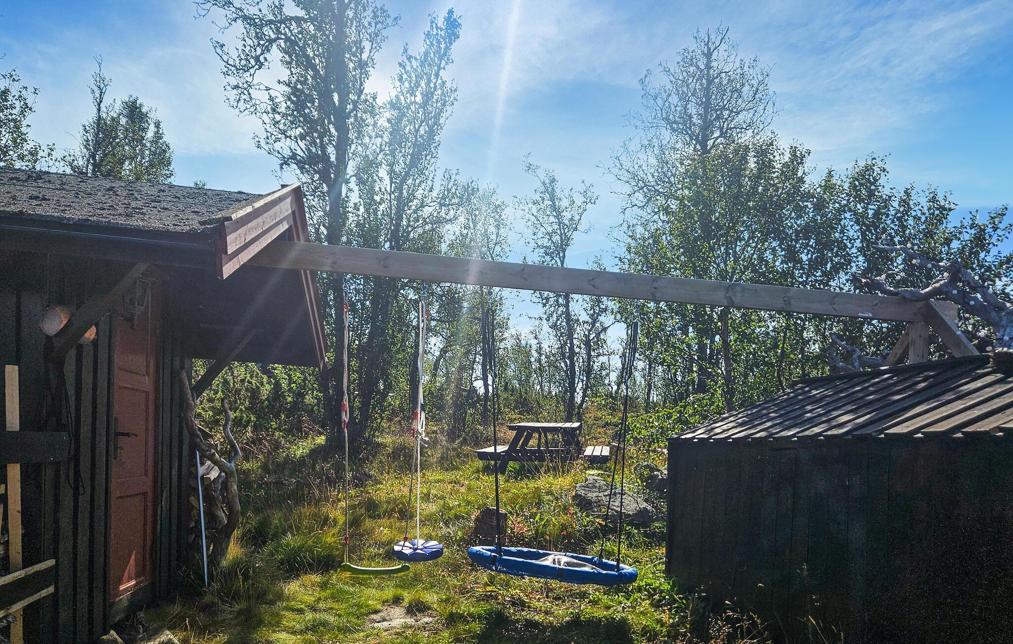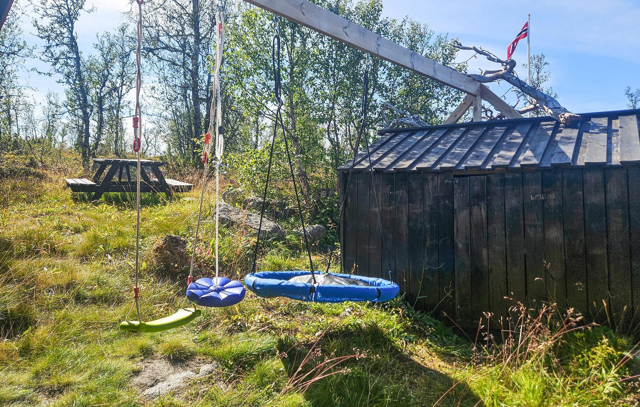 Das sichtgeschützte Naturgrundstück birgt lauschige Plätze im Grünen und abwechslungsreiche Spielmöglichkeiten für die Kinder. Ein weiteres Highlight ist die große Holzterrasse. Servieren Sie hier an sonnigen Tagen ein Frühstück mit fantastischer Aussicht auf den Hallingskarvet, gönnen Sie sich wohlige Momente im Whirlpool und versammeln Sie sich unter dem Sternenhimmel an der Feuerstelle.