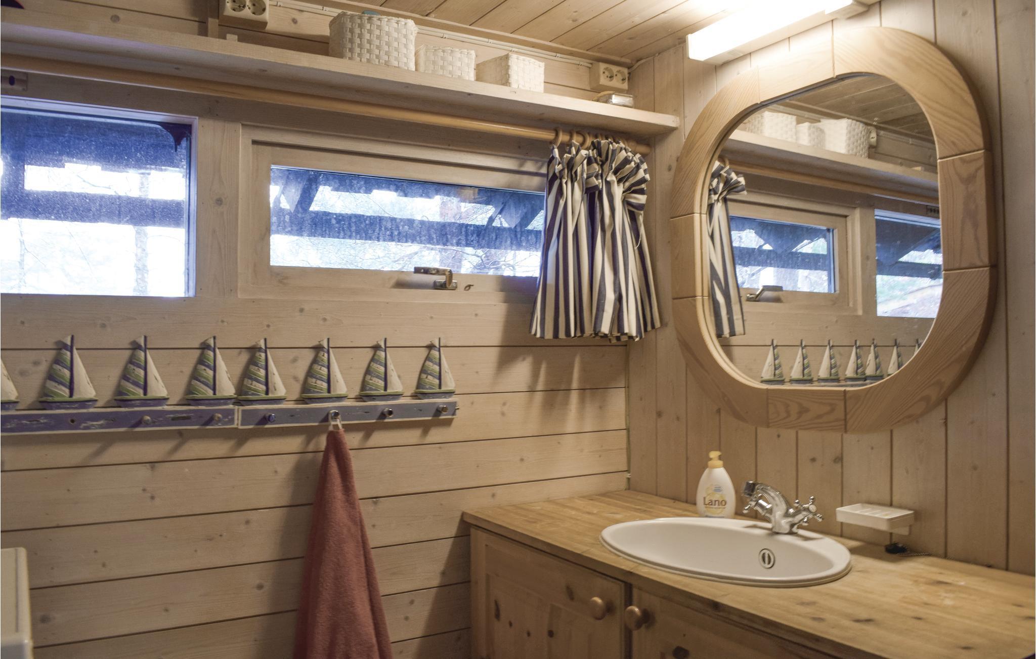 Das Anliegen besteht aus Haupthaus und Nebengebäude. Herrliche Aussicht sobald Sie vom Parkplatz aus hoch zum Haus kommen. Genießen Sie die Sonne auf der großen Terrasse und baden Sie am Bootsanleger. Hier lässt es sich übrigens auch hervorragend angeln. Im Haus selbst bietet die offene Küche einen guten Sammelpunkt am Abend. Zusätzlich gibt es ein Bad und drei Schlafzimmer, wovon eines ein Durchgangszimmer ist, sowie eins das Loft. Im Nebengebäude liegt ein weiteres Schlafzimmer mit Doppelbett und eigenem Bad mit Dusche.