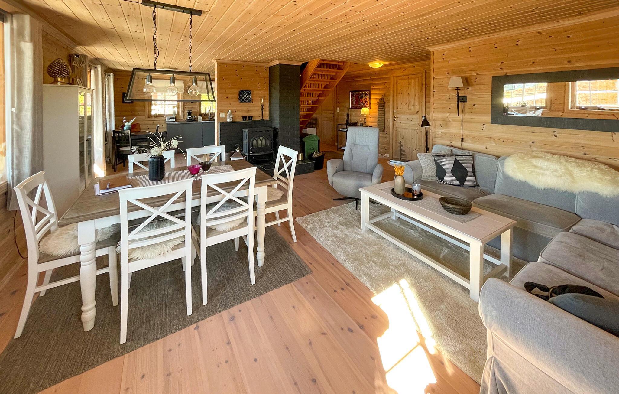 Willkommen in diesem einladenden Ferienhaus, das sich auf einem sichtgeschützten Naturgrundstück im Hüttengebiet Bjønntjønn zwischen Gautefall und Treungen befindet. Das helle Haus eignet sich perfekt für die etwas größere Familie und verspricht Ihnen mit seiner Lage und seiner modernen und guten Ausstattung eine erholsame und aktive Zeit mit großen Naturerlebnissen. Nach den Abenteuern des Tages können Sie auf dem Sofa Ihre Füße hochlegen. Ob Kochen, Essen oder Spielen, egal was Sie tun, hier geht es darum, die gemeinsame Zeit zu genießen. Nur wenige Schritte vom Haus entfernt finden Sie schöne Wanderwege und Langlaufloipen. Auch Angel- und Bademöglichkeiten gibt es in der Nähe.