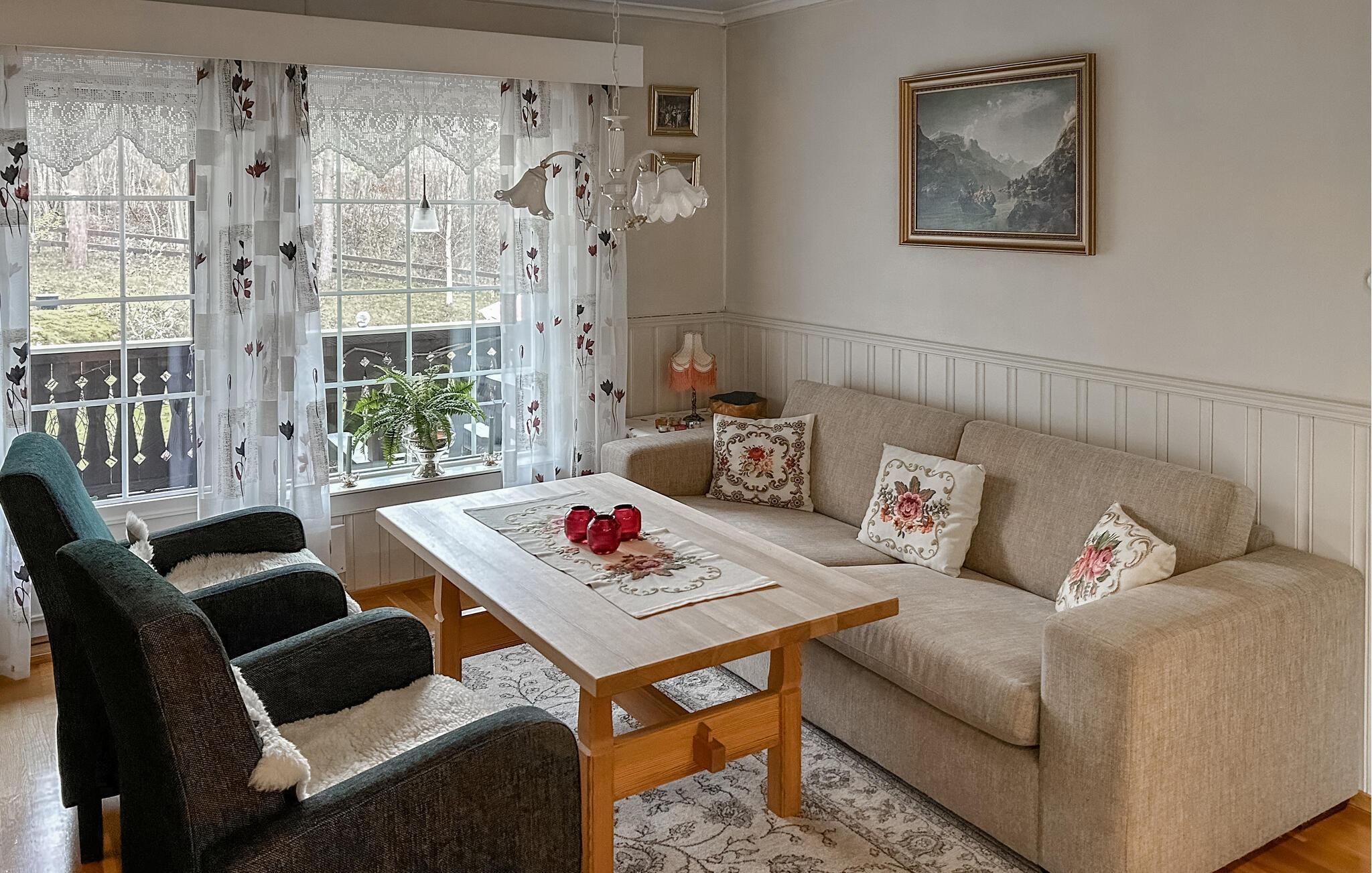 Dieses klassische und komfortable Ferienhaus in Lensbygda bietet eine einladende Wohlfühlatmosphäre und liebevoll ausgewählte Details. Die charmante Einrichtung sorgt dafür, dass Sie sich sofort wie zuhause fühlen. Verbringen Sie gemütliche Abende im Wohnzimmer oder bereiten Sie gemeinsam in der voll ausgestatteten Küche Ihre Lieblingsgerichte zu. Für sportliche Aktivitäten steht Ihnen sogar eine Rudermaschine zur Verfügung. Draußen locken eine Veranda und Terrasse, die zum Verweilen und Entspannen einladen – ideal für sonnige Tage und gesellige Abende.