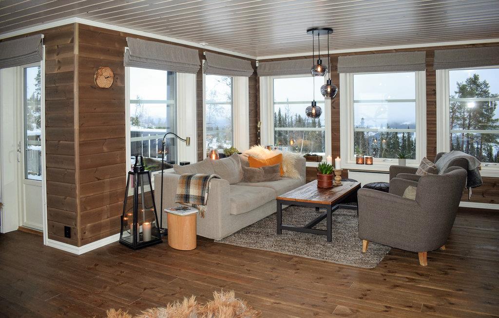 Das einladende Haus empfängt Sie umgeben von der zauberhaften Bergwelt und ist der ideale Ort für einen Urlaub mit Aktivitäten in der Natur. Genießen Sie die Mahlzeiten mit schöner Aussicht, wärmen Sie sich nach Ihren Unternehmungen in der Sauna auf und lassen Sie beim Entspannen in der Sitzgruppe den Blick über die pittoreske Umgebung schweifen, während im Kamin die Flammen prasseln.