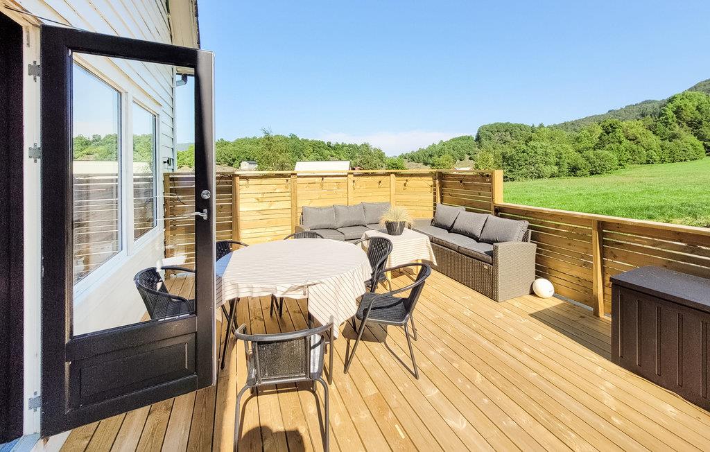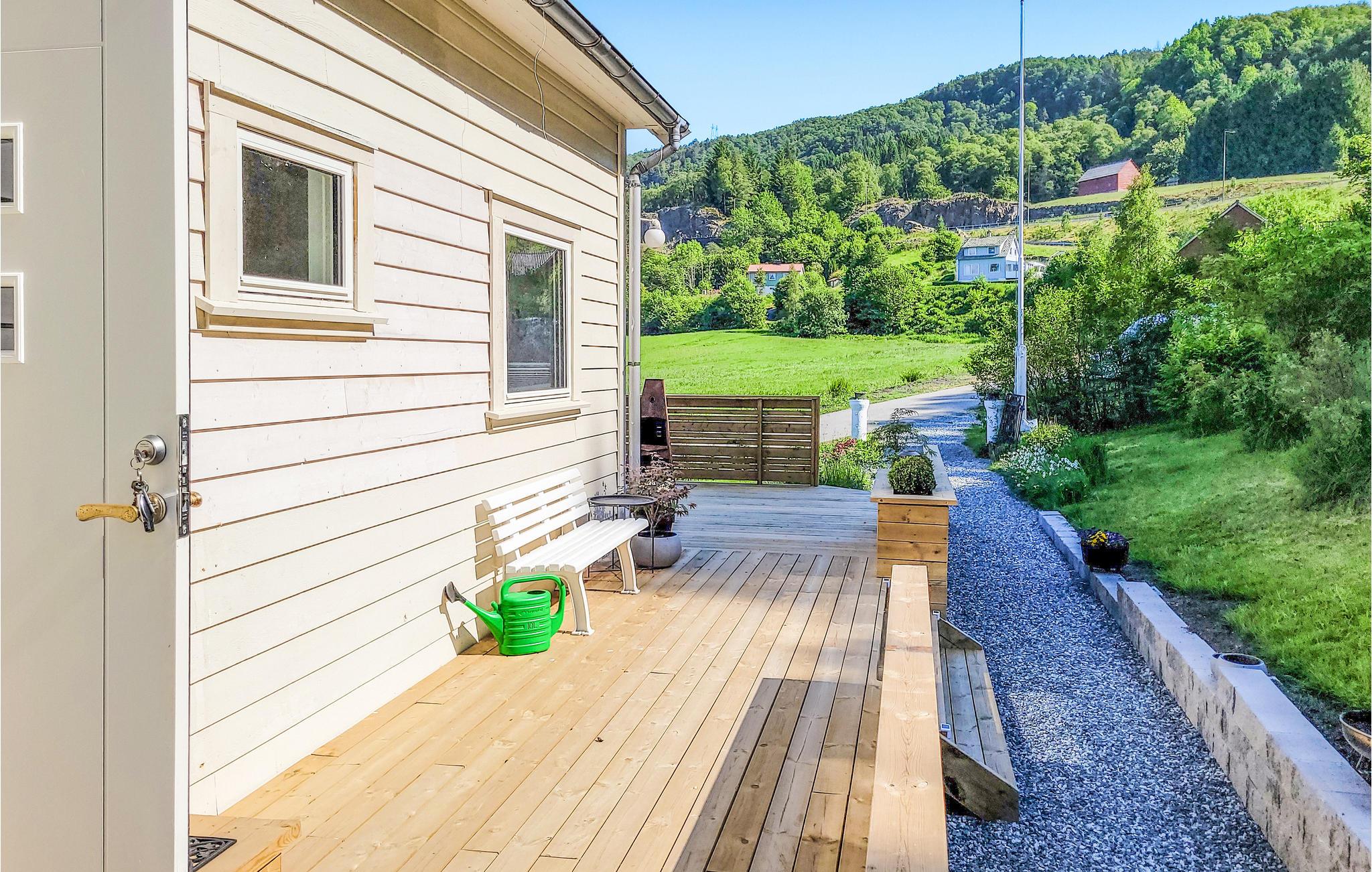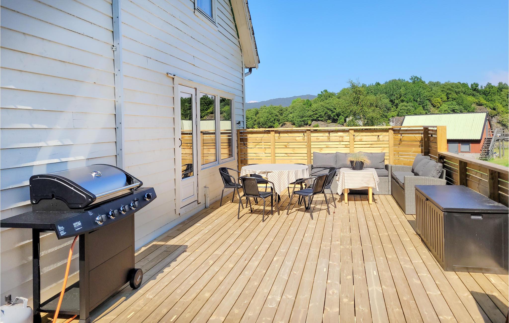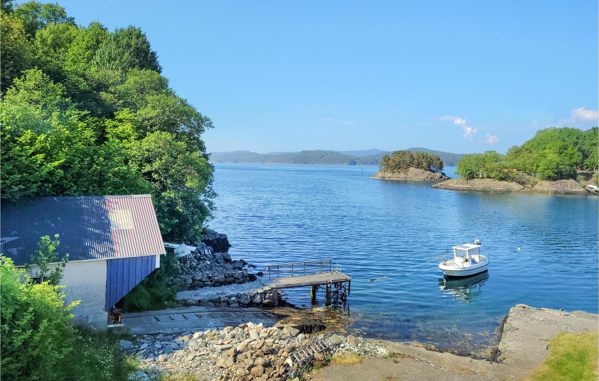 Verbringen Sie Zeit im Garten, dem Steg und am Badeplatz, den Sie direkt vor dem Haus vorfinden. Gehen Sie baden, angeln und entspannen, während Sie die Ruhe des Fjordes genießen. Die Terrasse mit Gartenmöbeln und der Grill stehen Ihnen für schöne Tage zur Verfügung.