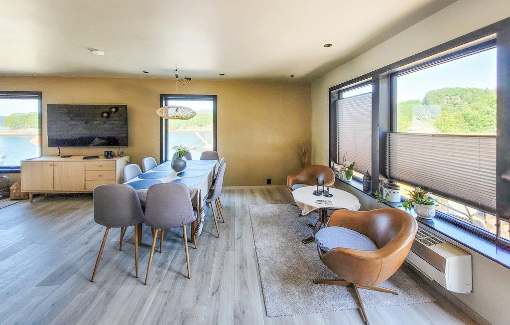 Was wollen Sie mehr? In traumhafter Lage direkt am Fjord heißt Sie dieses schöne Ferienhaus willkommen. Fühlen Sie sich mit Ihrer Großfamilie hier wie zuhause und genießen den Komfort und die hochwertige Ausstattung. Verbringen Sie viel Zeit im Wohnraum im Erdgeschoss, von dessen großen Fenstern Sie den schönen Fjordblick genießen können.