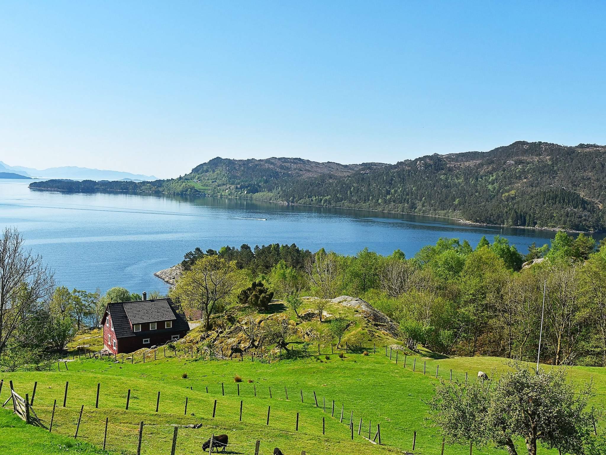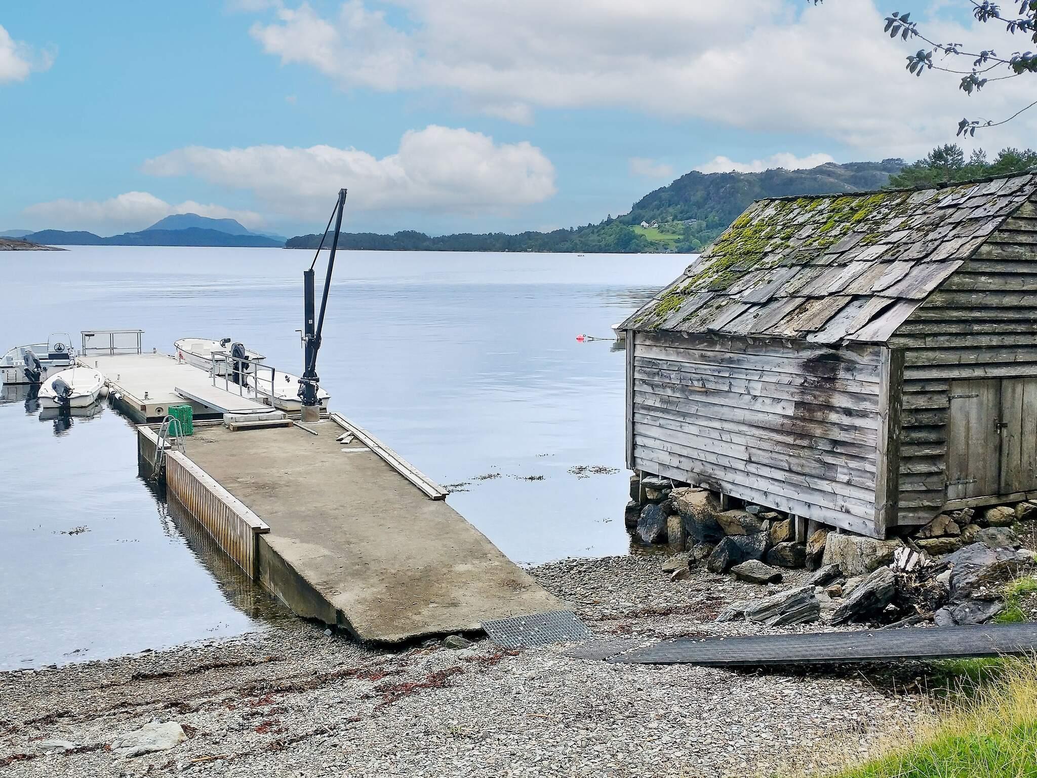 Außerdem seichtes Badeufer mit Kieselsteinen etwa 200 m entfernt. Weitere Badeufer findet man auf den vorgelagerten Inseln. Das etwa 1.000 m2 große Rasengrundstück nutzt man gemeinschaftlich. Kaufmannsladen etwa 10 km weiter, der nächste kleine Ort, Våge, ist etwa 30 km entfernt. Parkplatz etwa 20 m von der Wohnung. Vor Ort auf dem Hof werden Schafe und Ziegen gehalten. .