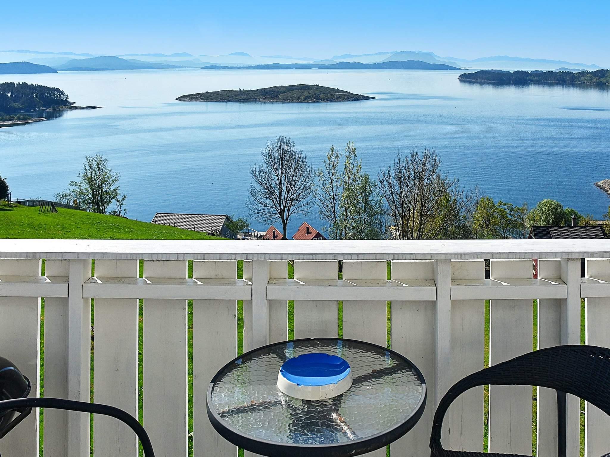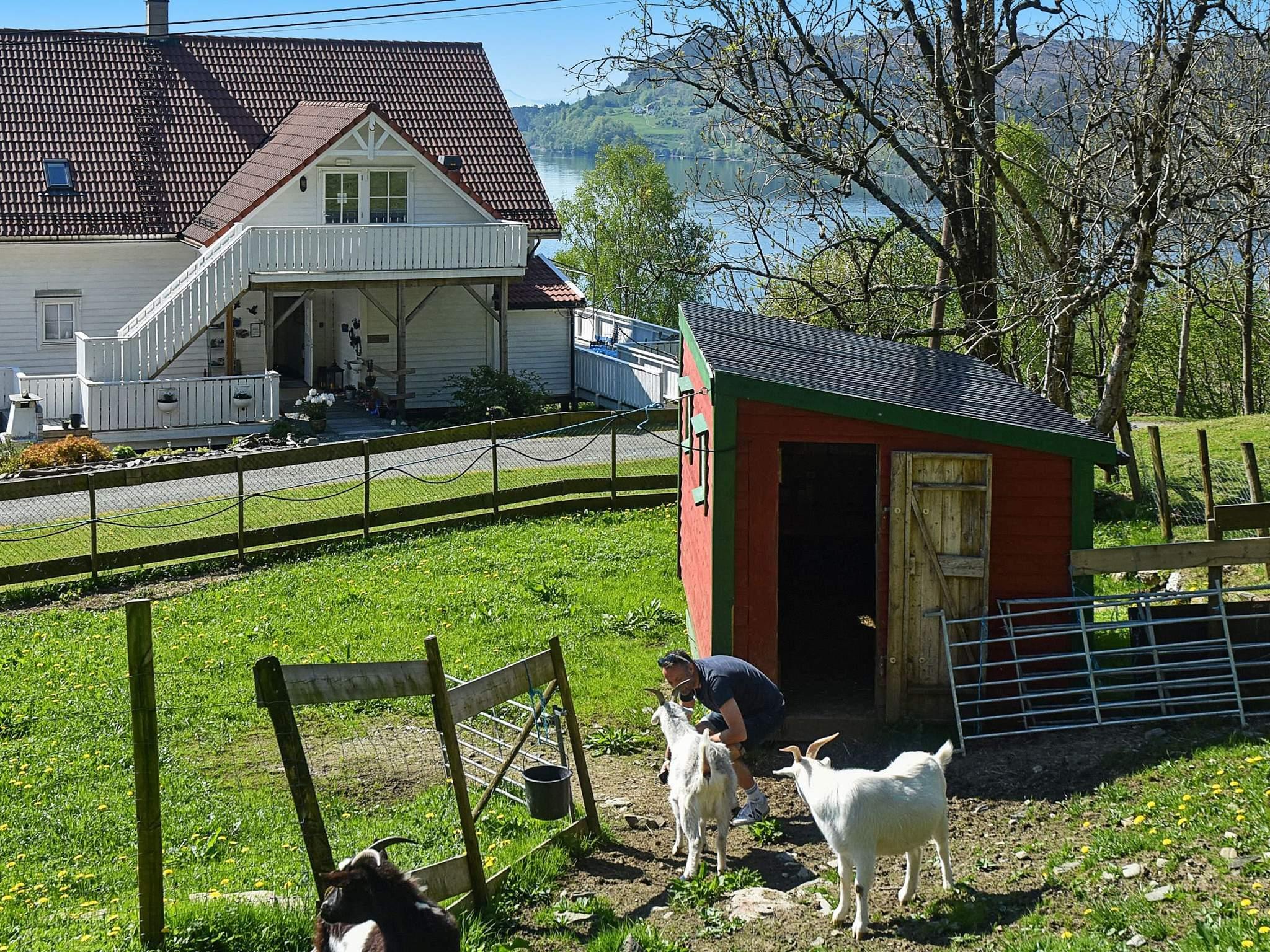 Ferienwohnung im Dachgeschoss, mit wunderbarer Panoramaaussicht zum Husnesfjord und zum Einlauf des Hardangerfjordes vom Balkon! Sie wohnen hier auf dem Lande, an einem Hof mit Schafen und Ziegen.