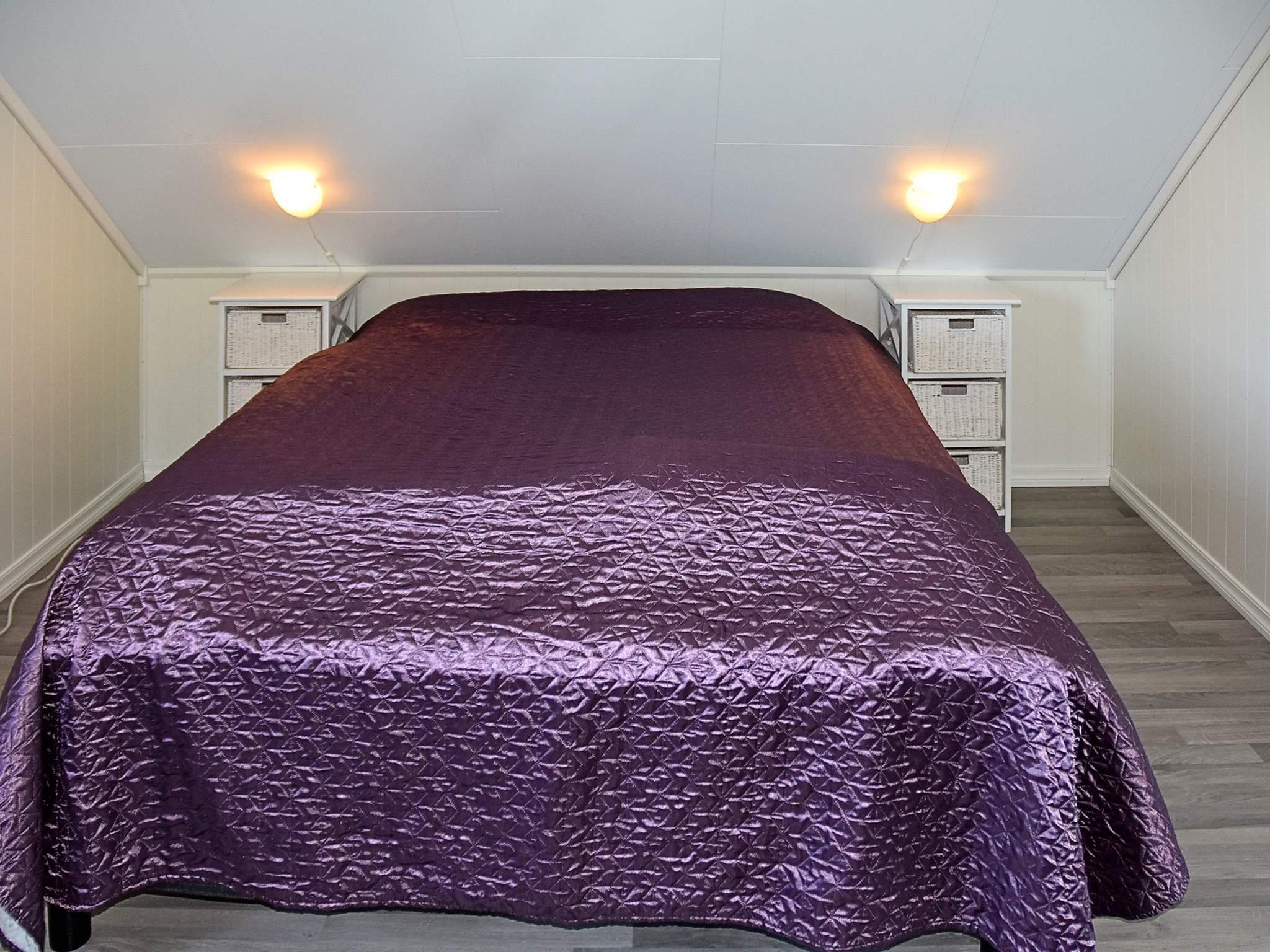 Innen steht ein gemütlicher Küchen-/Wohnbereich mit einigen deutschen TV-Sendern zur Auswahl zur Verfügung. Außerdem großes Fenster im Wohnbereich mit herrlichem Fjordblick und Zugang zum Balkon davor. Zwei Schlafzimmer mit jeweils einem Doppelbett und extra Liege. Helles Bad mit Dusche/WC.