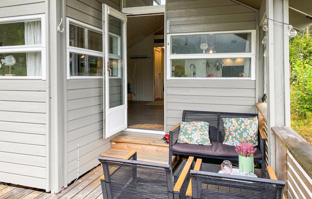 Treten Sie schon morgens auf die geschützte Terrasse und atmen Sie die frische Meeresluft, die vom Fjord heraufweht. Frühstücken Sie in Ruhe, genießen Sie den Blick übers Wasser und freuen Sie sich auf einen Tag umgeben von der Schönheit der Natur. Lassen Sie den Abend bei stimmungsvoller Beleuchtung und einer Flasche Wein entspannt ausklingen.