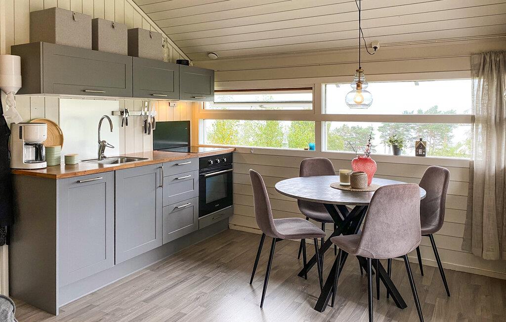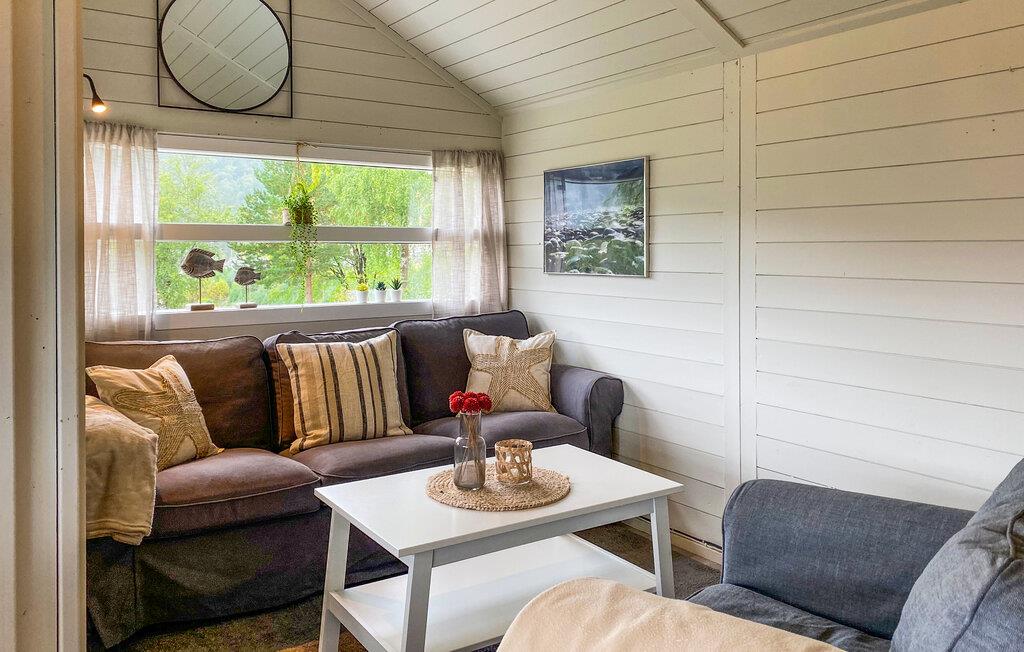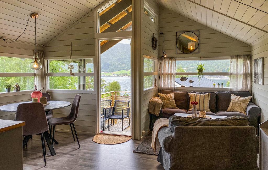 Dieses schöne Holzhaus vereint Rustikalität und Gemütlichkeit auf ganz harmonische Weise. Durch die Fenster fällt viel helles Tageslicht, während Sie einen bezaubernden Blick nach draußen auf den Fjord genießen. Egal ob Sie gemütlich bei einer Tasse Kaffee plaudern, gemeinsam kochen oder beim Musikhören entspannen – hier bestimmen Sie den Rhythmus Ihres Tages.