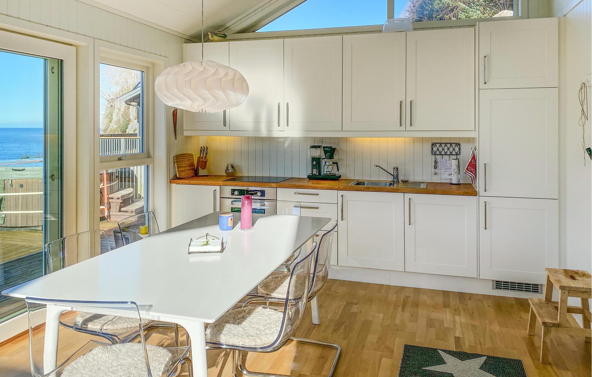 Dieses fantastische Norwegen-Ferienhaus bietet Ihnen nicht nur die Möglichkeit, sich wunderbar zu erholen und den Alltag hinter sich zu lassen, sondern auch einen atemberaunden Blick auf das glitzernd blaue Meer. Ganz gleich, ob beim Zubereiten des Frühstücks in der Küche, beim gemeinsamen Abendessen am Esstisch oder abends beim geselligen Plaudern auf dem Sofa, überall eröffnet sich Ihnen der Blick auf die beeindruckende Natur. Und wenn Sie das Ganze auf der Terrasse genießen, kommt auch noch die gesunde, frische Meerbrise dazu. In diesem Ferienhaus wird Wohlfühlen und Entspannung großgeschrieben.