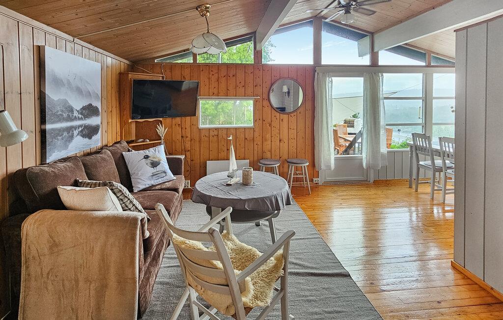 Willkommen in diesem fantastisch gelegenen Haus, das Sie mit bezauberndem Blick auf den Bunnefjord empfängt. Hier können Sie die Natur hautnah erleben und gleichzeitig ein einzigartiges Panorama genießen. Machen Sie es sich in den rustikal-behaglichen Räumen nach Ihren Ausflügen gemütlich, das Sofa lädt nach einem erlebnisreichen Tag zum Entspannen ein, lassen Sie vom Esstisch den Blick über das Wasser schweifen und sorgen Sie mit einem Feuer im Kamin für eine besonders behagliche Atmosphäre. Am Haus können Sie nahe der Natur im Freien entspannen und die fantastische Aussicht voll auskosten.