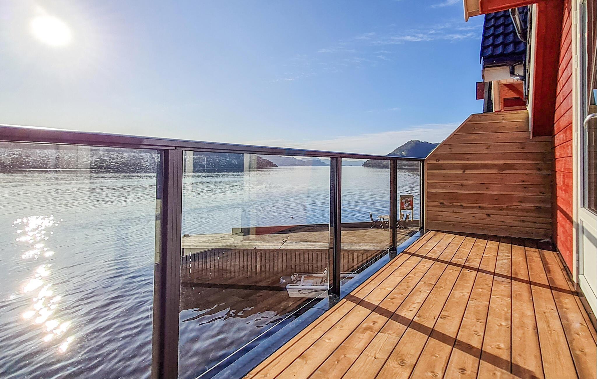 Das Haus empfängt Sie in schöner Lage direkt am Fjord inmitten einer bezaubernden Landschaft und ist der ideale Ort, um in ansprechender Umgebung zu entspannen. Die wohnliche Einrichtung macht es Ihnen leicht, sich hier vom ersten Tag an wohlzufühlen. Freuen Sie sich ein fantastisches Panorama, dass großflächige Fenster optimal zur Geltung bringen und lassen Sie bei den gemeinsamen Mahlzeiten den Blick über den Fjord schweifen.