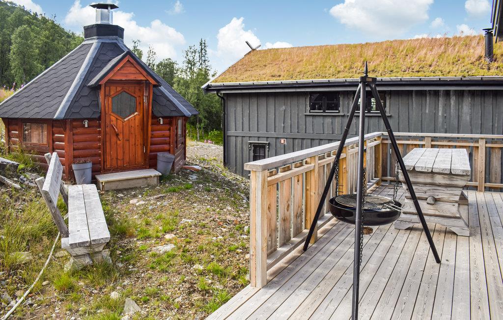 Diese moderne und top ausgestattete Familienhütte auf 3 Etagen ist ein Diamant unter den Ferienhäusern in Holtardalen! Gemeinsam mit Ihrer Großfamilie und Ihrem Haustier können sie hier entspannen und es sich gutgehen lassen. Die hochwertige Ausstattung, die ein Gefühl von Gemütlichkeit und Wohlfühlatmosphäre versprüht, rundet das Gesamtpaket ab. Finden Sie Erholung und Ruhe in den Schlafzimmern und Geselligkeit in den Wohnbereichen. Der Außenbereich bietet Ihnen ebenfalls tolle Möglichkeiten. Genießen Sie die Sonne von morgens bis abends auf den unterschiedlichen Terrassenbereichen. Zudem können Sie entspannende Bäder im Whirlpool nehmen, nachdem sie aus der Sauna gekommen sind und sich an dem Ausblick auf die Landschaft erfreuen. Im Garten finden Sie auch eine Grillhütte für 12 Personen vor, wo Sie gemütliche Abende verbringen können.