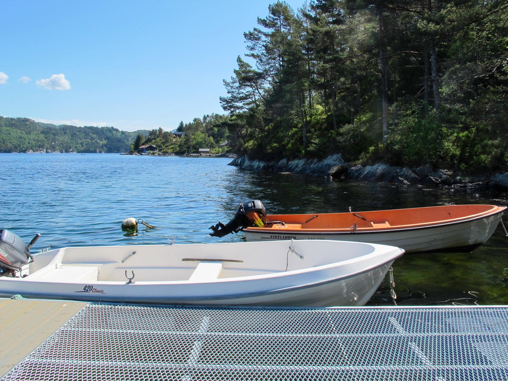 Certified fishing house "Gamlahuset", 36 m a.s.l., built in 1968, renovated in 2019. 1 km from the centre of Bruntveit, 50 km from the centre of Leirvik, 73 km from the centre of Bergen, on a slope, 1 km from the lake, 600 m from the fijord. Fish-processing table. Private: property 1'000 m2 with meadow. Fish-processing table. Motor boat (on order), parking on the premises. Shop 1 km, supermarket 27 km, bus stop "Bruntveit" 700 m, railway station "Bergen" 73 km, ferry "Bergen" 73 km, sandy beach 1 km. Fishing possibilities 1 km. Please note: animals in the neighbourhood. Room for fish gutting available.