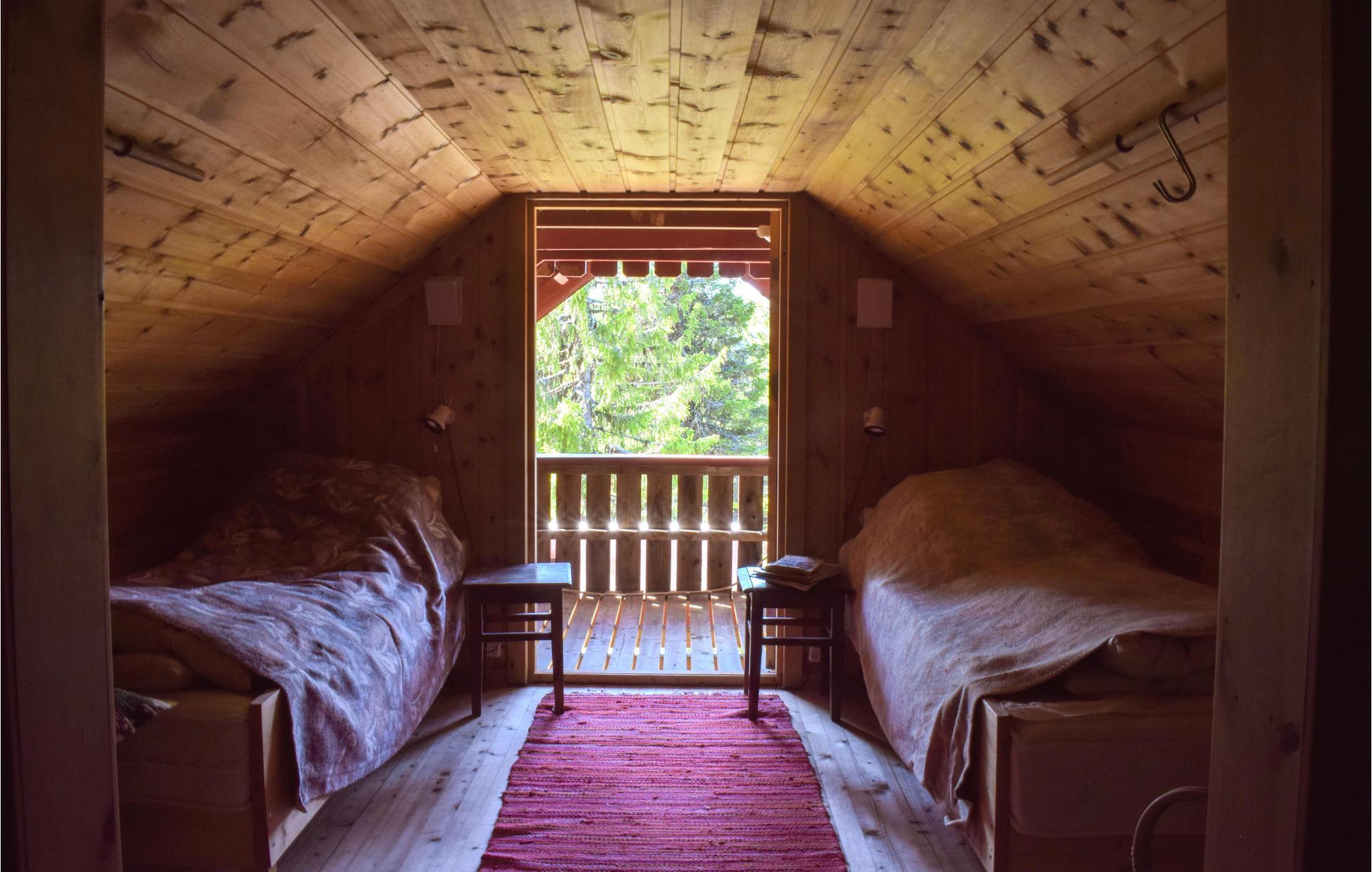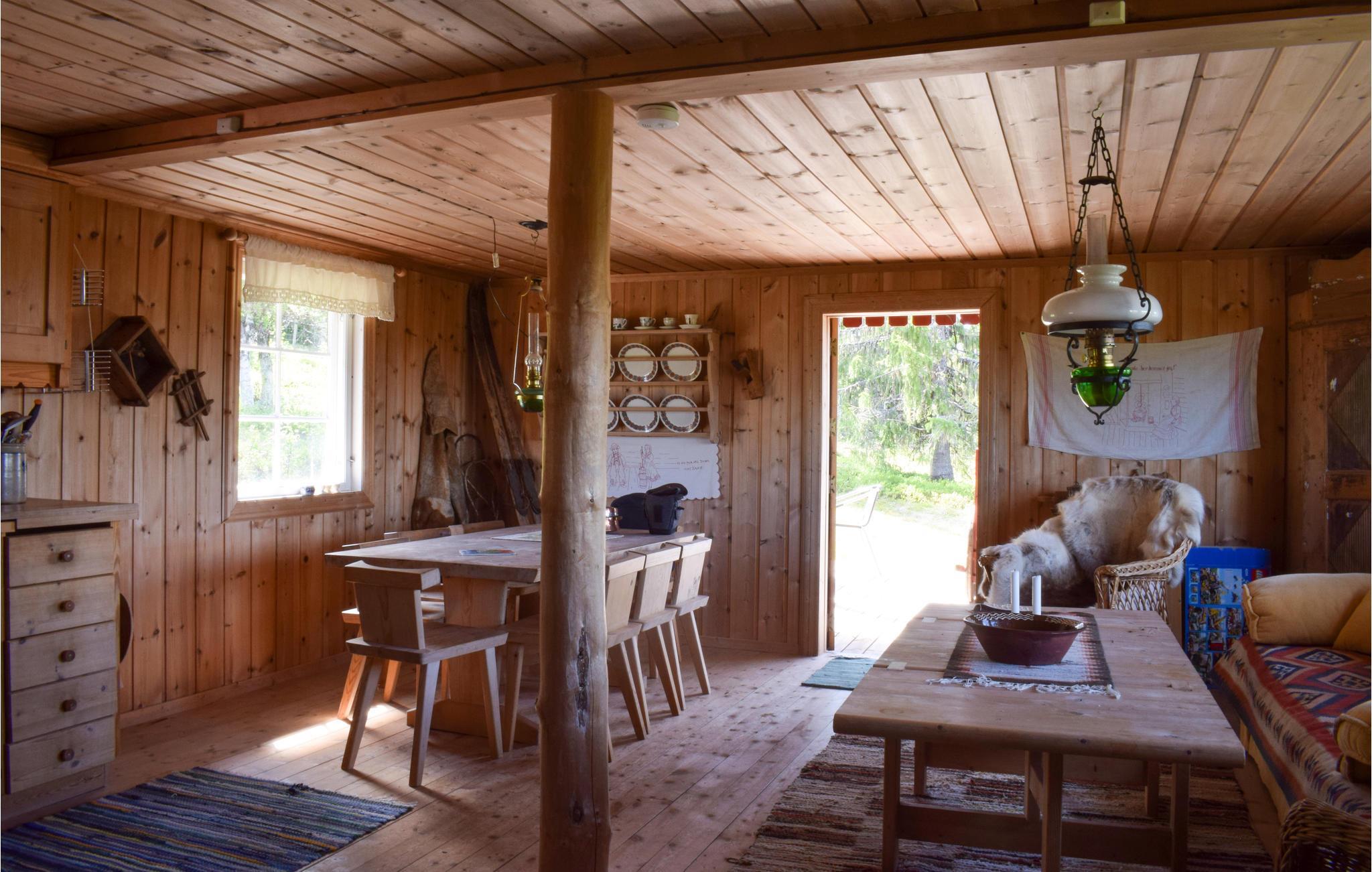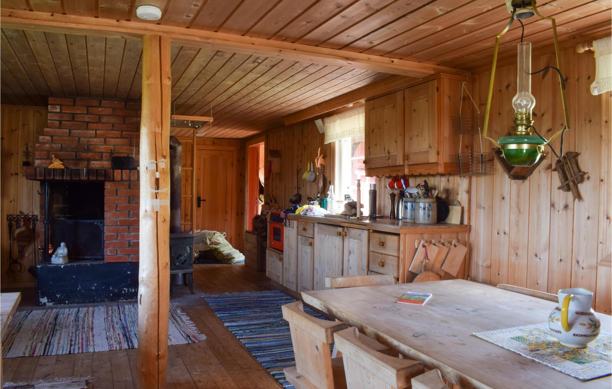 Genießen Sie einen erholsamen Aufenthalt in dieser urigen Hütte mit Platz für eine große Familie. Direkt vor der Tür warten zahlreiche Outdoor-Aktivitäten auf Sie. Die Umgebung ist ideal für Angeln, Radfahren und ausgedehnte Wanderungen. Machen Sie es sich im gemütlichen Wohnbereich bequem. Der rustikale Charme mit viel Holz und liebevollen Details sorgt für eine warme Atmosphäre. Entspannen Sie sich auf der großen Couch und genießen Sie Ihre gemeinsamen Mahlzeiten am angrenzenden Esstisch. Wärmen Sie sich an kühleren Abenden entweder am Kamin oder am Kaminofen.