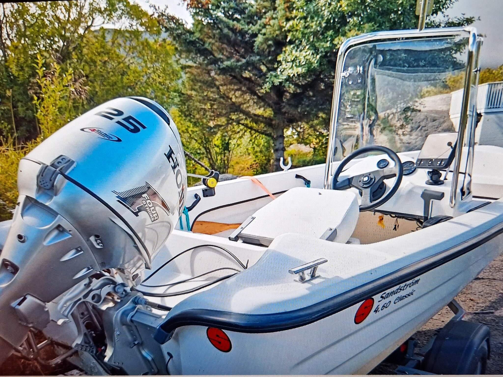 - *ein 15 Fuß Boot m. 25 PS 4-Takt Motor.
