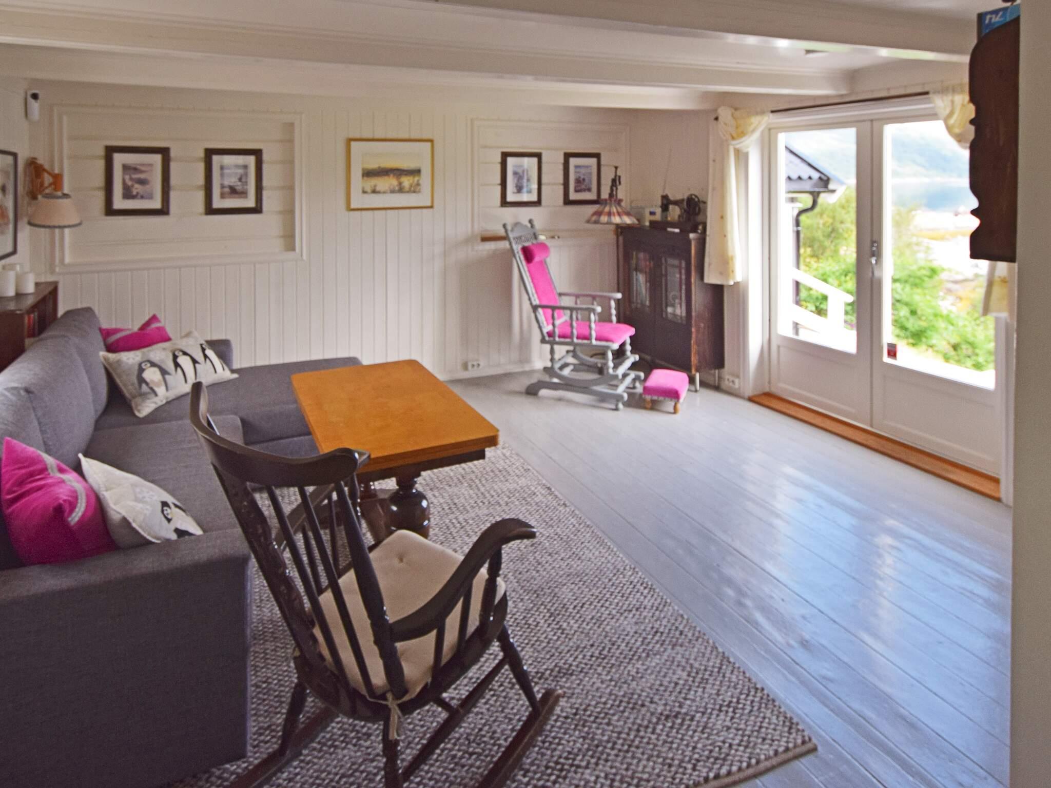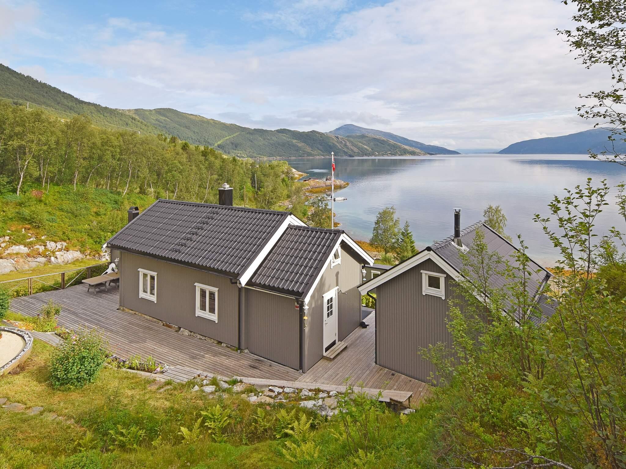 Ferienhaus mit eigenem Strandufer und schönem Fjordblick. Liegt an der Ostküste von Sandhornøya. Die Insel hat eine Brückenverbindung zum Festland. Ruhige Umgebung, gutes Angelrevier im Meer sowie wunderbare Wandermöglichkeiten vor Ort. Dazu kinderfreundlicher Außenbereich am Haus mit Spielgeräten. Boot, Kajak und Kanu können gemietet werden.