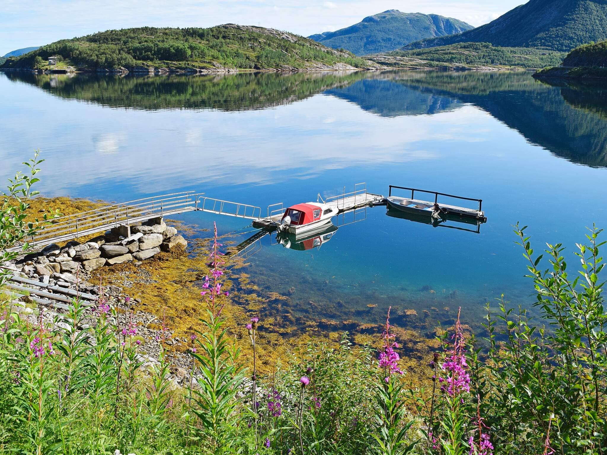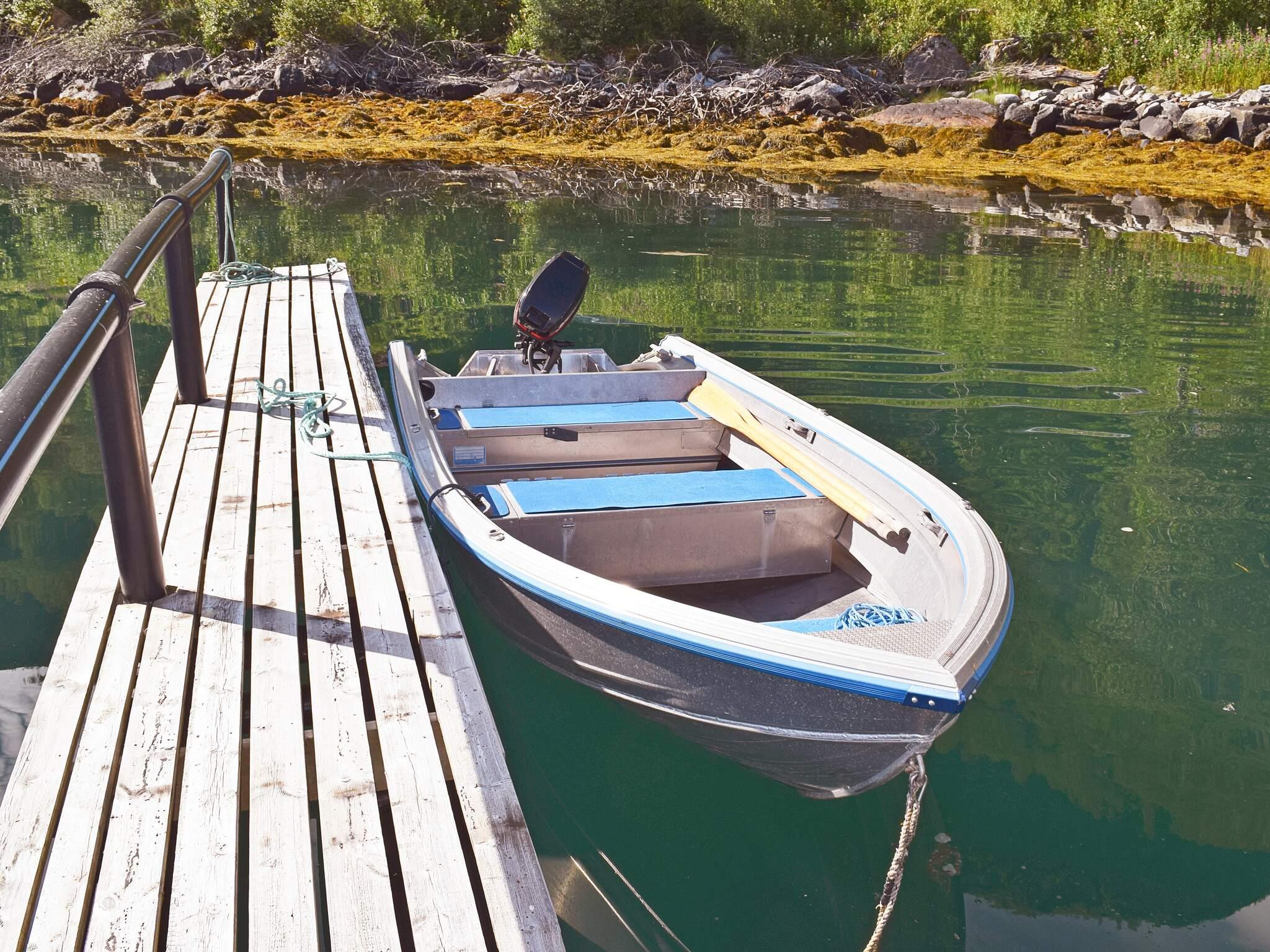 Gutes Angelrevier im Fjord. Für Angeltouren kann ab Mai bis Oktober ein Boot mit Motor sowie ein Kanu und ein Kajak angemietet werden. Das Boot liegt 2,5 km vom Ferienhaus entfernt, an einem privaten Schwimmsteg vertäut. Dort hat man Zugang zu einer Filetierbank mit fließend Wasser. Es sind ca. 5 km nach Kjøpstad, wo größere Boote angemietet werden können.