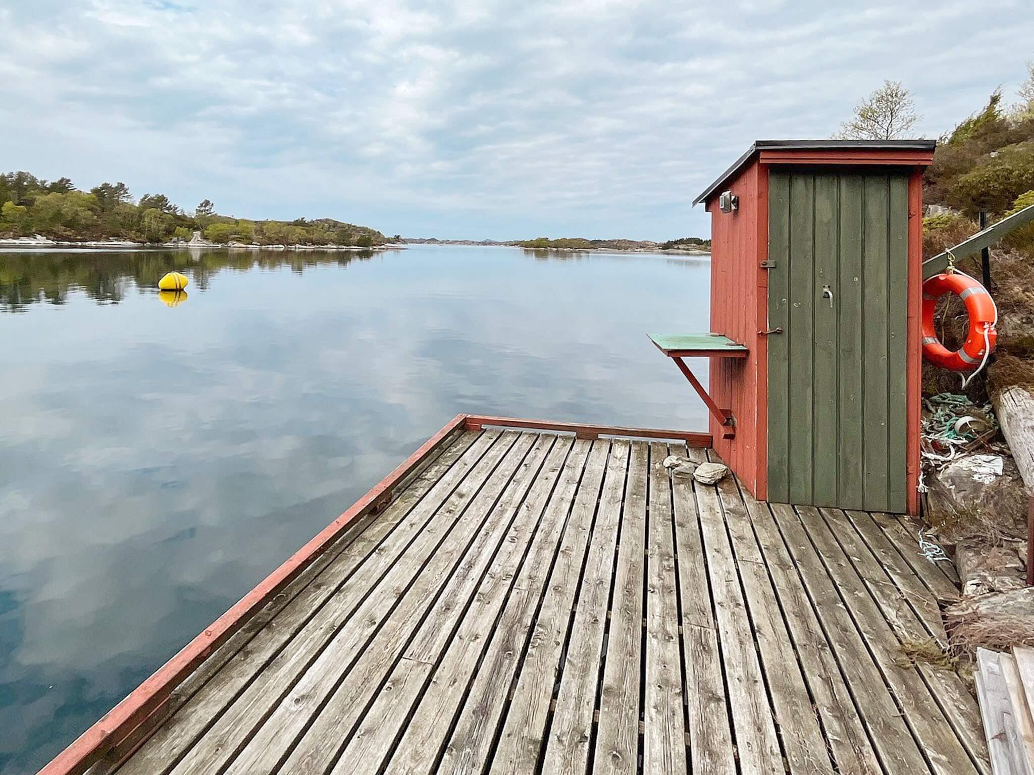 Von der unteren Seite der Terrasse führt ein Weg hinunter zum privaten Anleger mit Schwimmsteg und Liegeplatz, nur 20 m vom Ferienhaus entfernt. Direkt über dem Ferienhaus befindet sich ein überdachter Grillplatz mit Feuerstelle, Bänken und Tisch.