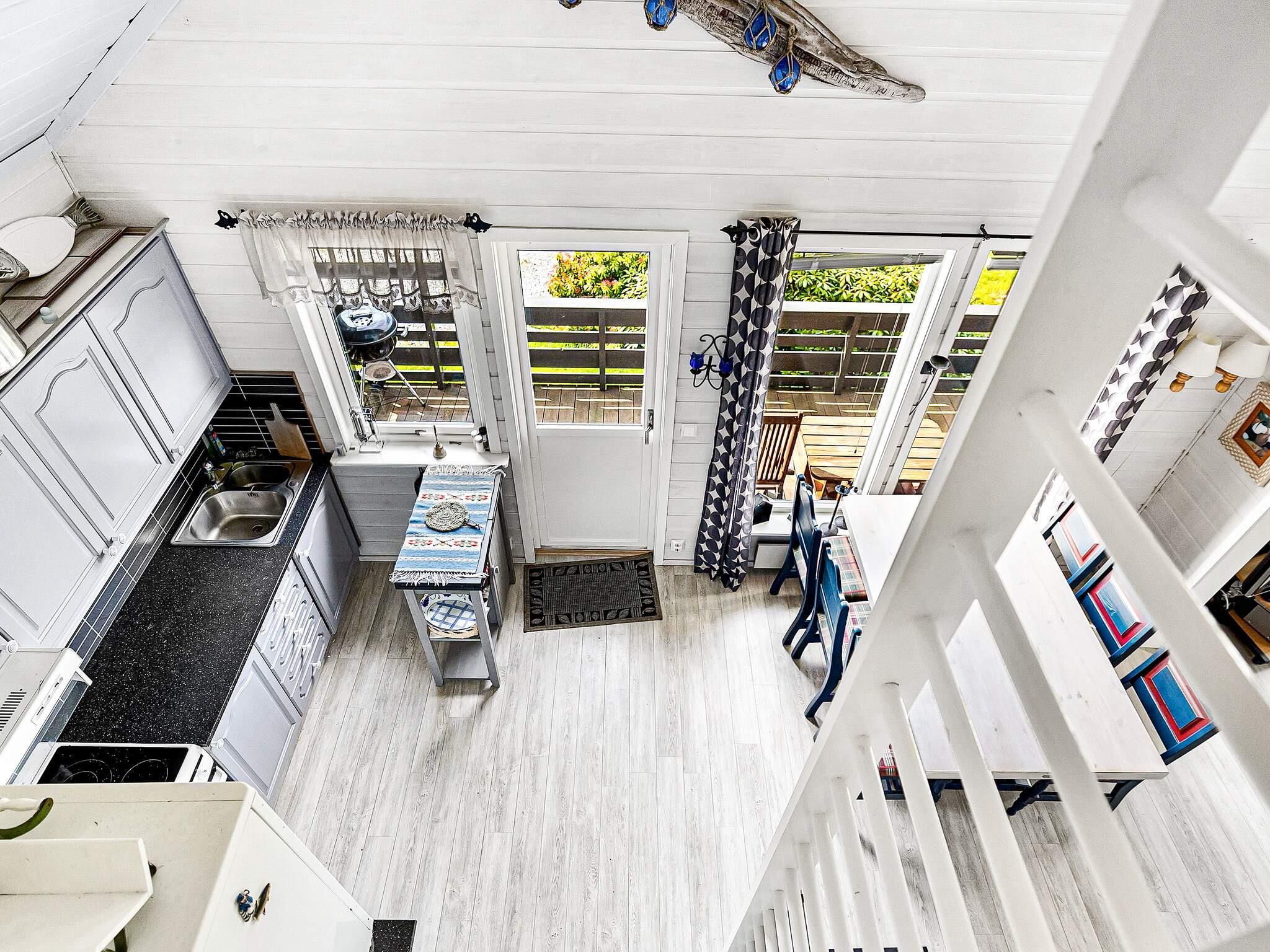 Das Wohnzimmer verfügt über eine Sitzecke sowie eine gemütliche Essecke und Küche. Vom Esstisch aus haben Sie einen schönen Blick auf den Fjord. Im Wohnzimmer gibt es TV und Internet. Satellitenschüssel, die Zugang zu deutschen und internationalen Sendern bietet.
