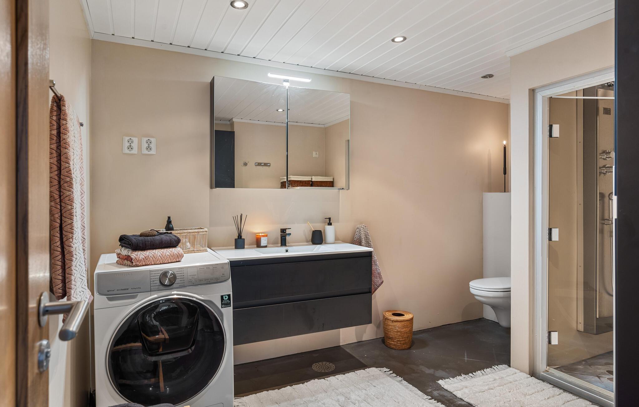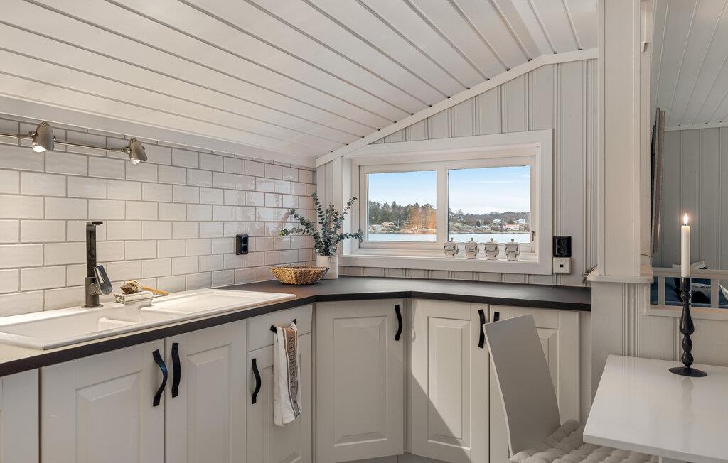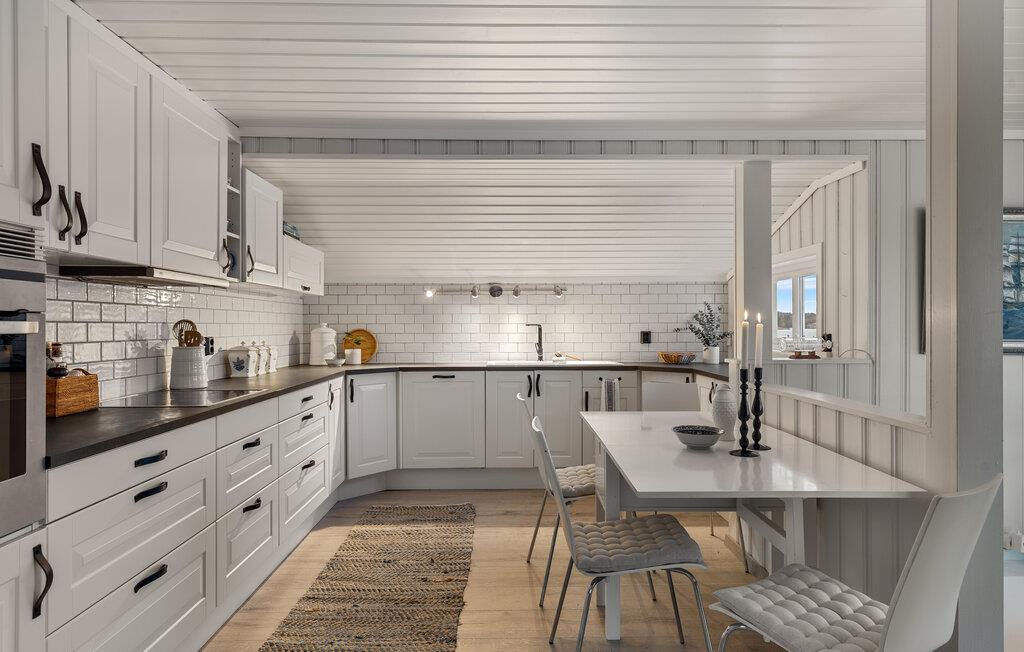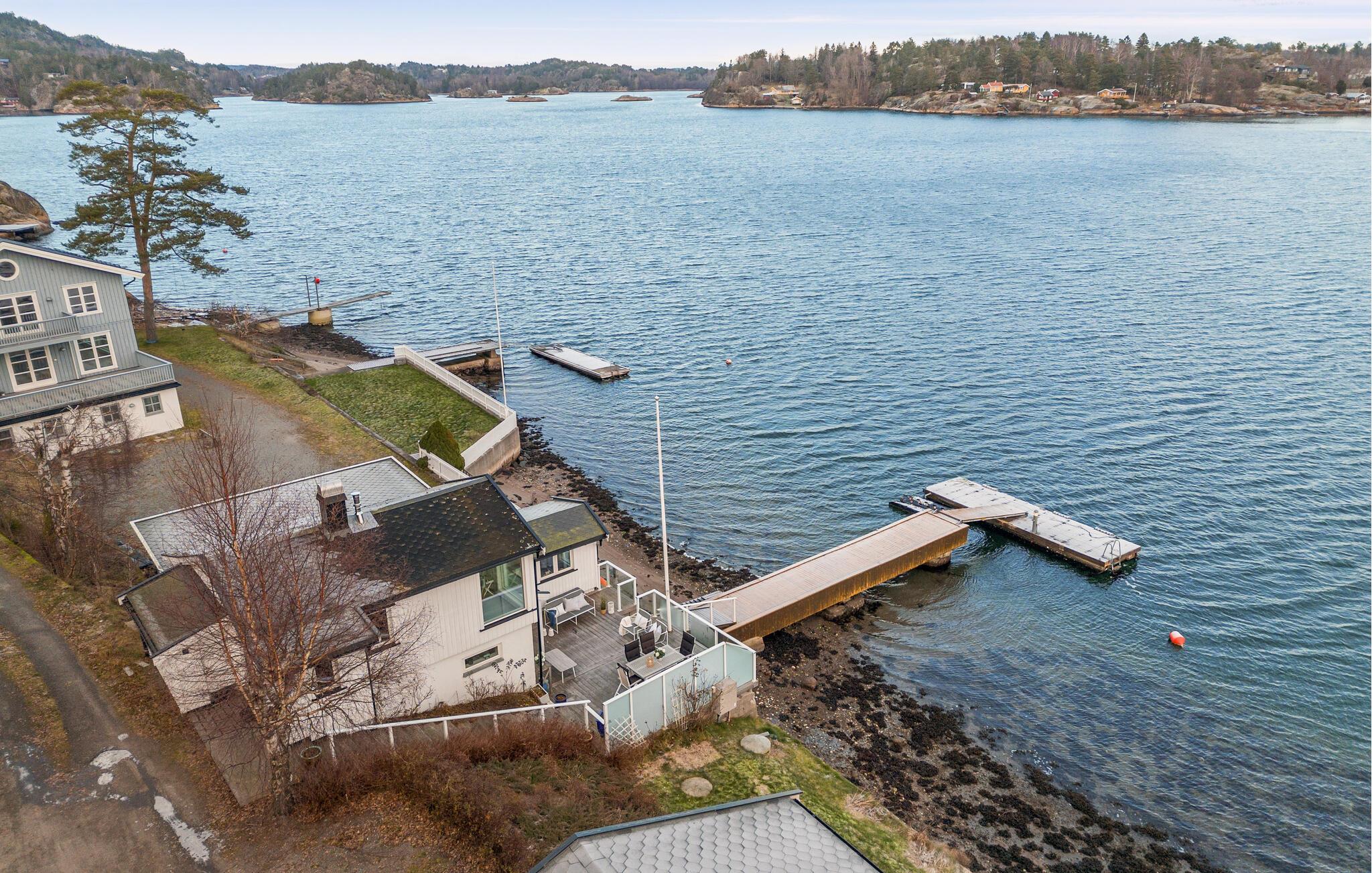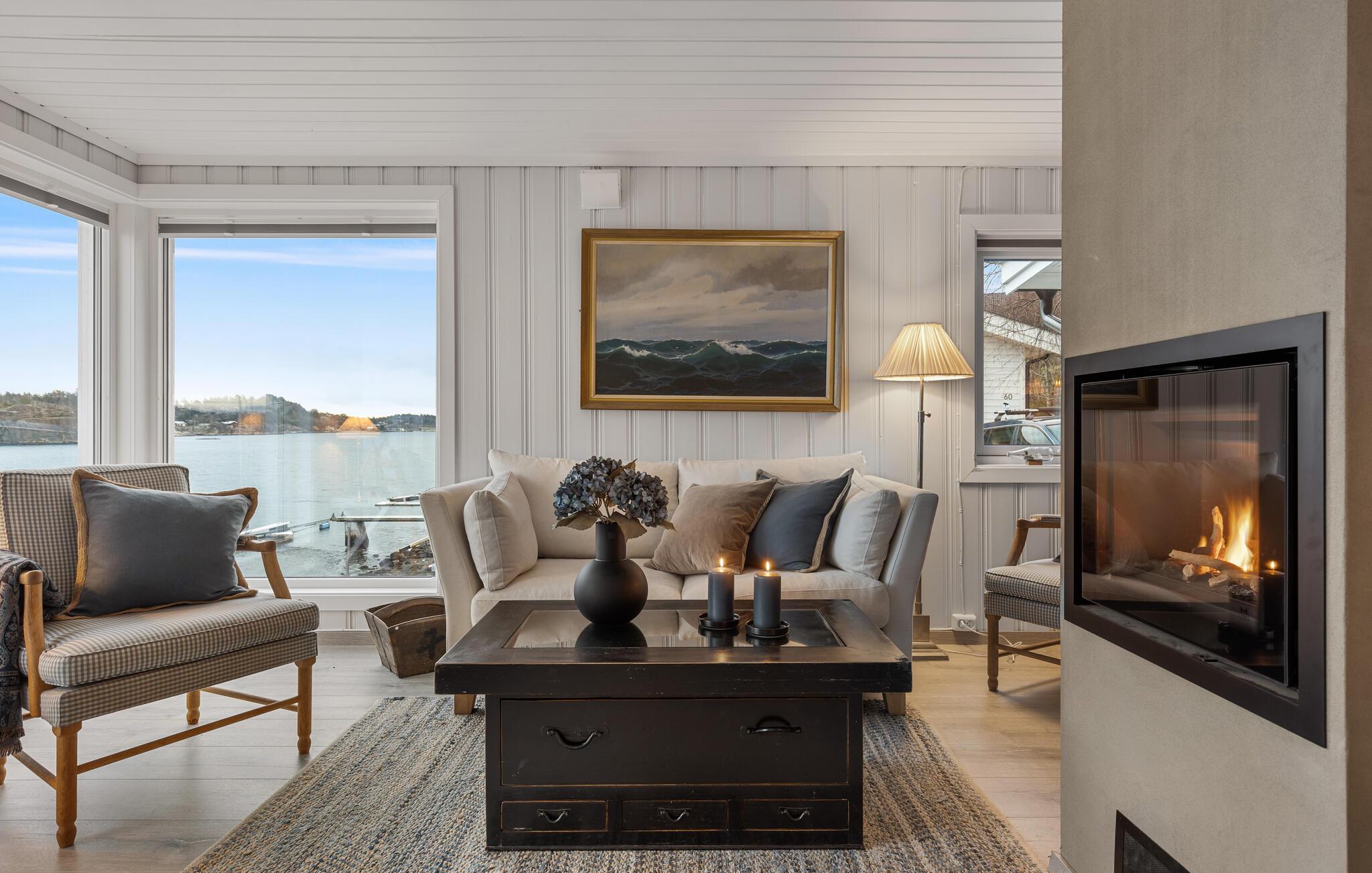 Dieses wunderschöne Ferienhaus auf Vesterøya besticht durch seine herrliche Lage mit eigener Uferlinie und Zugang zum Badesteg. Große Fenster geben Ihnen den Blick auf den glitzernden Fjord frei und füllen den offenen Wohnraum mit Licht. Ein Kamin sorgt an kühleren Tagen für eine gemütliche Atmosphäre, während die stilvolle Einrichtung und das helle Ambiente Sie willkommen heißen. Auf der Terrasse können Sie Ihre Mahlzeiten mit Blick auf das Wasser genießen oder einfach die Ruhe der Umgebung auf sich wirken lassen.