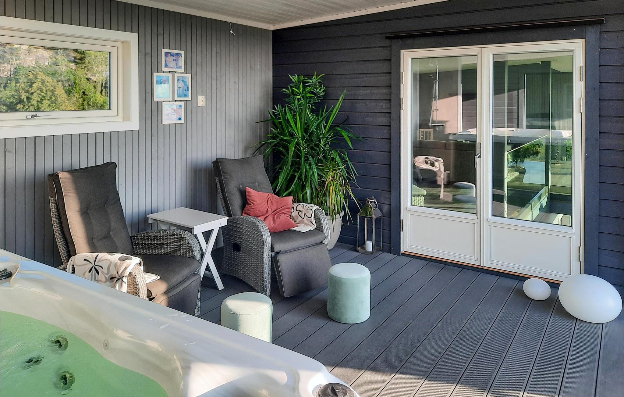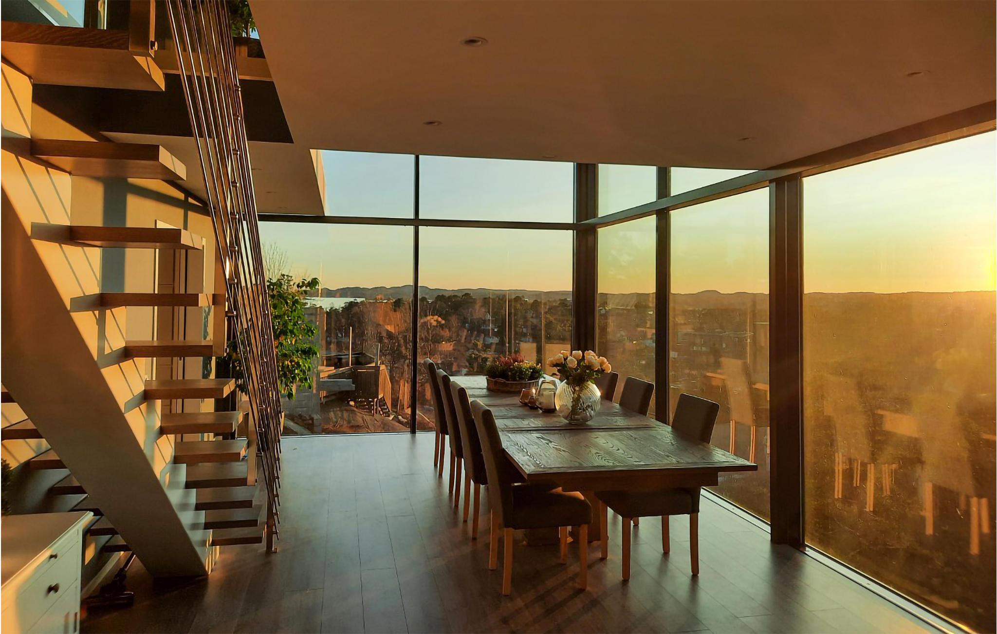 Auf der Halbinsel Vesterøy, außerhalb von Sandfjord, heißt Sie dieses großartige und geräumige Ferienhaus willkommen. Das moderne Haus erstreckt sich über mehrere Etagen und ist in einen Felsen gebaut. Große Fensterfronten geben Ihnen in fast jedem Raum einen tollen Ausblick auf die Landschaft, die Stadt und das Wasser. genießen Sie die hochwertige Einrichtung und Qualität der Ausstattung, die zur Wohlfühlatmosphäre des Hauses beiträgt. Das Entspannen auf dem Sofa und das Essen oder Spielen am Esstisch werden aufgrund der Aussicht zum Erlebnis. Für Ihr persönliches Wellnessprogramm steht Ihnen Whirlpool zur Verfügung, der Ihre Alltagssorgen vergessen lässt.