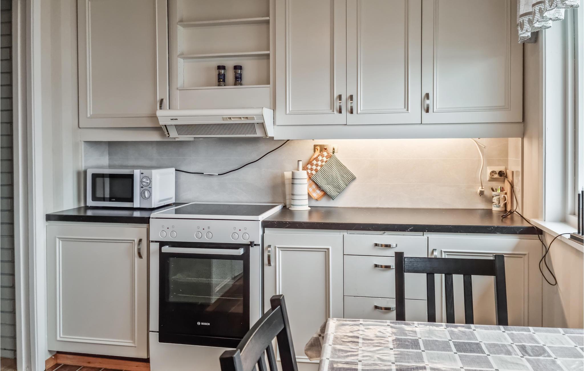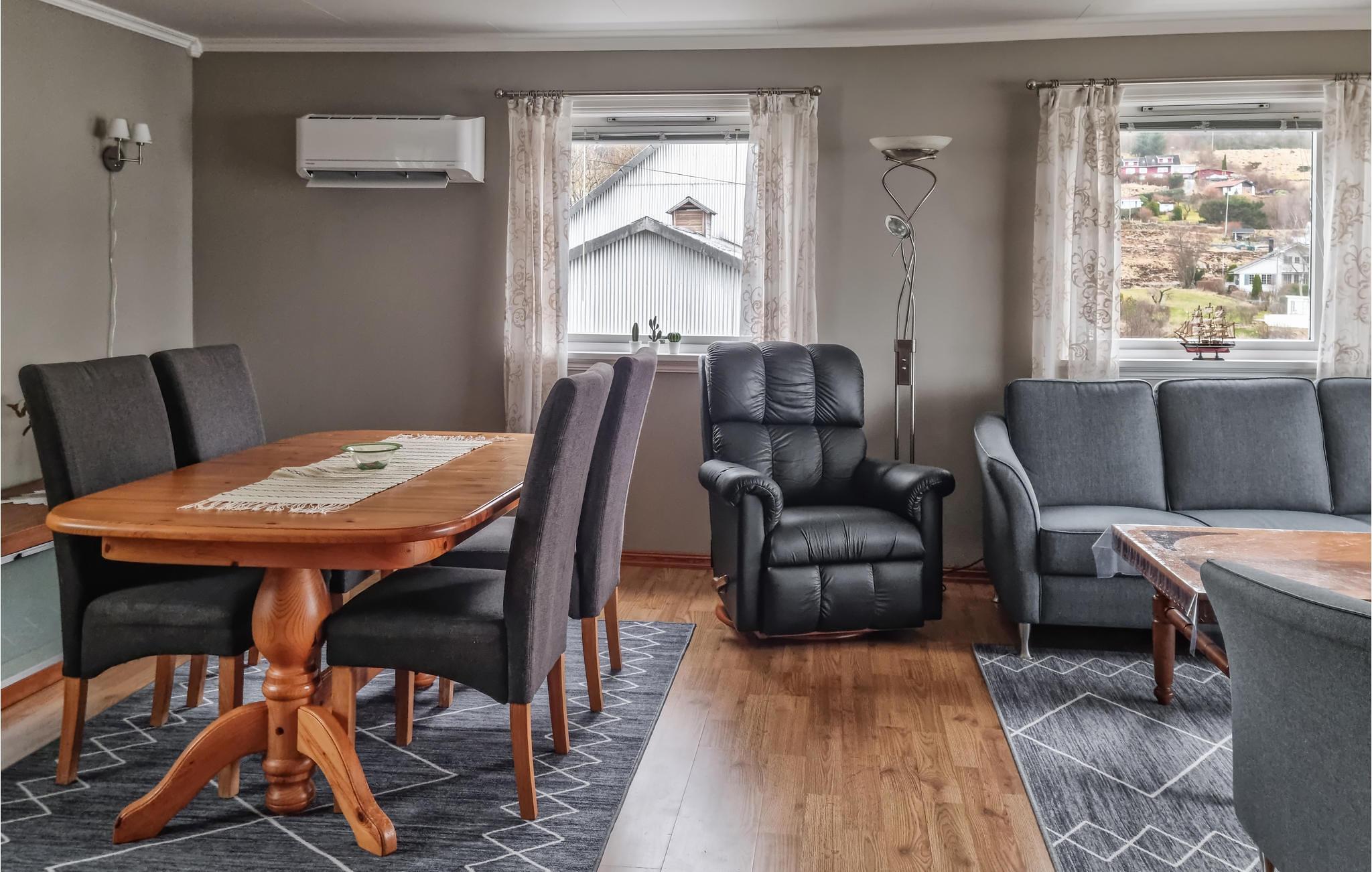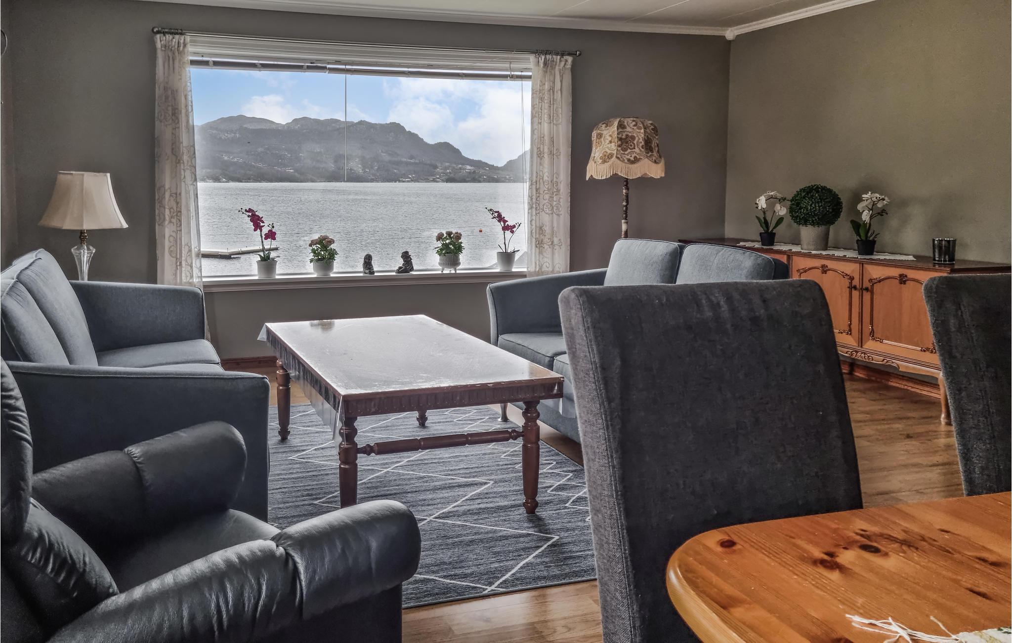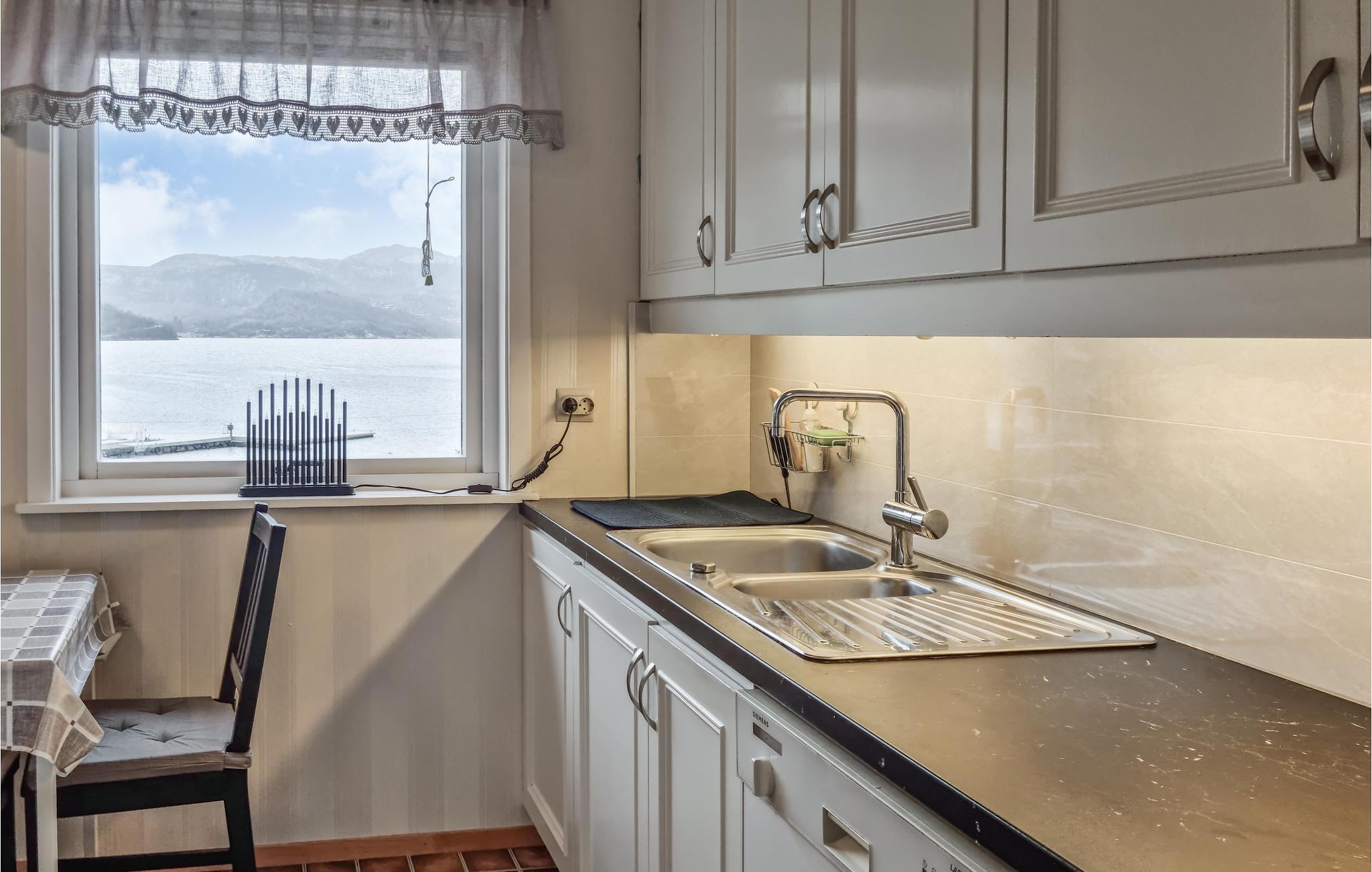 Wohnen Sie in dieser geräumigen Ferienwohnung mit toller Aussicht nahe dem Høgsfjorden. In der weißen, modernen Küche finden Sie alles, was Sie für den Kochspaß mit Kindern brauchen. Hier geht es nämlich um Familienzeit pur. Merken Sie, wie sich die Urlaubsstimmung im gemütlichen Wohnraum verbreitet. In den lauschigen Ecken können Sie einfach die Zeit mit einander genießen. Lassen Sie die Kinder auf dem gemeinsamen Grundstück spielen, während Sie das Abendessen vorbereiten und den Fang des Tages grillen. Auf der offenen Terrasse erwarten Sie herrliches Grillen, Gemütlichkeit und heiteres Plaudern. Gehen Sie nur einige Schritte und beginnen Sie Ihr Angelabenteuer oder Ihre Familien-Wandertour.