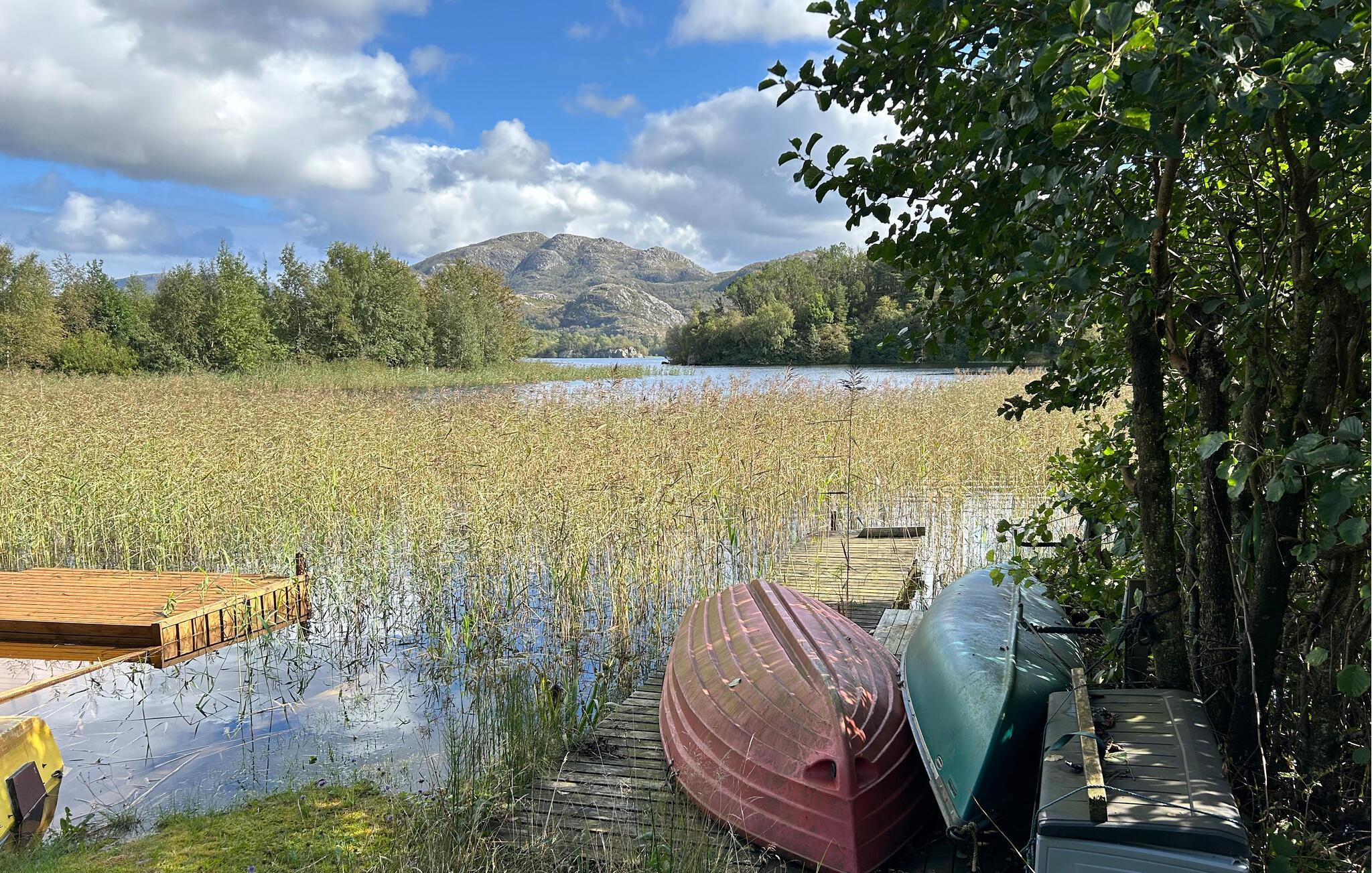 Verbringen Sie die langen Sommerabende auf der Terrasse und lassen Sie den Blick über die umliegenden Naturgebiete schweifen. Nur wenige Schritte trennen Sie vom Ufer des Storavatnet, wo Sie auch Ihr eigenes Ruderboot erwartet. Der See und das nahe gelegene Sandnes sind ein Paradies für Naturliebhaber und Outdoor-Fans. Machen Sie gemütliche Bootstouren oder angeln Sie im malerischen See. Die umliegenden Wanderwege laden zu ausgedehnten Spaziergängen und Erkundungstouren durch die unberührte Natur ein. Lassen Sie sich von der friedlichen Schönheit der Umgebung verzaubern.