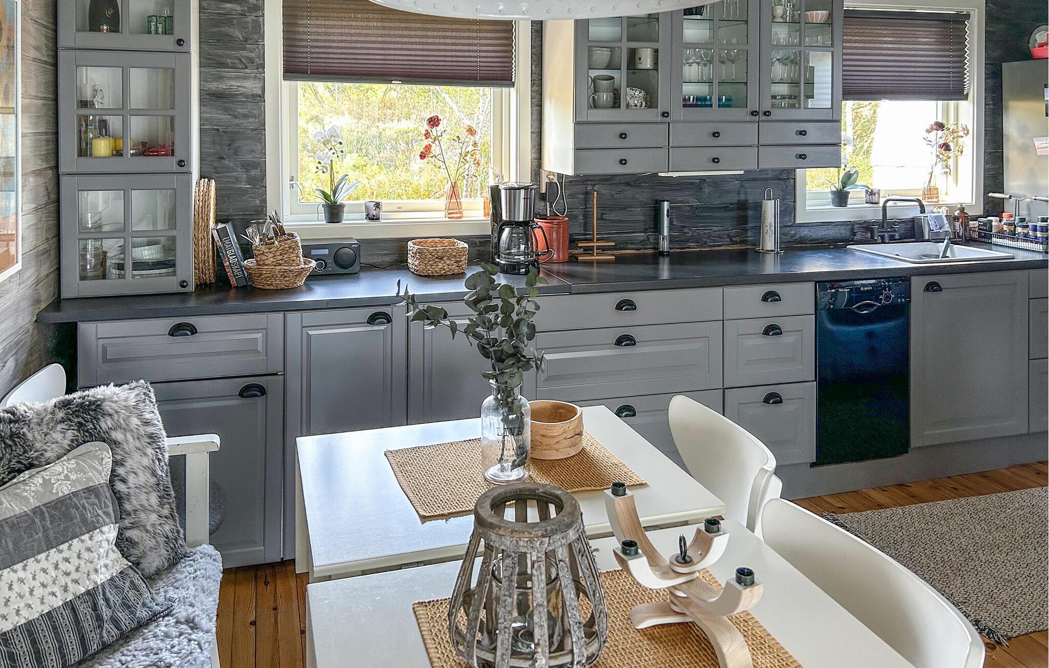 Ihr behagliches Holzhaus direkt am See Storavatnet bietet Ihnen eine warme und einladende Atmosphäre. Der gemütliche Kaminofen, die bodentiefen Fenster und die gemütliche Einrichtung schaffen ein harmonisches Ambiente. Genießen Sie entspannte Abende auf dem bequemen Sofa und den Sesseln, während Sie Filme schauen oder Gesellschaftsspiele spielen.
