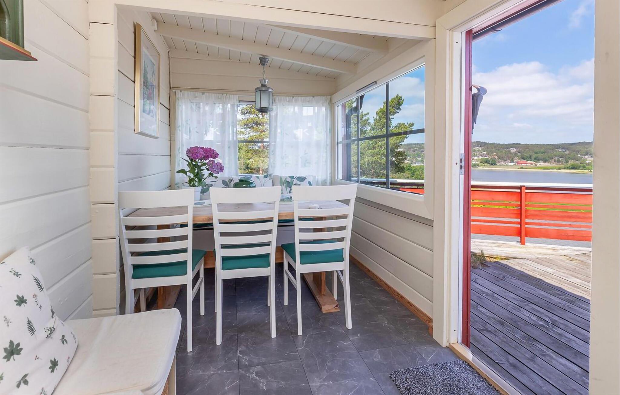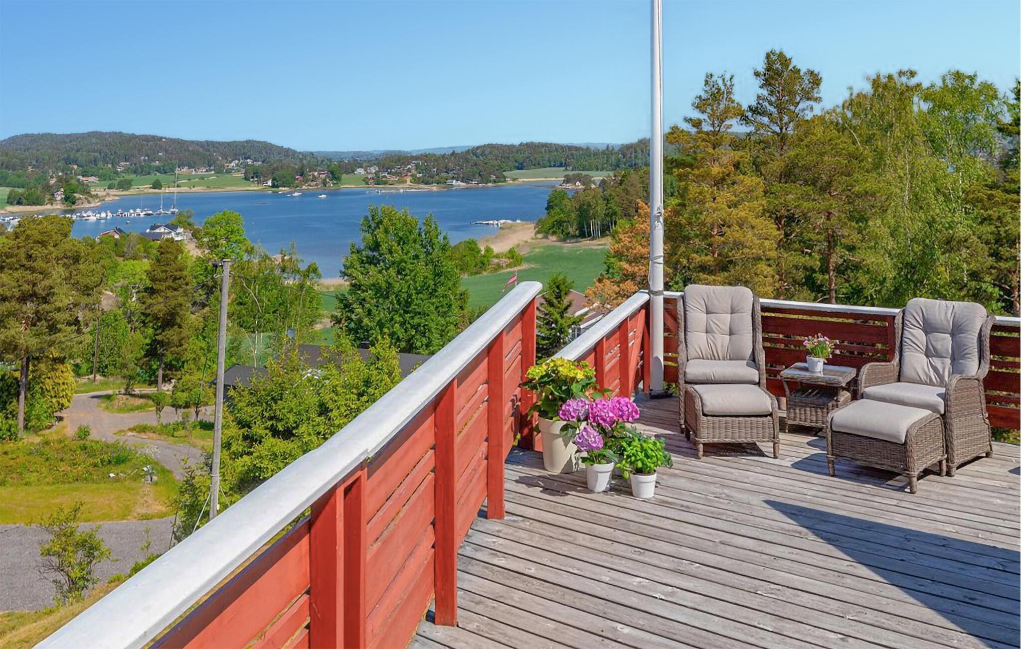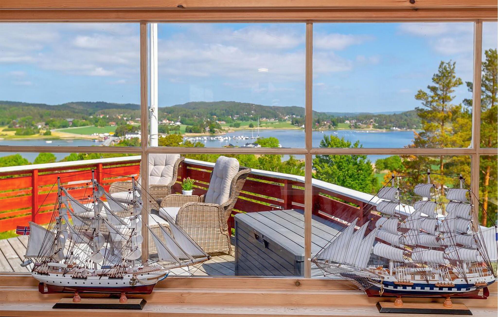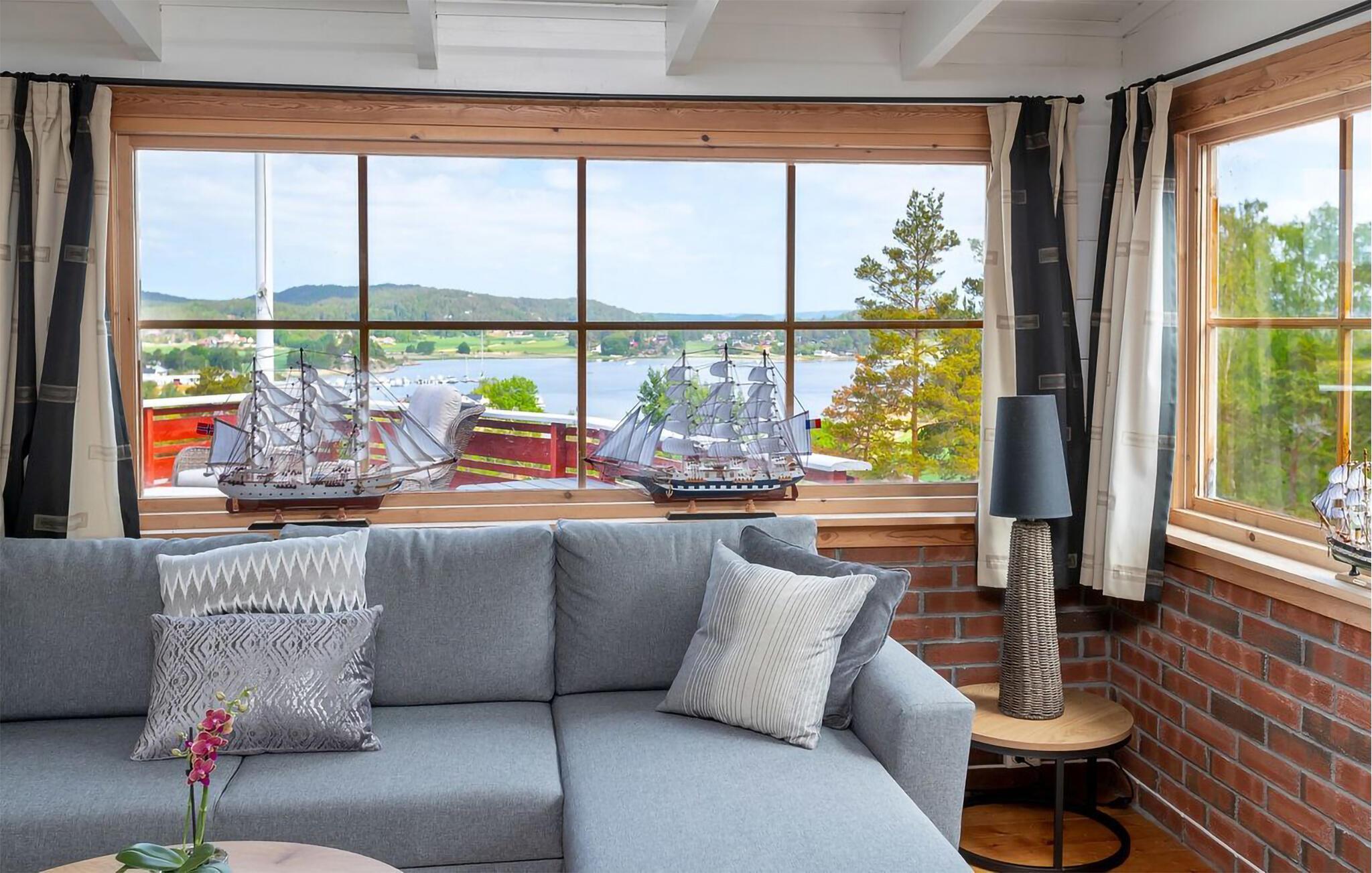 In Ihrem Ferienhaus warten Ruhe, Natur und Entspannung auf Sie. Von oben erinnert Ihr Haus ein wenig an einen Fischkutter, passend zur Nähe zum Meer. Dabei sticht insbesondere die großzügige Terrasse hervor, die einen atemberaubenden Blick auf den Fjord bietet. Beginnen Sie Ihren Tag auch hier mit einem entspannten Frühstück, während Sie den weiten Blick über das glitzernde Wasser genießen. Die frische Meeresluft und die friedliche Umgebung lassen Sie den Alltag schnell vergessen. Die Terrasse ist ideal ausgestattet, um den ganzen Tag über draußen zu verbringen, sei es beim Lesen eines Buches, bei einem geselligen Grillabend oder einfach beim Sonnenbaden.