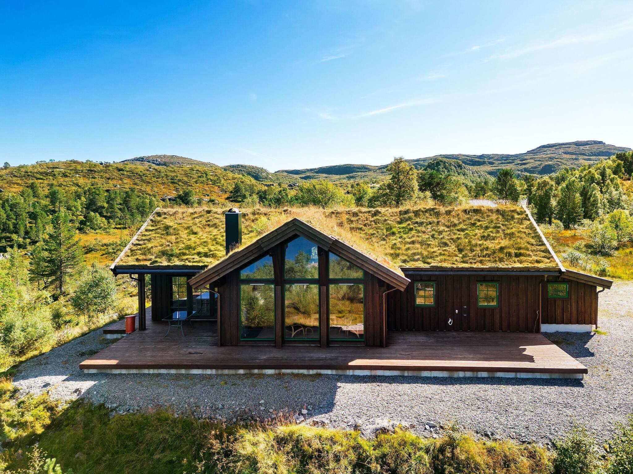 Großes und schönes Ferienhaus mit attraktiver Lage und herrlichem Blick zum nahen See Rauarvatn sowie zur Landschaft Sirdalsheiene.