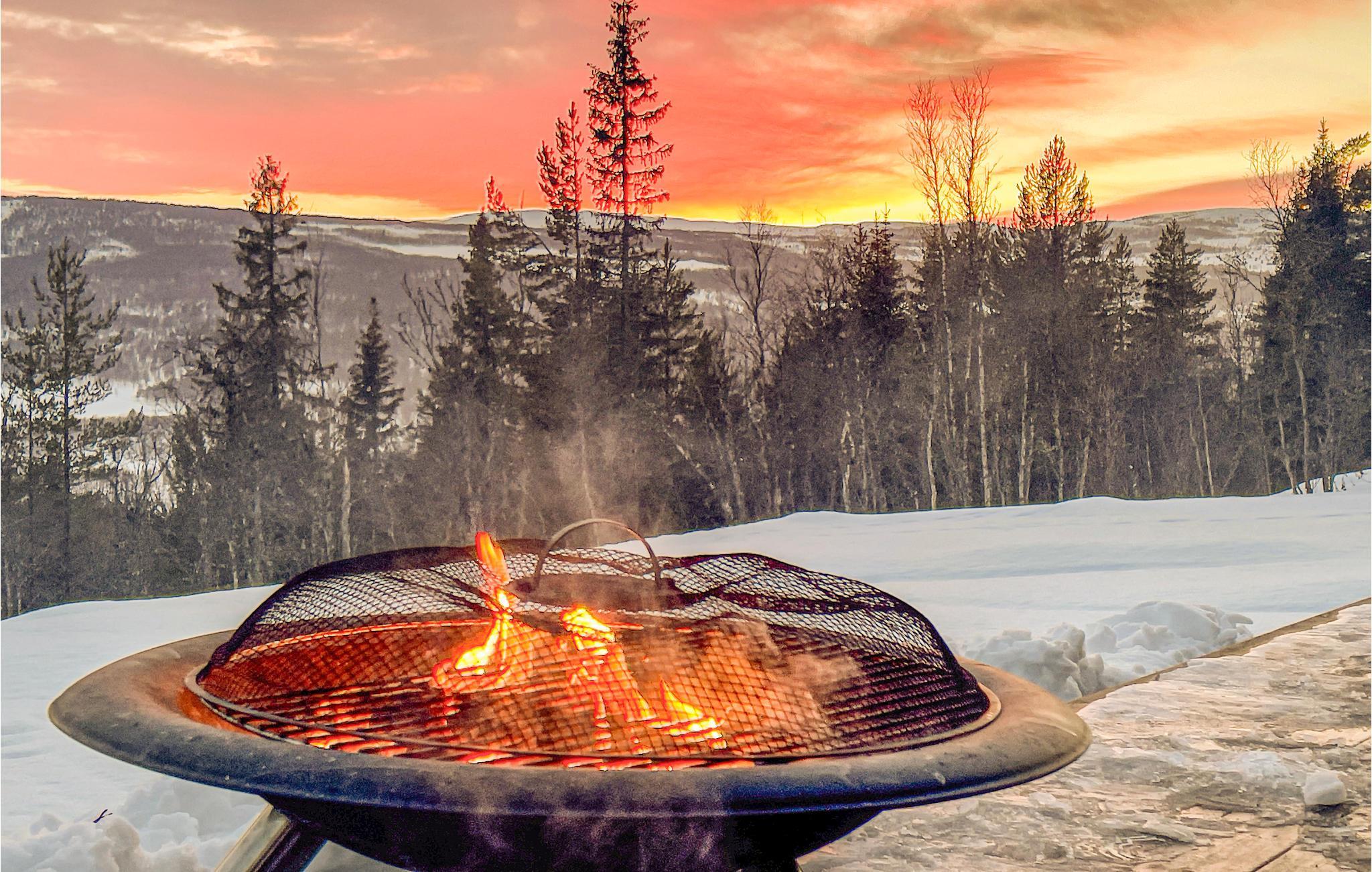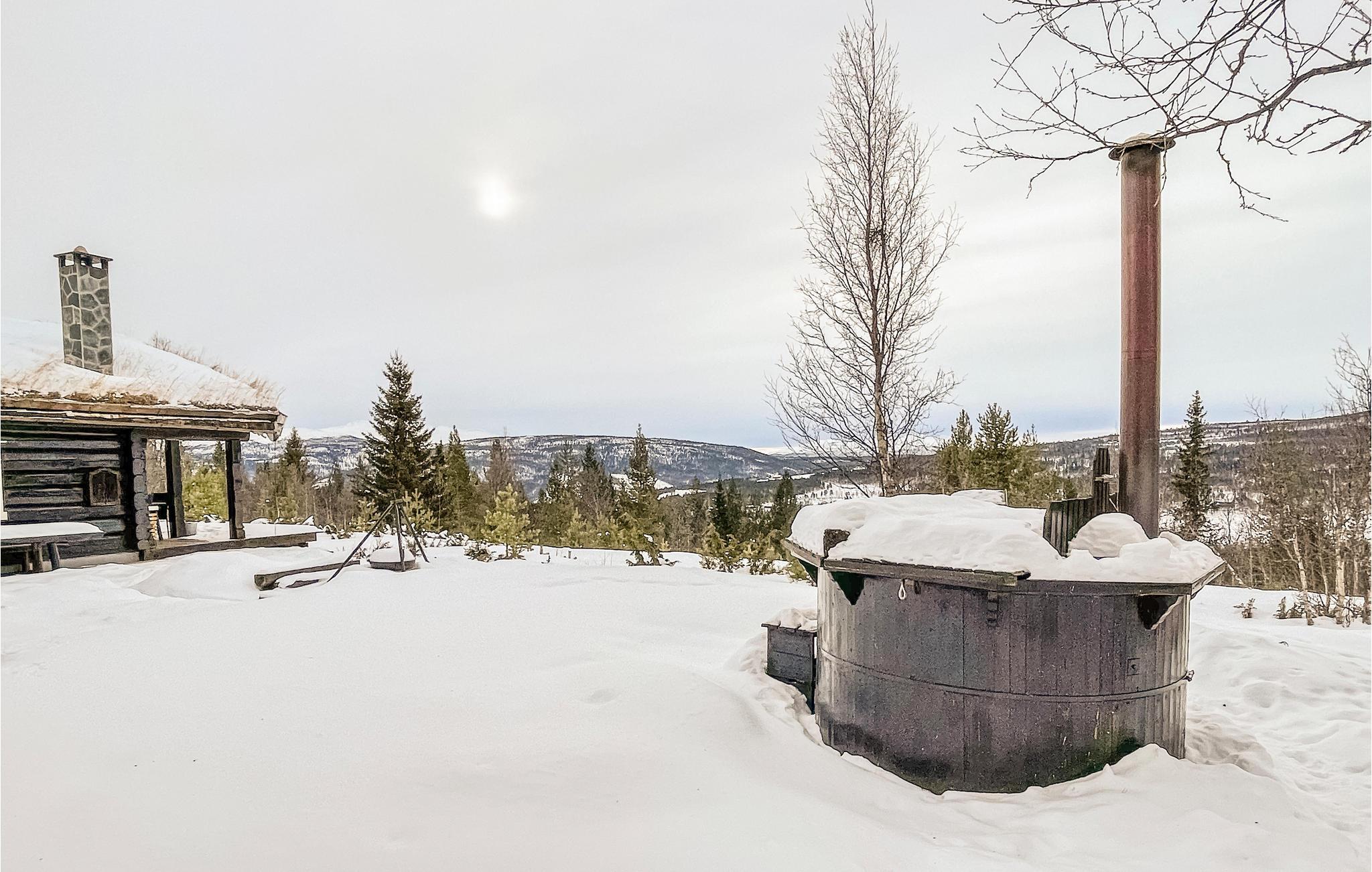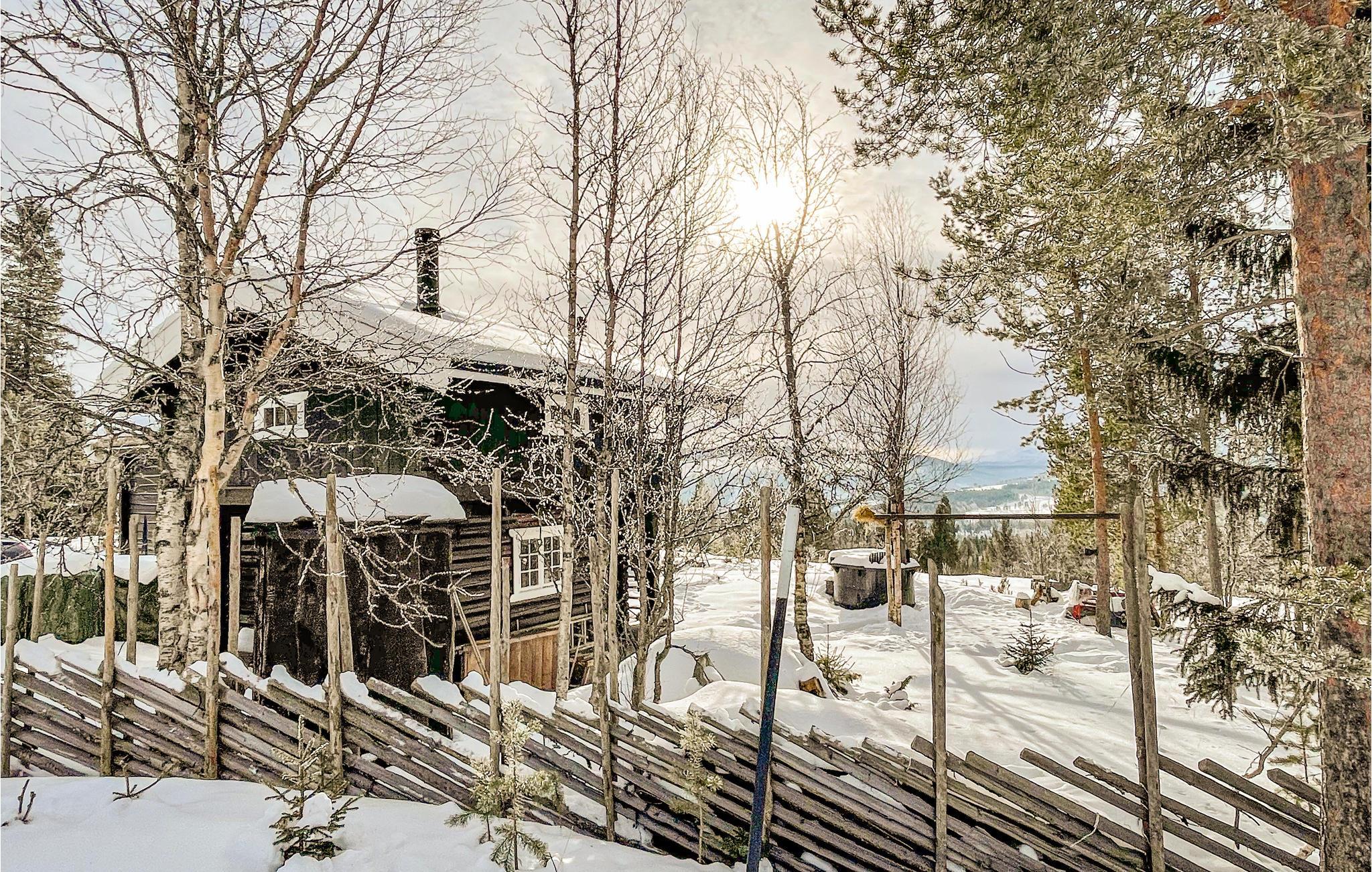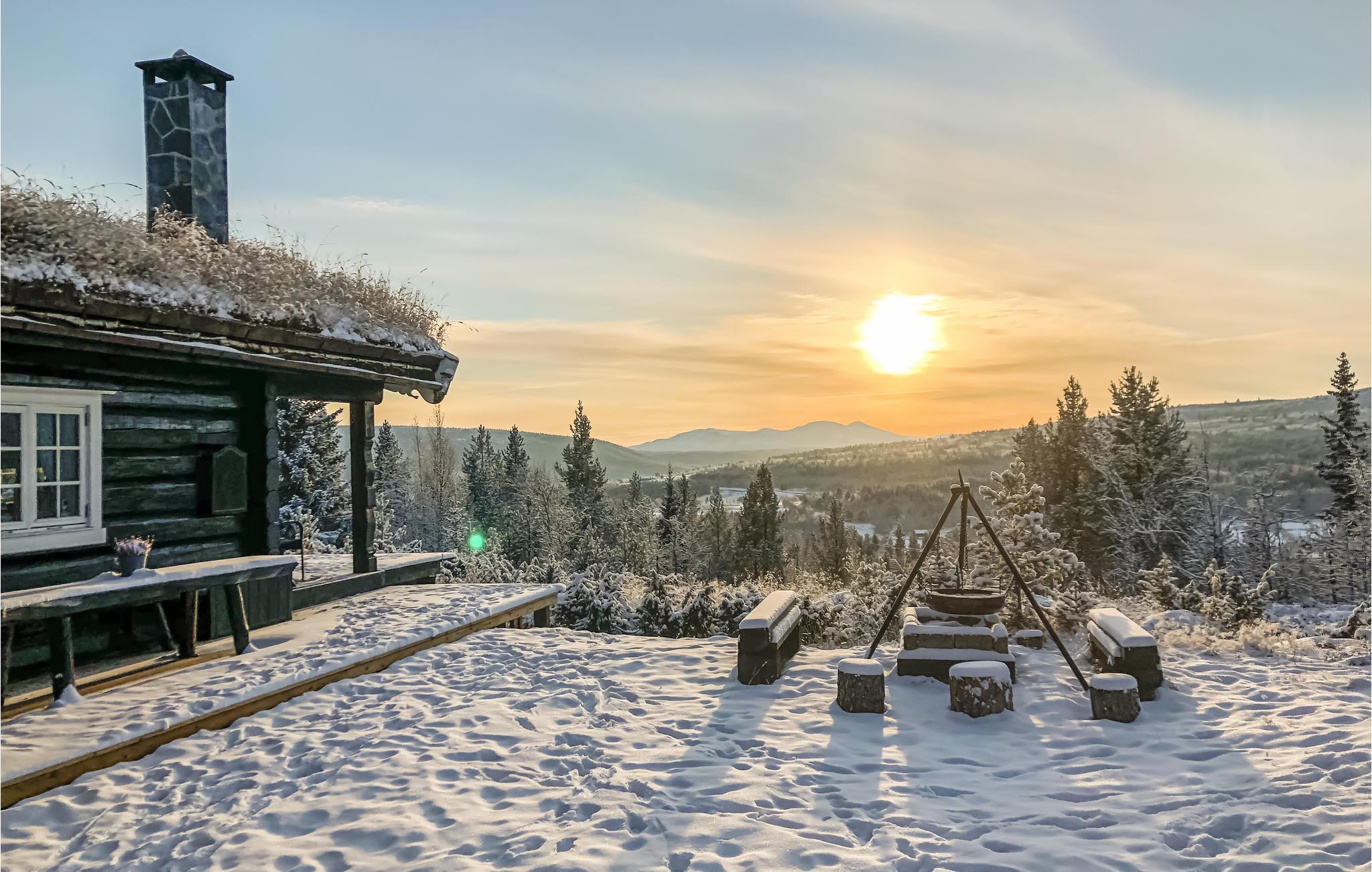 Hütte mit toller Lage in Skåbu. Mit dem holzbefeuerten Whirlpool vor der Hütte können Sie dort sowohl Sommer- als auch Winterabende genießen.