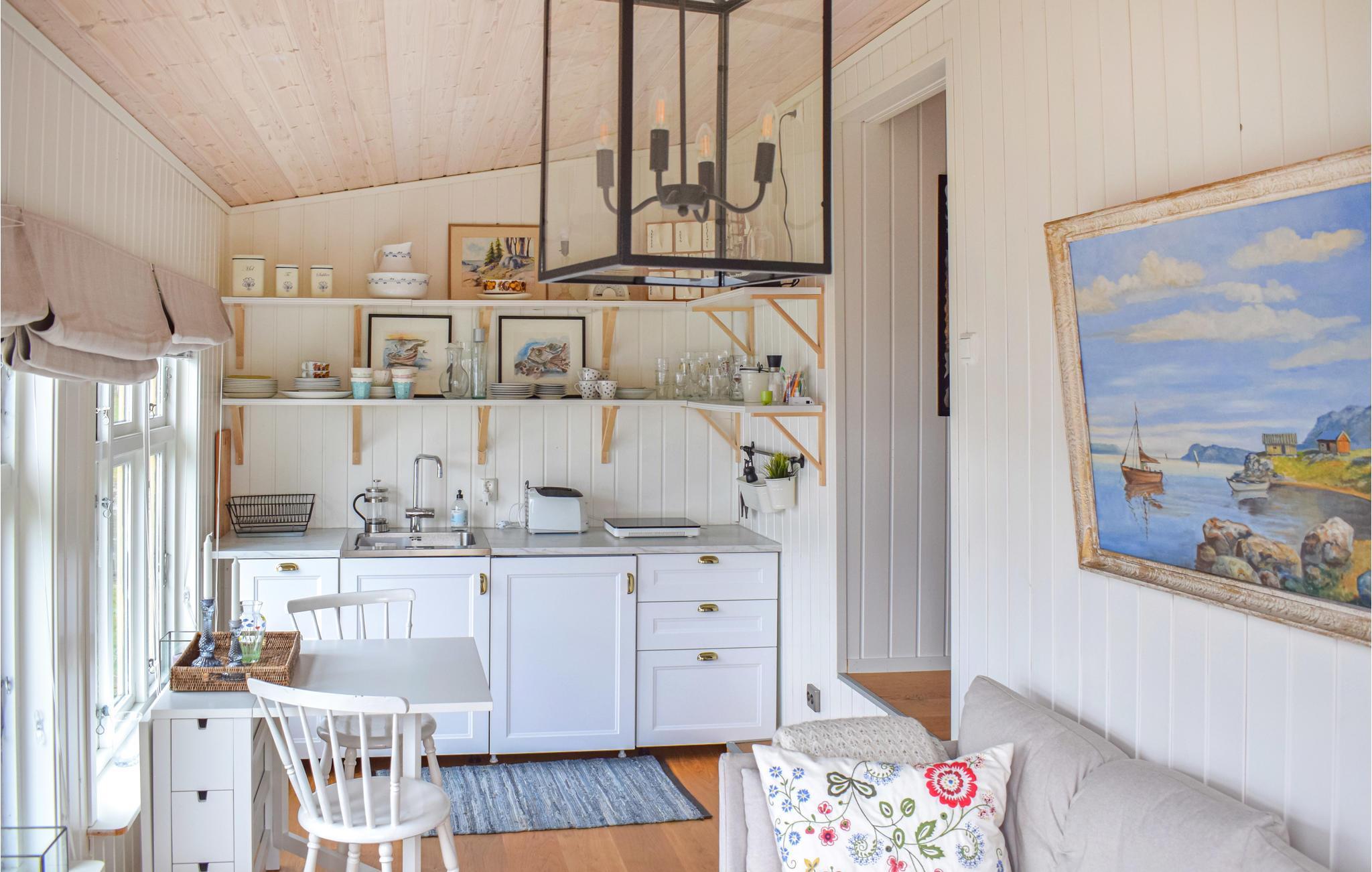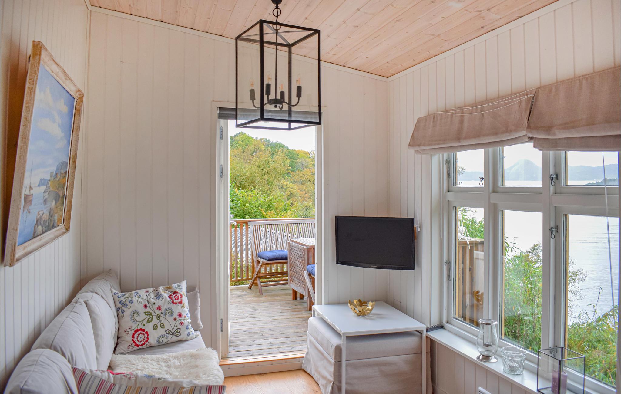 Mit einem spektakulären Wasserausblick heißt Sie diese gemütliche Hütte am Fjord willkommen. Gemeinsam mit Ihrer kleinen Familie können Sie es sich hier kuschlig machen und die umliegende Natur sowohl vom Wohnzimmer als auch von den zwei Terrassen aus genießen. Genießen Sie ein leckeres Frühstück auf die Terrassen, die auf beiden Seiten der Hütte liegen und somit ideale Sonnenbedingungen im Laufe des Tages bieten. Das Ferienhaus liegt in der ersten Reihe zum Wasser auf einem großen, eingezäunten Grundstück mit drei kleinen Ferienhäusern und einem Haupthaus. Auf dem Nachbargrundstück, das sich bis zum Fjord erstreckt, grasen Schafe. Dort gibt es einen privaten Steg und einen kleinen Sandstrand.