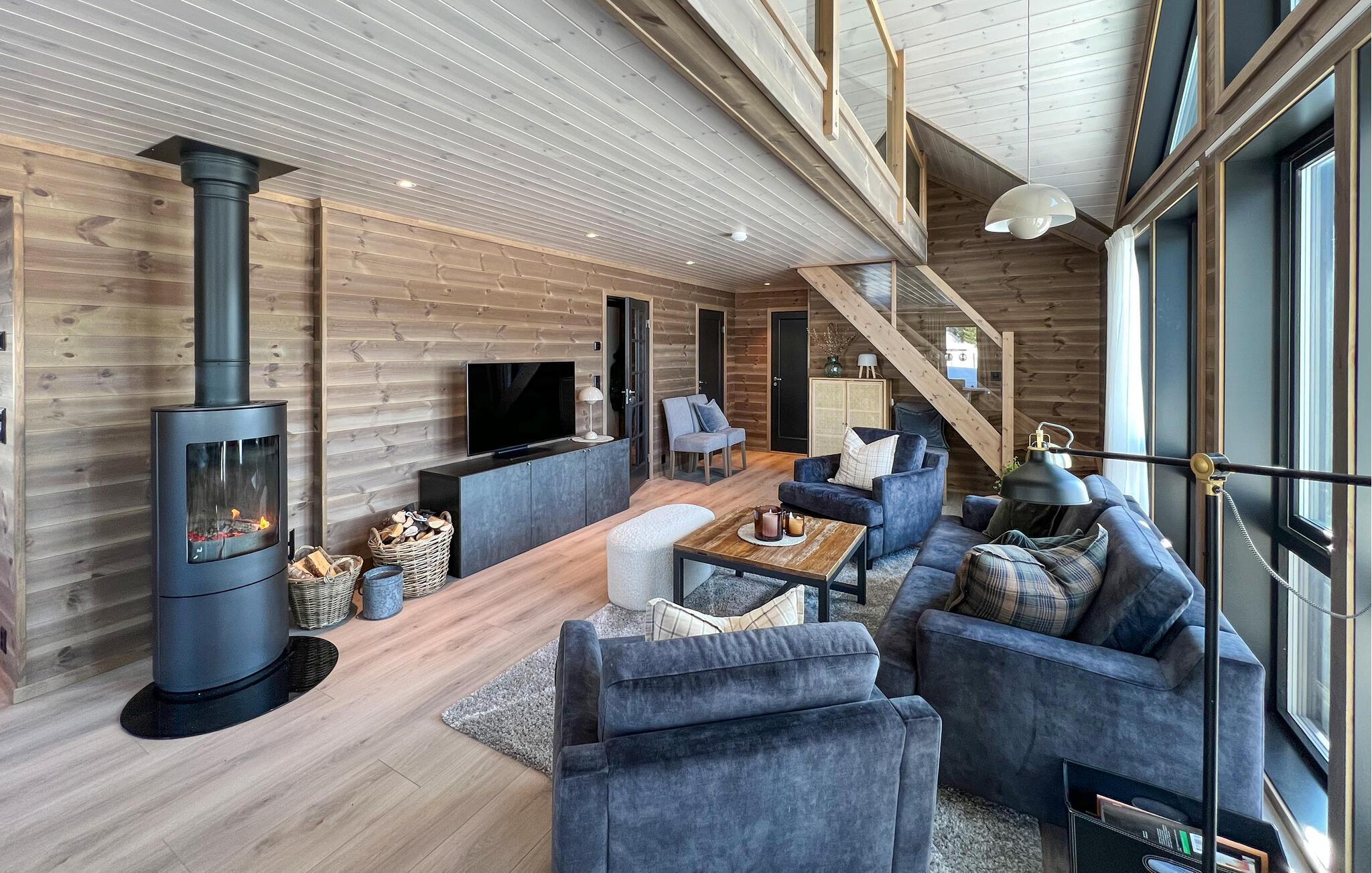Willkommen in diesem großartigen und stilvollen Ferienhaus, das Ihnen mit seinen Panoramafenstern sowie einer Galerie die besten Voraussetzungen für einen gelungenen Urlaub bietet. Fühlen Sie sich in dem modernen Ambiente wie zuhause und lassen sich auf den hochwertigen Möbeln nieder, genießen ein Feuer im Holzofen und zaubern in der tollen Küche Leckereien für die ganze Familie. Während die Erwachsenen am Abend im Wohnzimmer plaudern, können die Kinder es sich in der oberen Etage bei einem Film und Popcorn gemütlich machen und ebenfalls den Ausblick auf die Landschaft genießen.