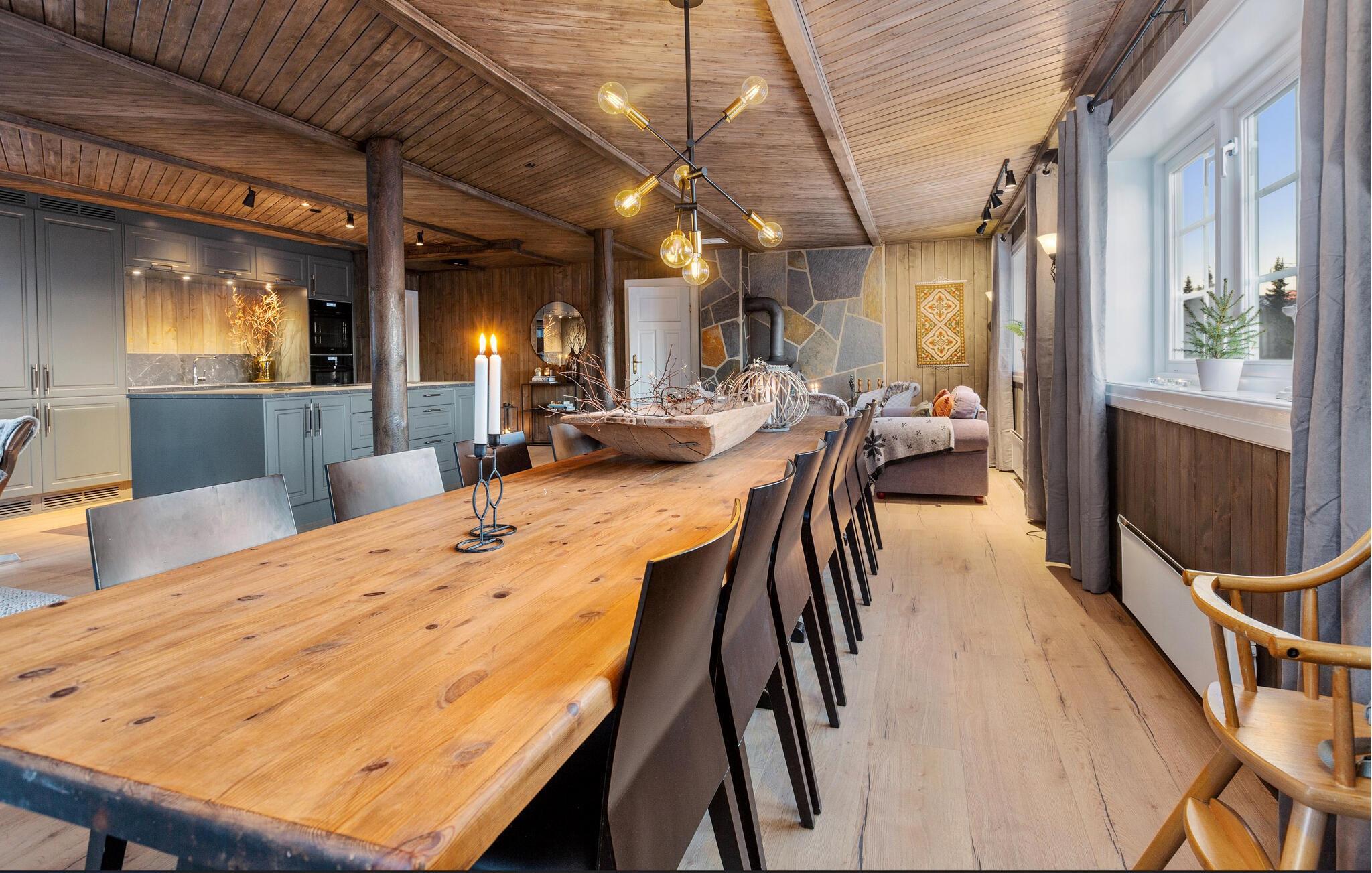 Ihr Ferienhaus in Skeikampen ist der ideale Urlaubsort für eine größere Reisegruppe. Es bietet viel Platz, zahlreiche schöne Annehmlichkeiten und ländliche Ruhe für Ihren Urlaub. Genießen Sie das gemütliche und warme Holzambiente in den Innenräumen. Lassen Sie den Alltag hinter sich und tanken Sie neue Energie in der friedlichen Umgebung. Starten Sie den Tag mit einem reichhaltigen Frühstück am langen Esstisch und unterhalten Sie sich mit den übrigen Reiseteilnehmern über die Pläne des Tages.