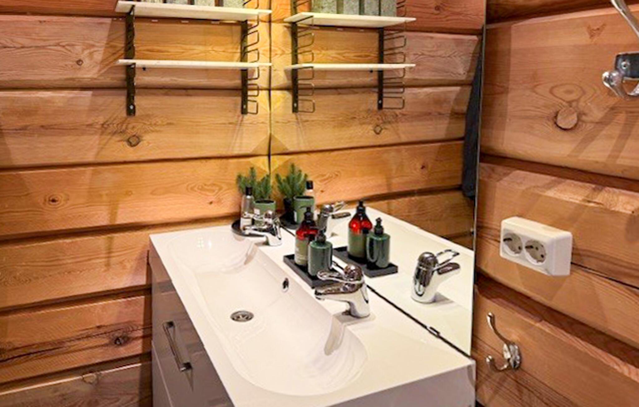 Diese Blockhütte ist wie geschaffen für eine erholsame Auszeit vom Alltag. Große Sprossenfenster lassen viel Tageslicht ins Innere, während Sie einen schönen Blick über die Landschaft genießen können. Egal ob Sie einen vergnügten Abend vor dem Fernseher verbringen, gemeinsam Brett- und Kartenspiele spielen oder bei einem Glas Wein die Ruhe genießen, hier bestimmen Sie das Tempo Ihres Tages.