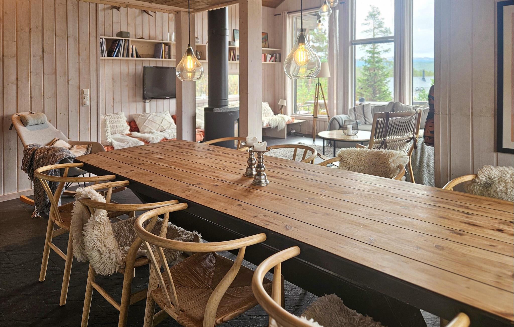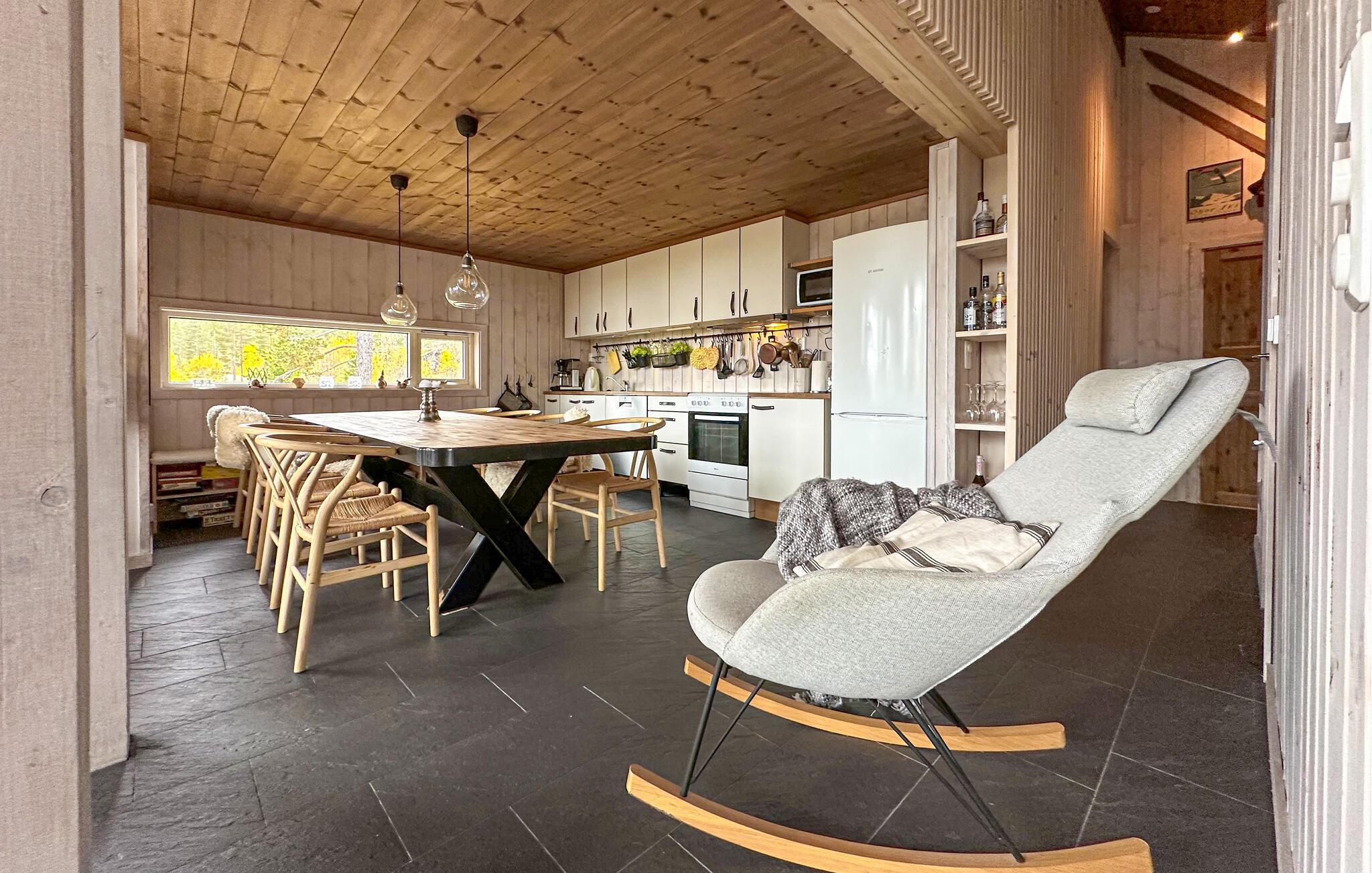Diese gemütliche und komfortabel ausgestattete Hütte begrüßt Sie in der malerischen Landschaft des Skirvedalen und ist ganz auf eine größere Gruppe von Naturliebhabern ausgerichtet. Zaubern Sie gemeinsam leckere Mahlzeiten und finden Sie an der langen Esstafel zusammen. Legen Sie nach einer langen Wanderung die müden Füße auf dem Lesesessel hoch, lauschen Sie dem leisen Knistern des Kaminofens oder versammeln Sie sich für einen gemütlichen Filmabend auf der großen Sofalandschaft.