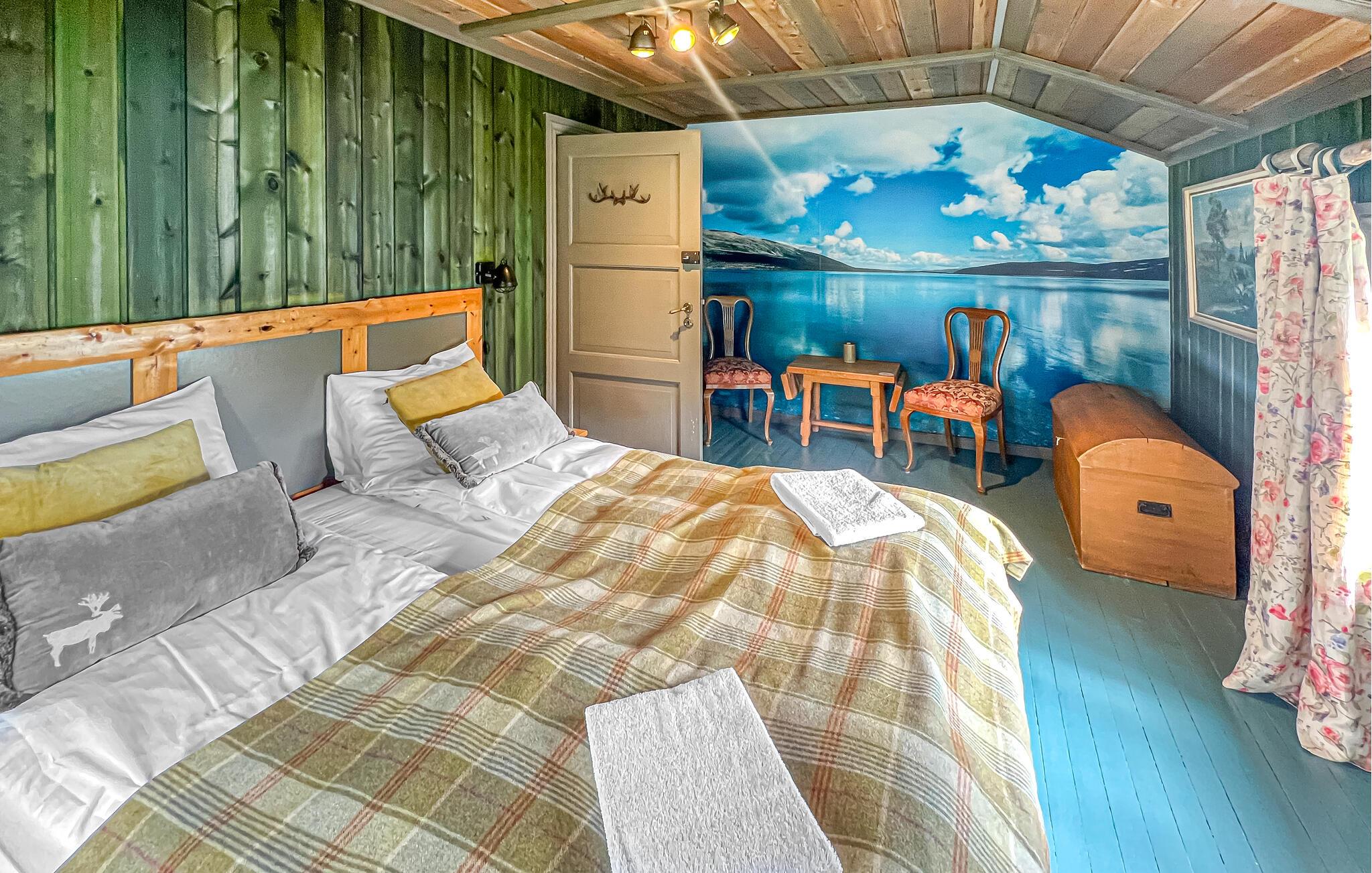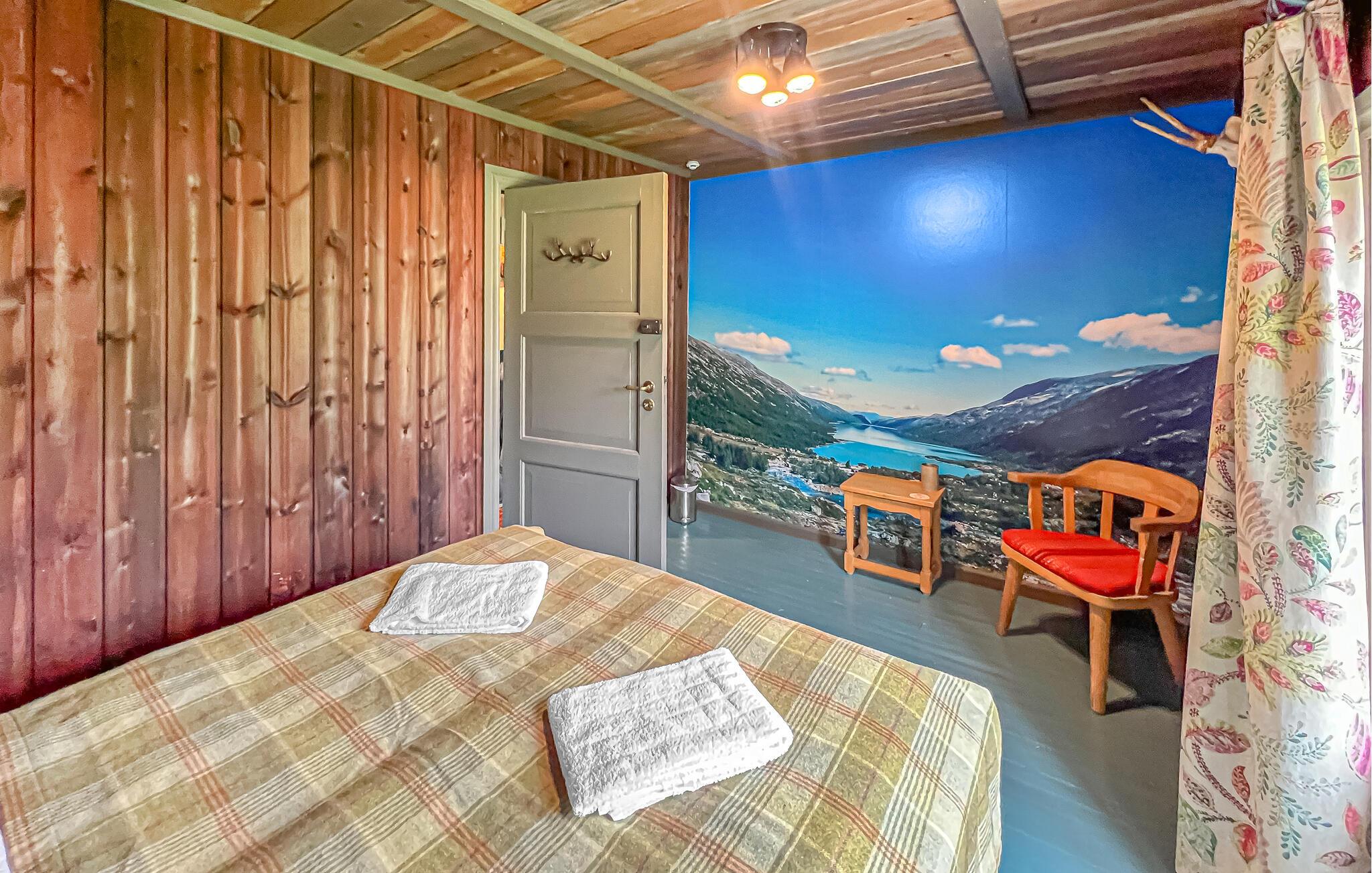 Treten Sie morgens mit einem duftenden Kaffee vors Haus und genießen Sie den fantastischen Blick auf das Wasser sowie die Wälder und Berge jenseits des Ufers. Nehmen Sie auf der Terrasse Platz und stärken Sie sich mit einem Frühstück, bevor Sie zu Ihren Aktivitäten aufbrechen. Genießen Sie in der holzbefeuerten Sauna direkt am Wasser wohlige Wärme und absolute Entspannung und tauchen Sie anschließend ins kühle Nass des Heggebottvatnet ein.