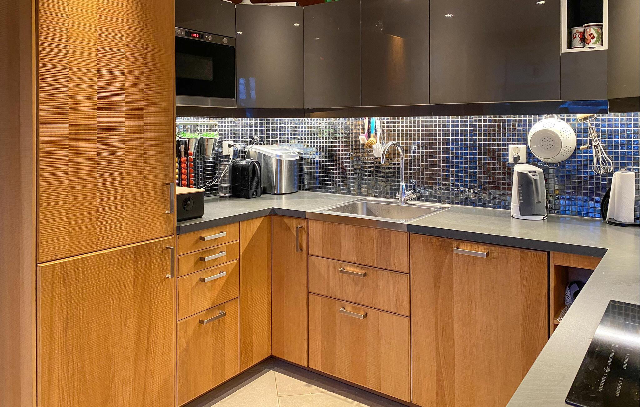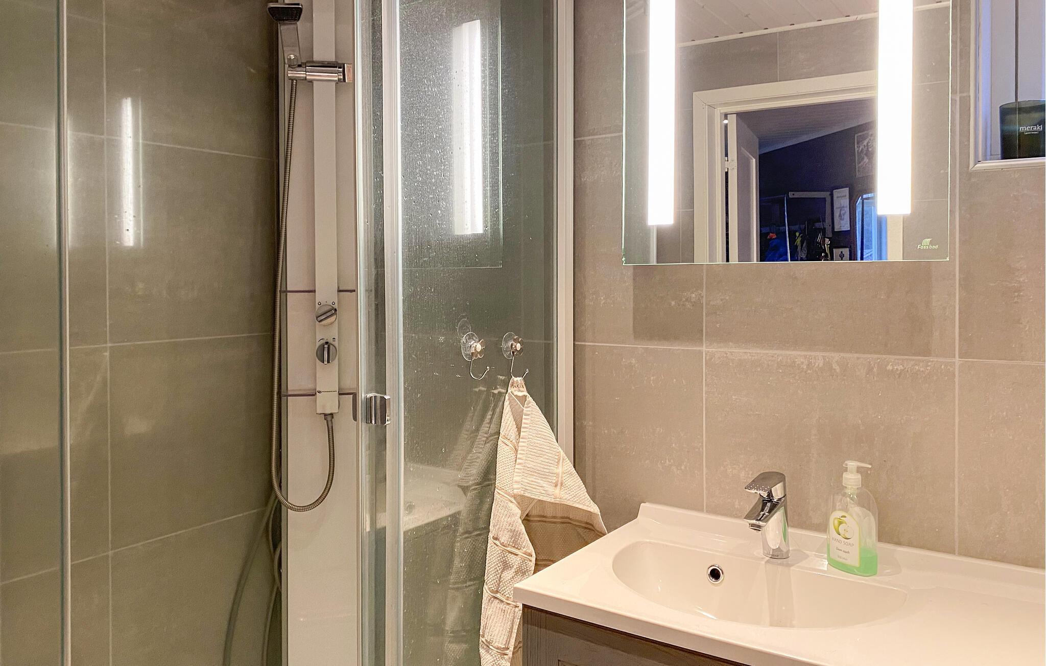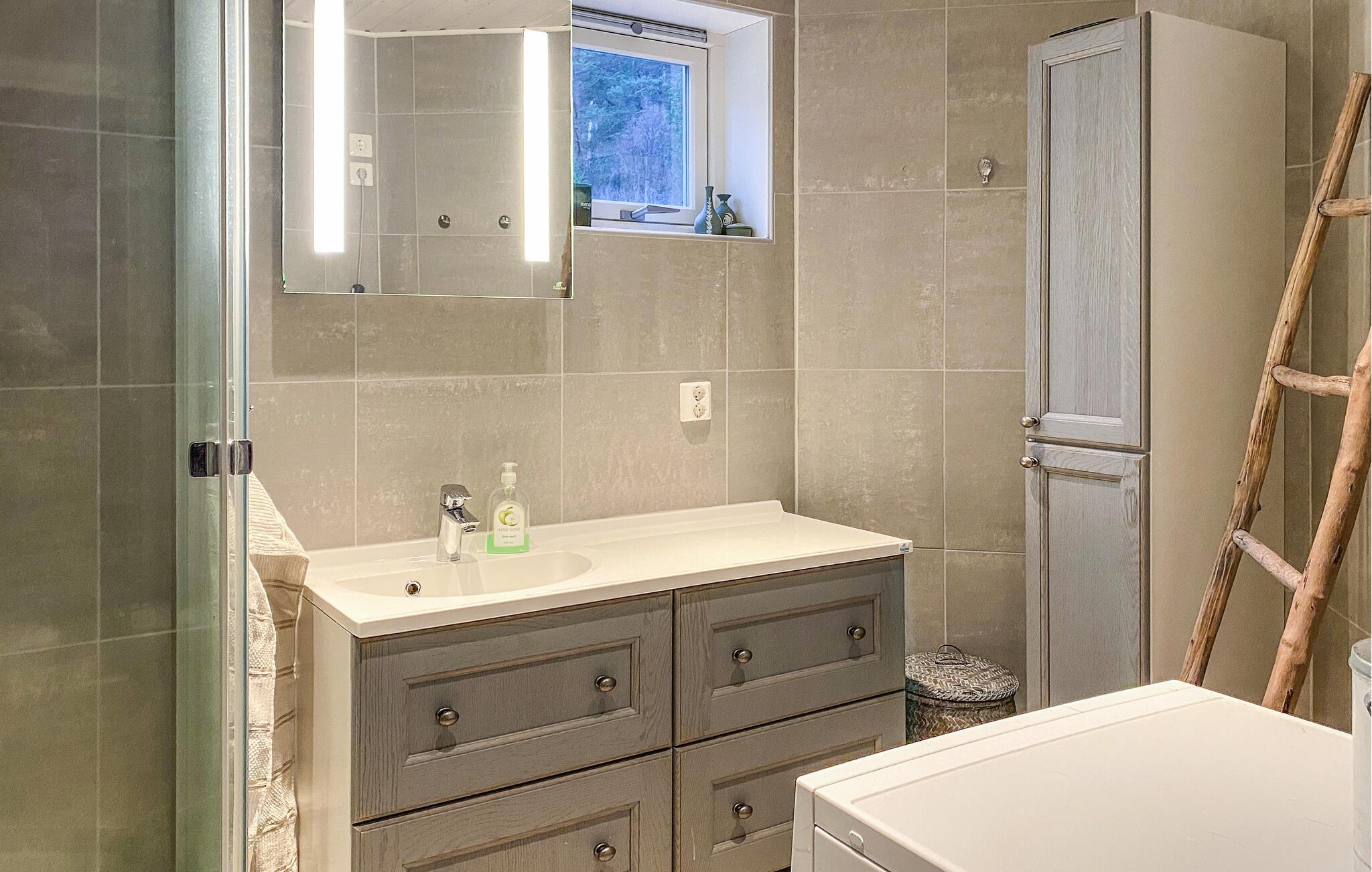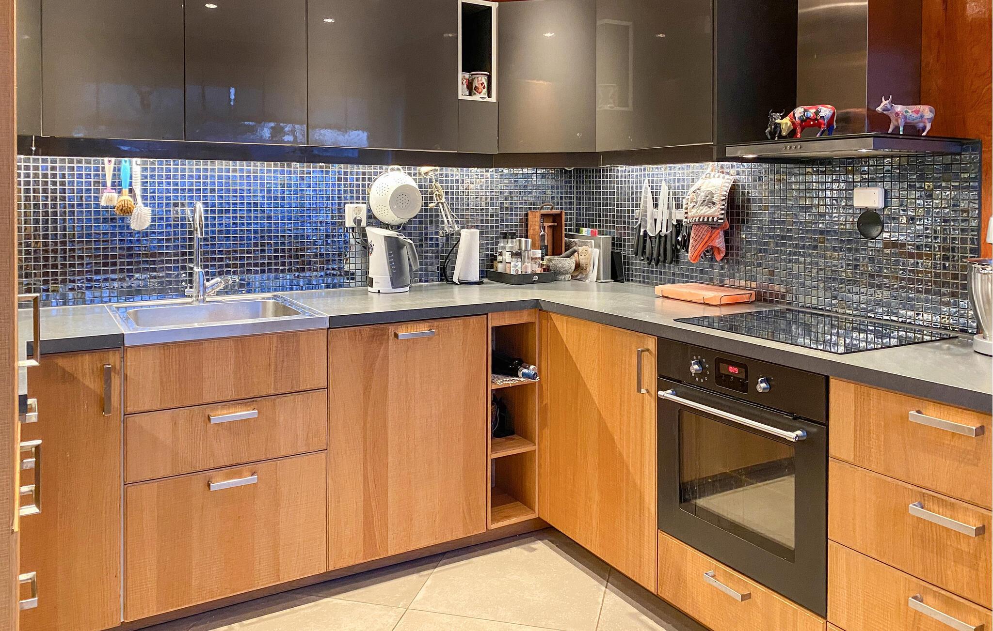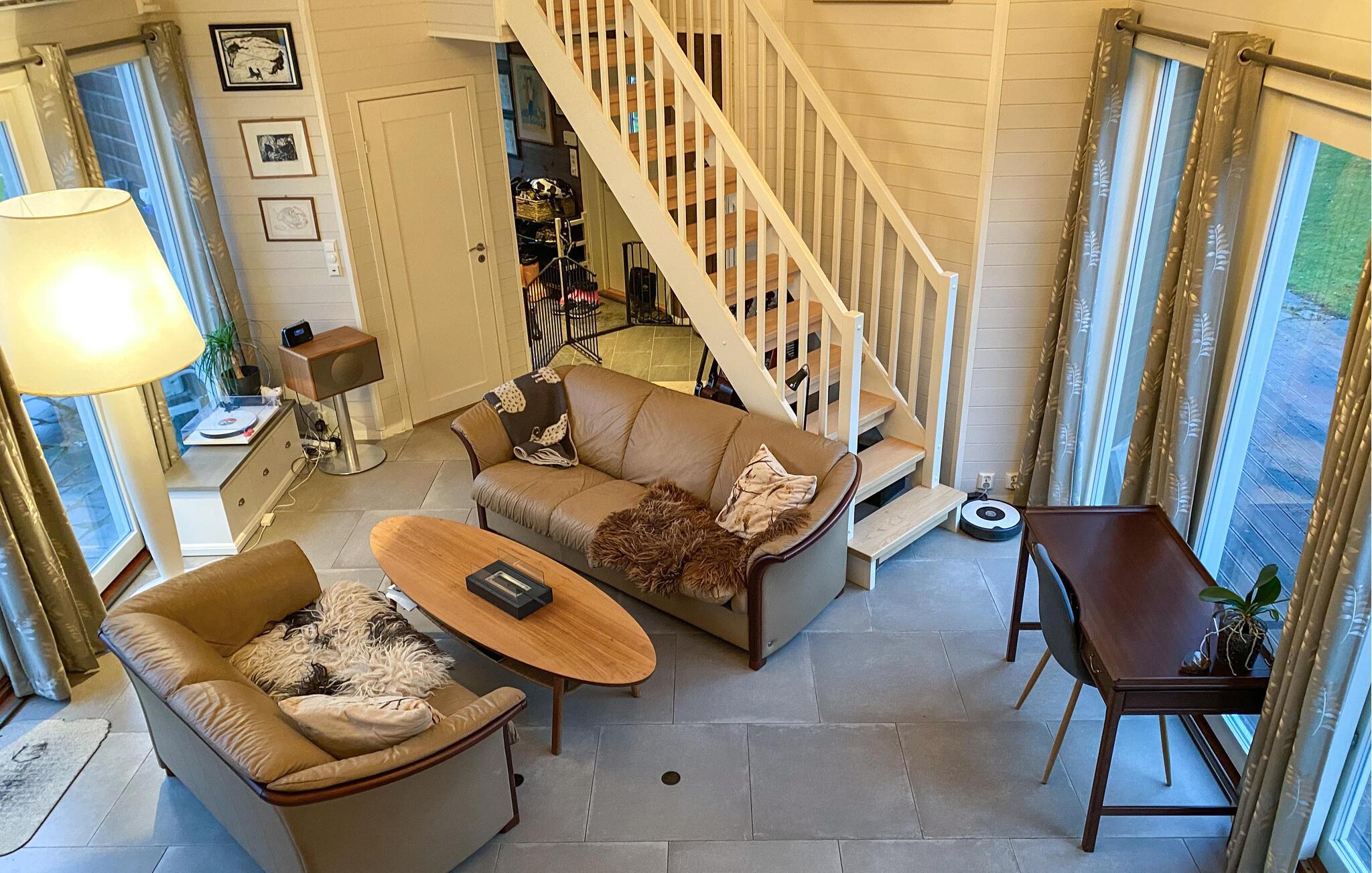 Mit einem traumhaften Blick auf die Berge und den Fjord lädt dieses großzügige Feriendomizil dazu ein, zur Ruhe zu kommen und sich vom Alltag zu erholen. Setzen Sie sich mit einem frisch gebrühten Kaffee ans Panoramafenster der behaglichen Küche und lassen Sie den Blick über die beeindruckende Landschaft schweifen. Entspannen Sie im gemütlichen Wohnzimmer, schauen Sie einen Film oder genießen Sie die wohlige Atmosphäre bei einem Glas Wein oder einer spannenden Lektüre.