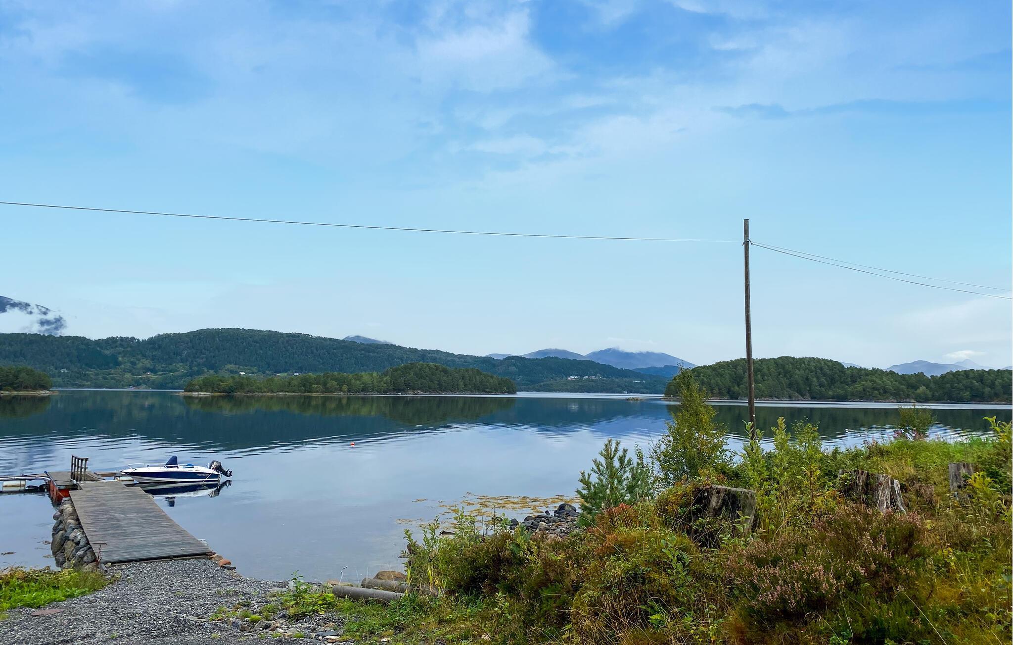 Treten Sie hinaus auf die einladende Holzterrasse, um die klare Fjordluft zu genießen. Unternehmen Sie entspannte Spaziergänge, starten Sie eine Kajaktour direkt vom nahegelegenen Steg oder lassen Sie den Tag bei einem stimmungsvollen Grillabend mit Blick auf die majestätischen Berge ausklingen.