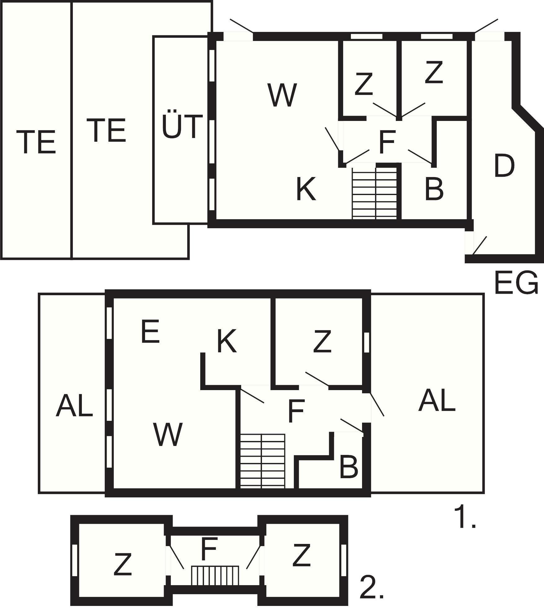 Off. Küche: Hochstuhl, E-Herd, Kühlschr., Mikrow., Gefriertruhe über 250 l., Abzugsh., Spülm., Waschm., Trockenschrank, Kaffeem.