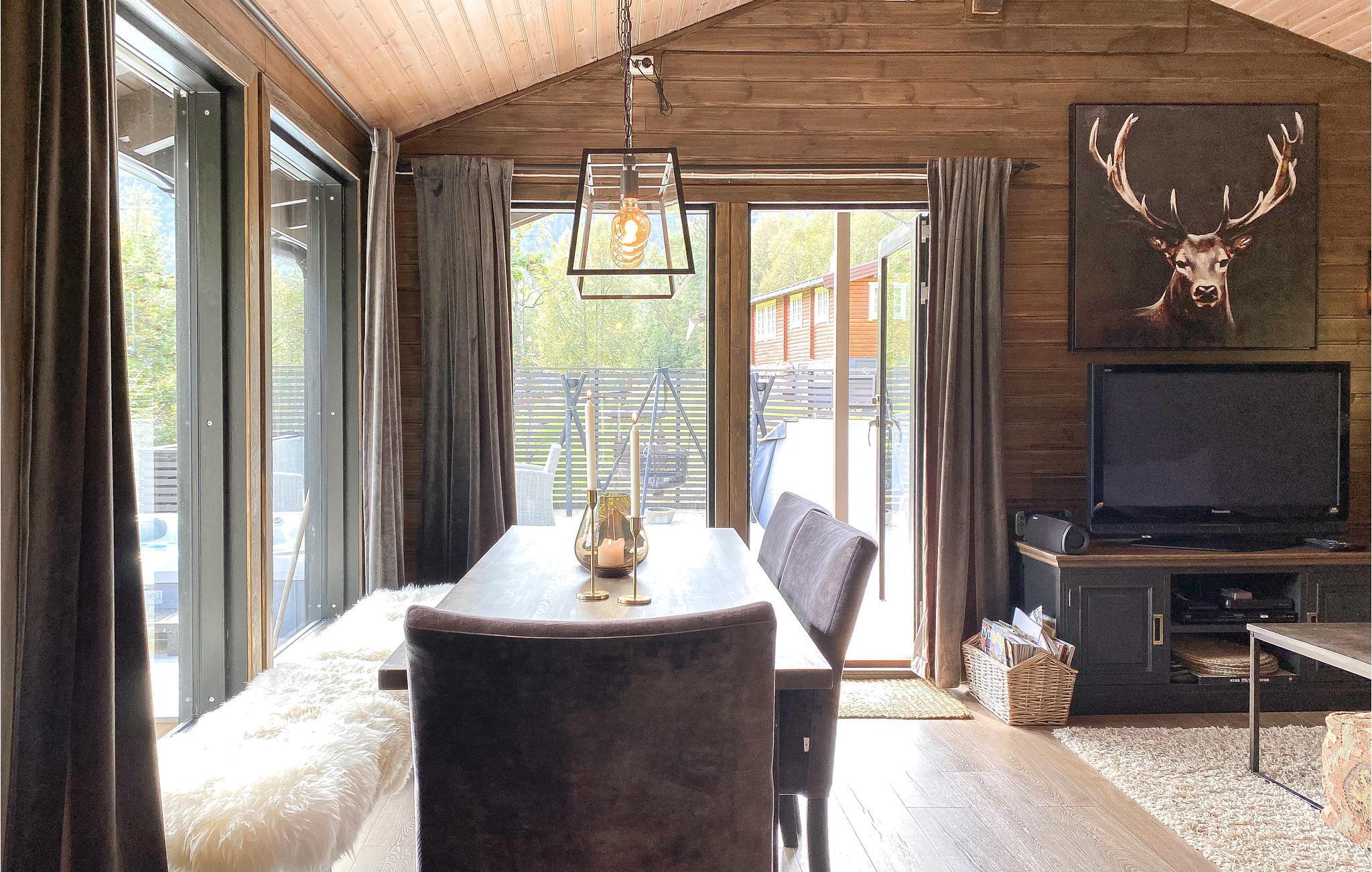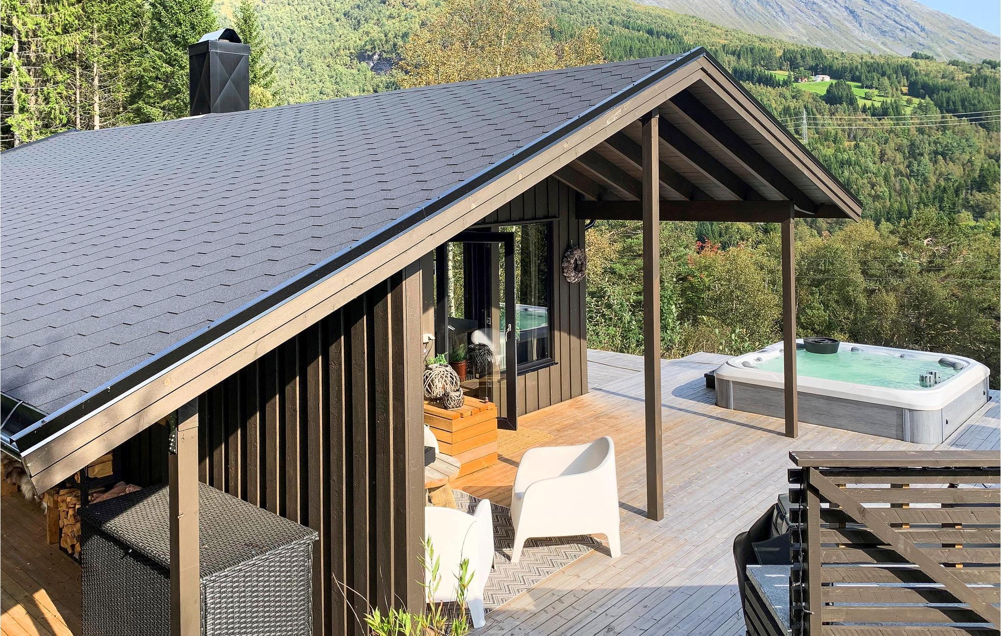 Freuen Sie sich auf dieses fantastische Ferienidyll bei Stordal und machen dieses gemütliche Ferienhaus zu Ihrem zuhause. Im hochwertigen Inneren können Sie es sich an den Abenden mit einem Kaminfeuer und unterhaltsamen Film gemütlich und davor den Ausblick im Whirlpool und bei Grillen auf der Terrasse genießen. Die Morgen können Sie mit einer täglichen Dusch unter freiem Himmel beginnen, bevor Sie zum Frühstück am Esstisch zusammenkommen.