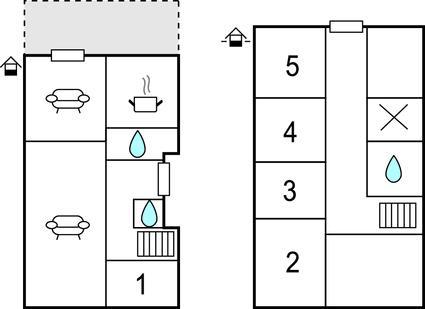 Badezimmer (nr. 1) - WC. Warmes und kaltes Wasser. Dusche